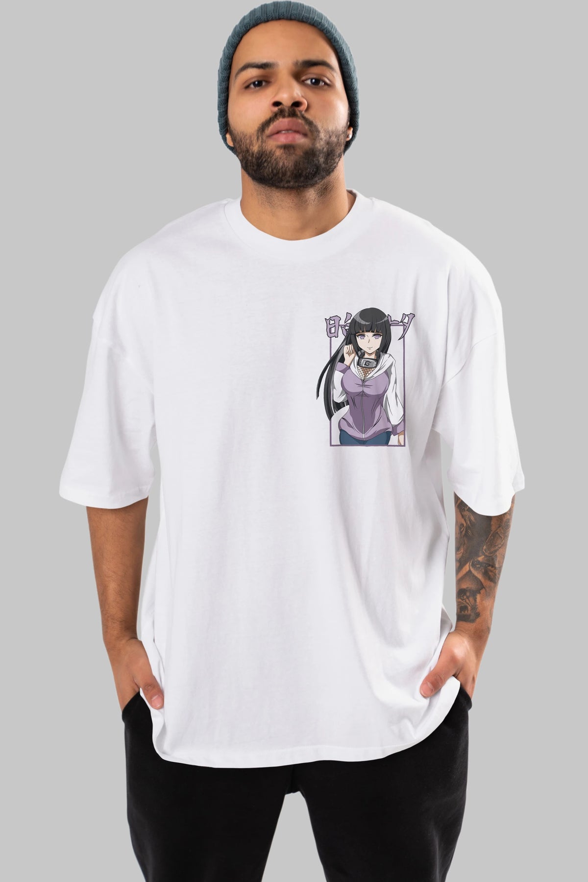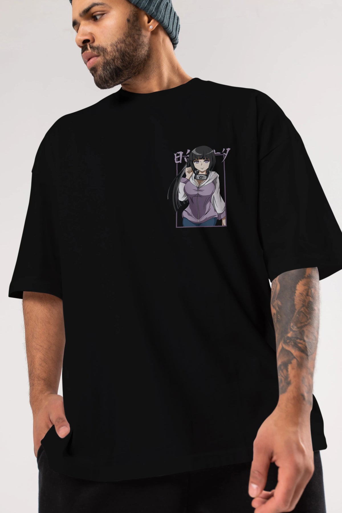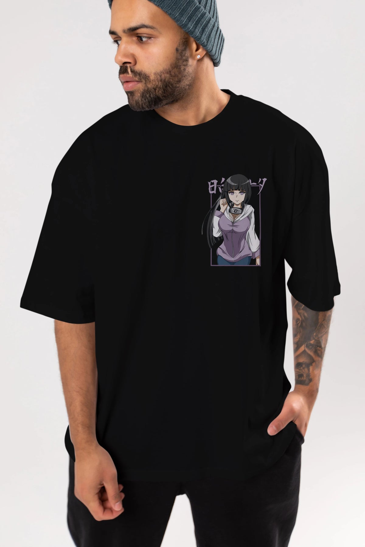 Hinata NARUTO Ön Sol Baskılı Oversize t-shirt Erkek Kadın Unisex %100 Pamuk Bisiklet Yaka tişort