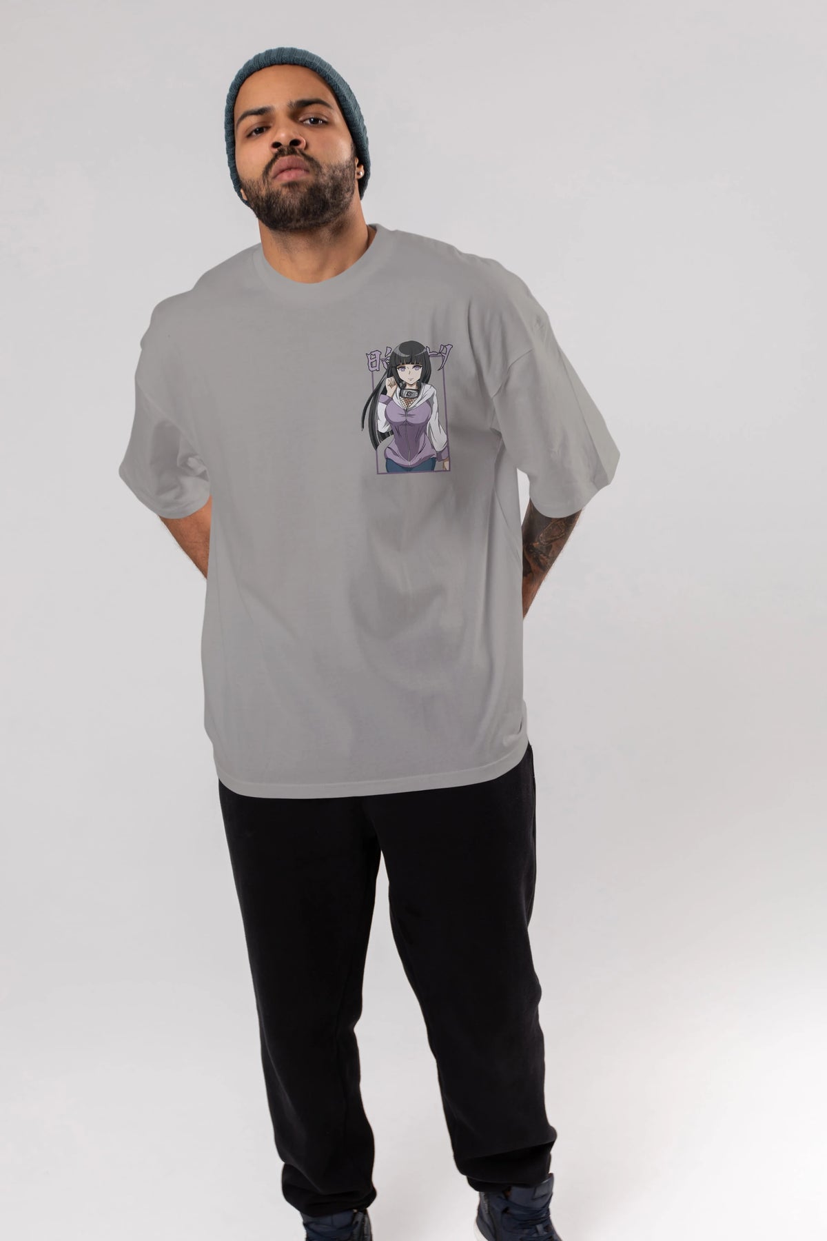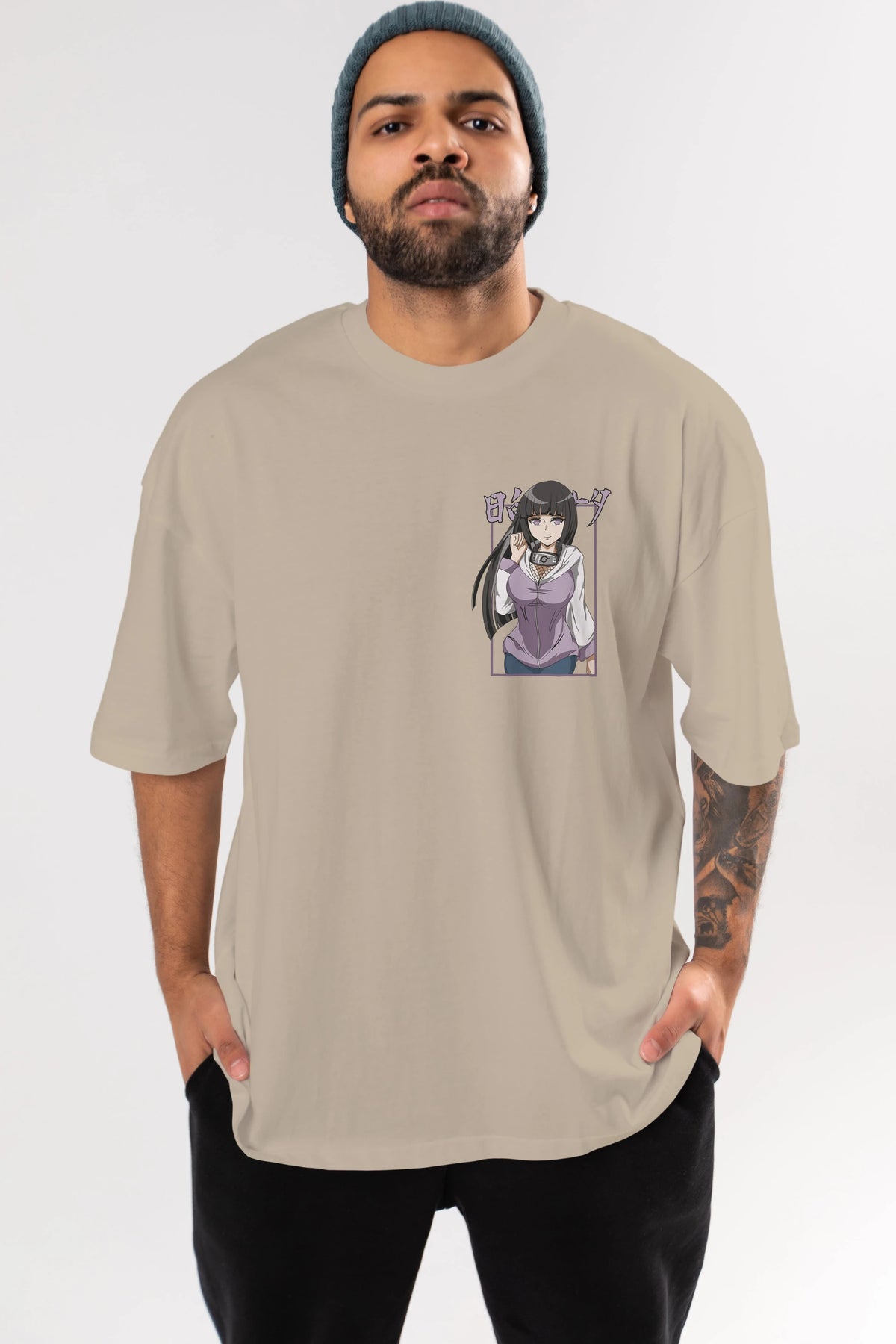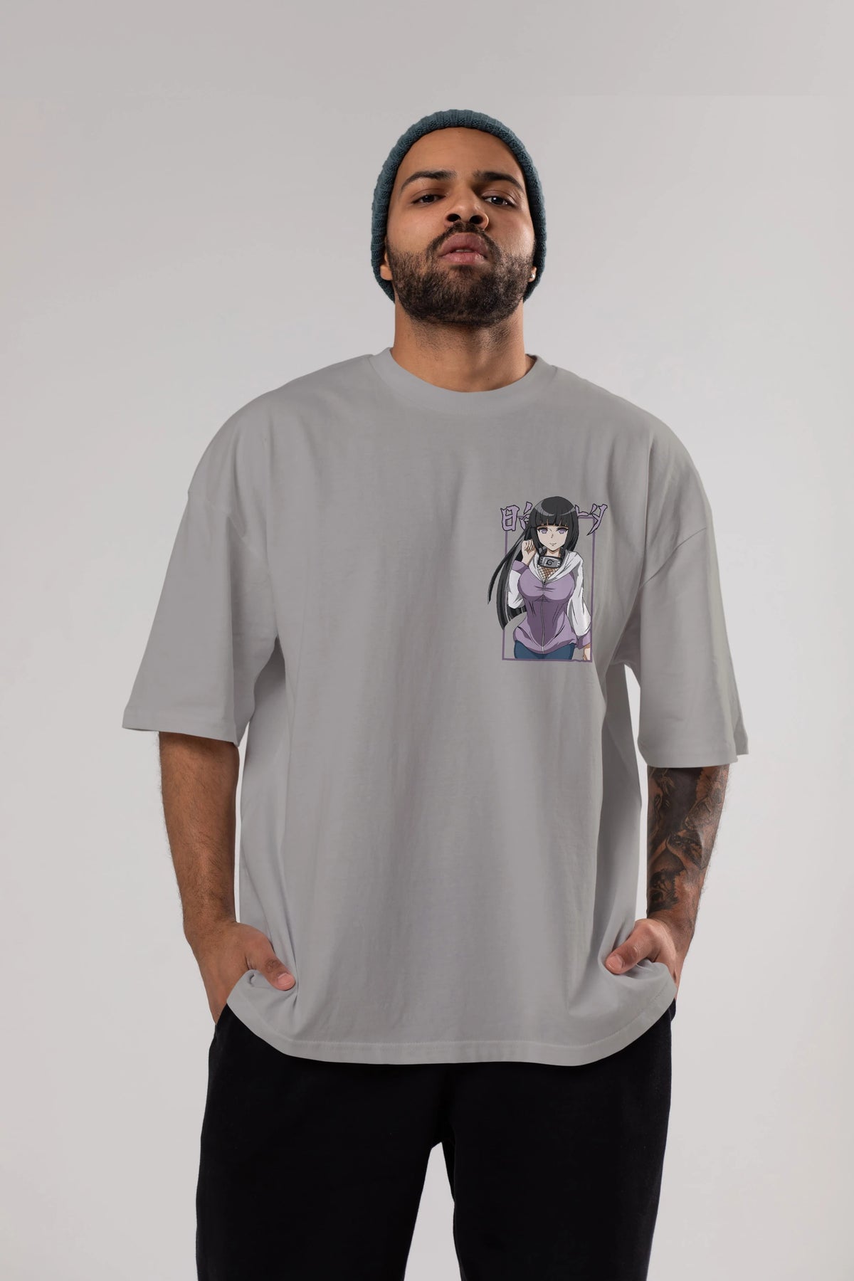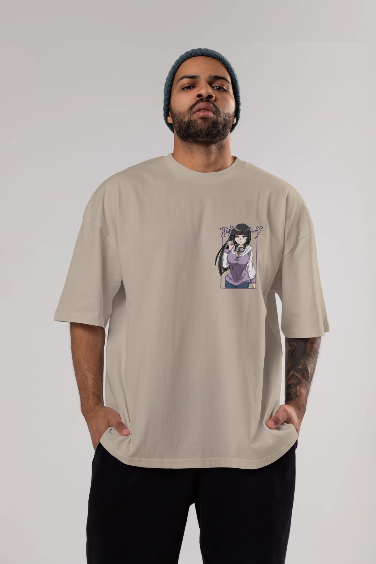 Hinata NARUTO Ön Sol Baskılı Oversize t-shirt Erkek Kadın Unisex %100 Pamuk Bisiklet Yaka tişort
