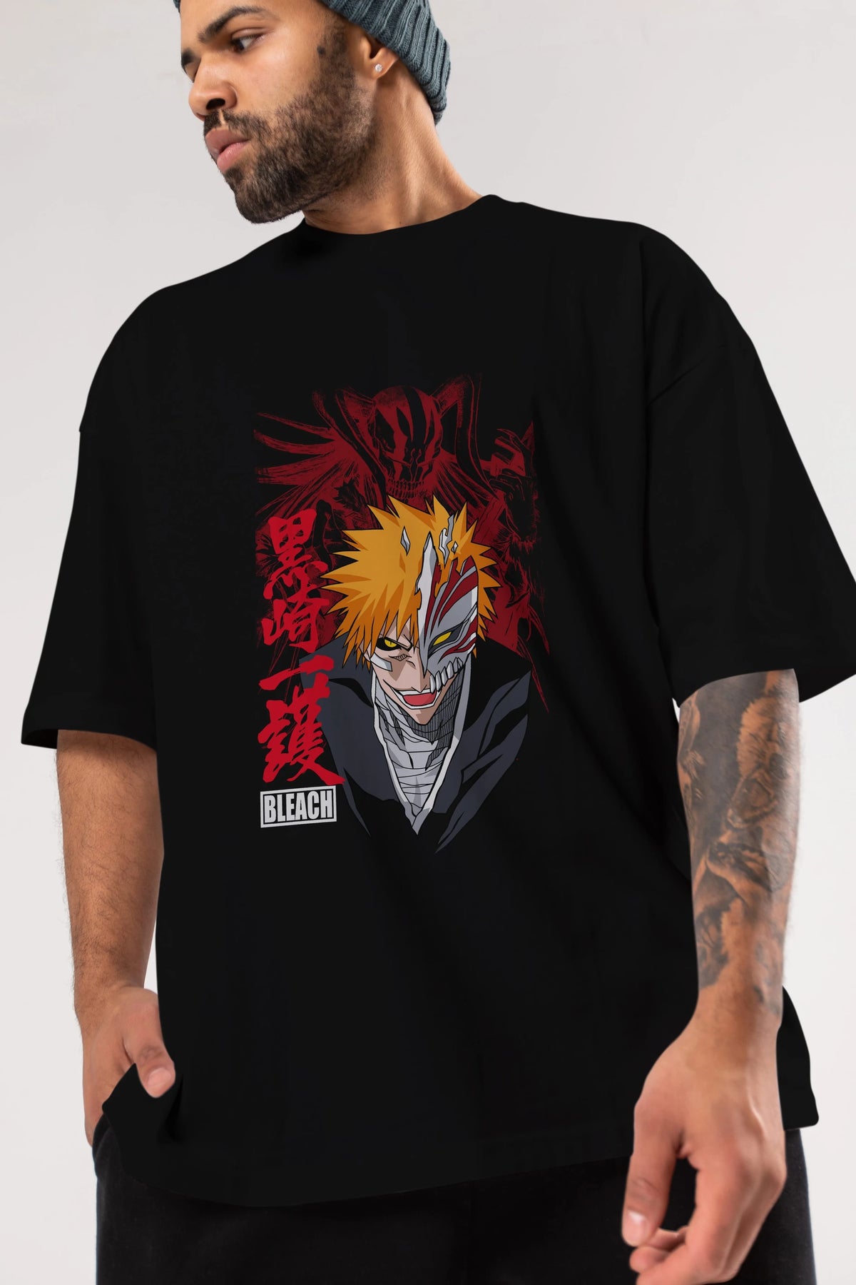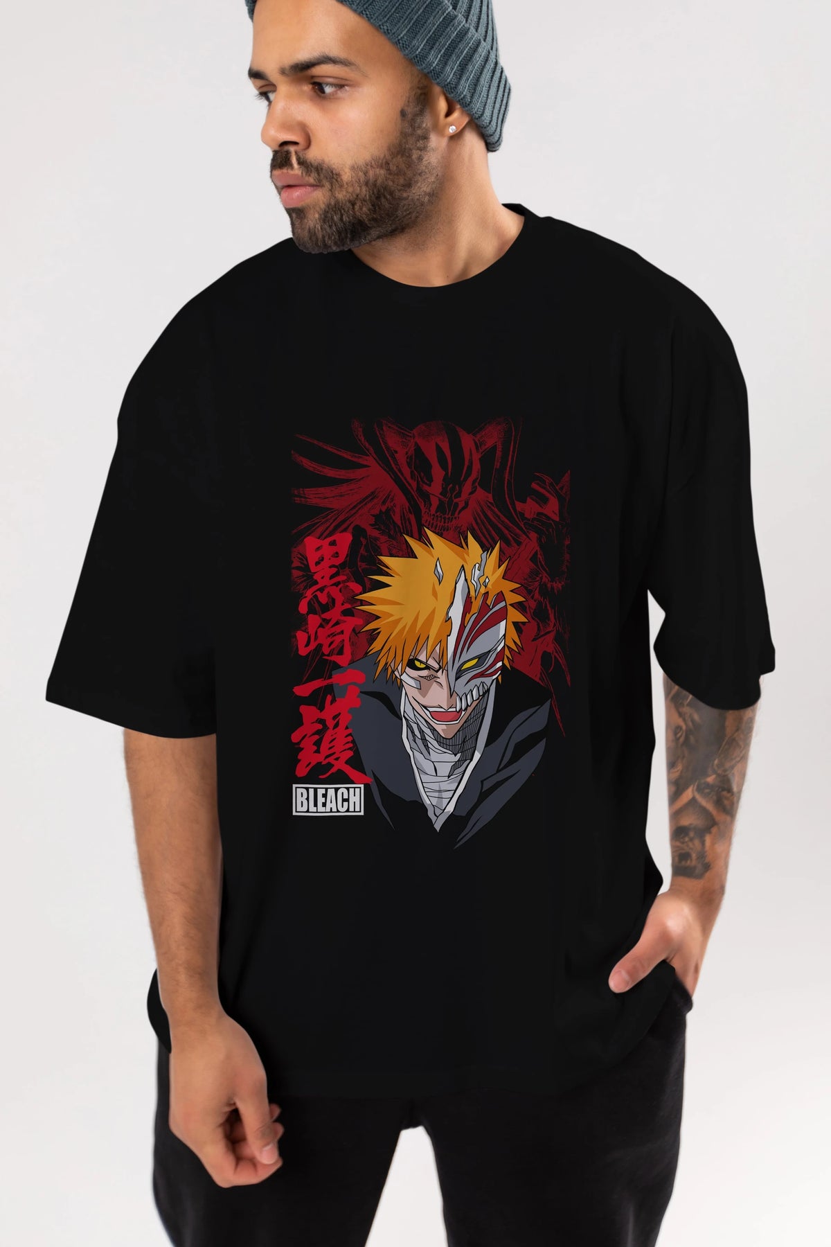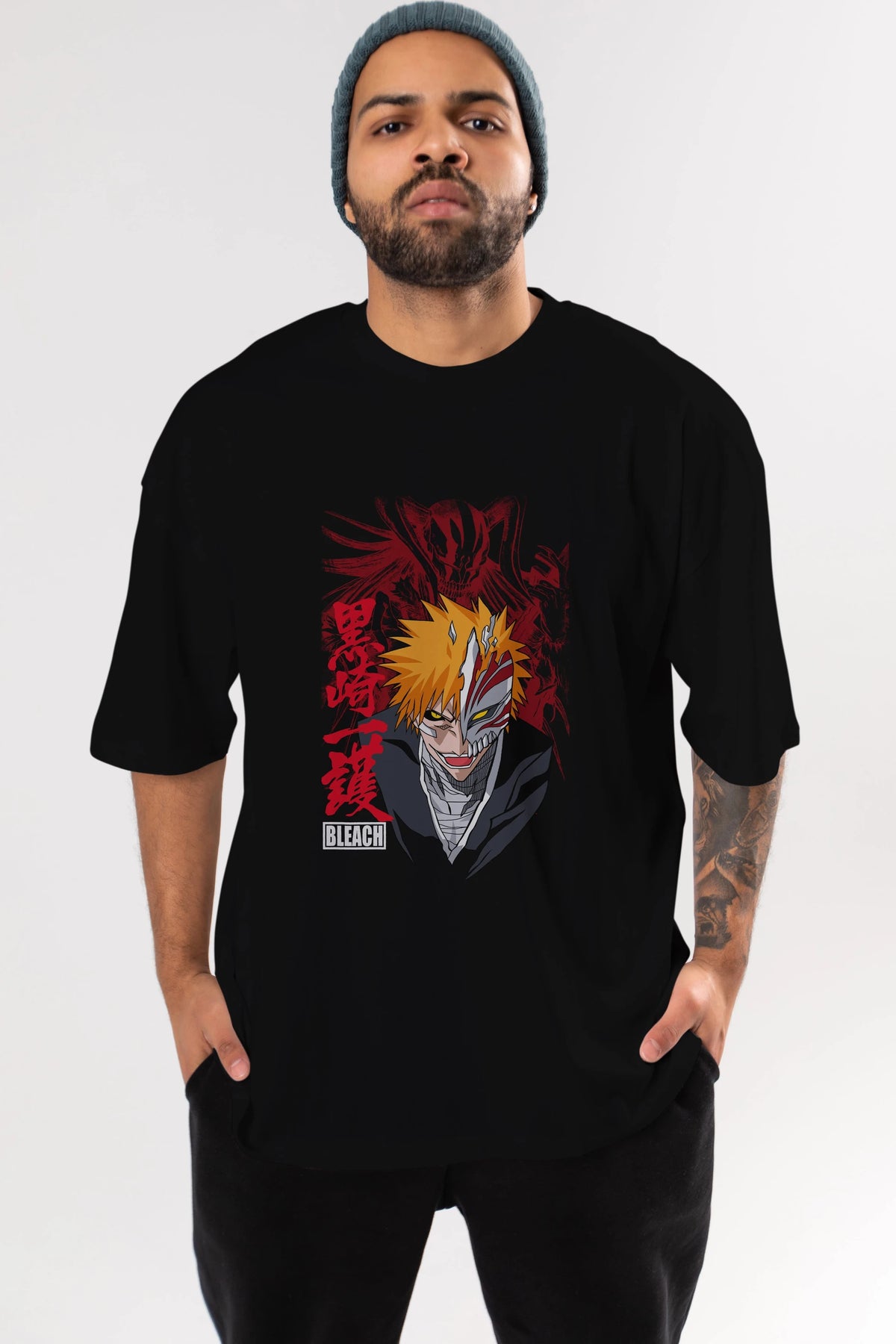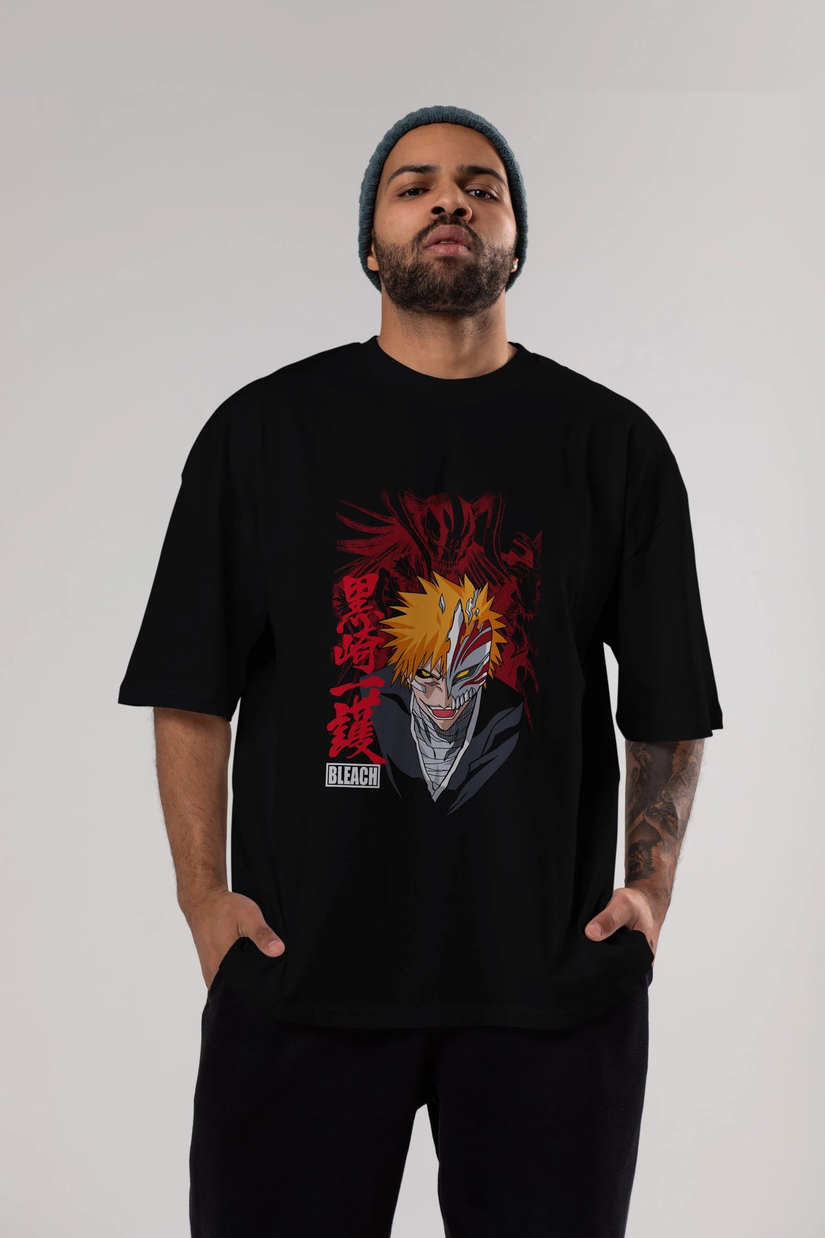 ICHIGO KUROSAKI VIZARD Anime Ön Baskılı Oversize t-shirt %100 pamuk Erkek Kadın Unisex