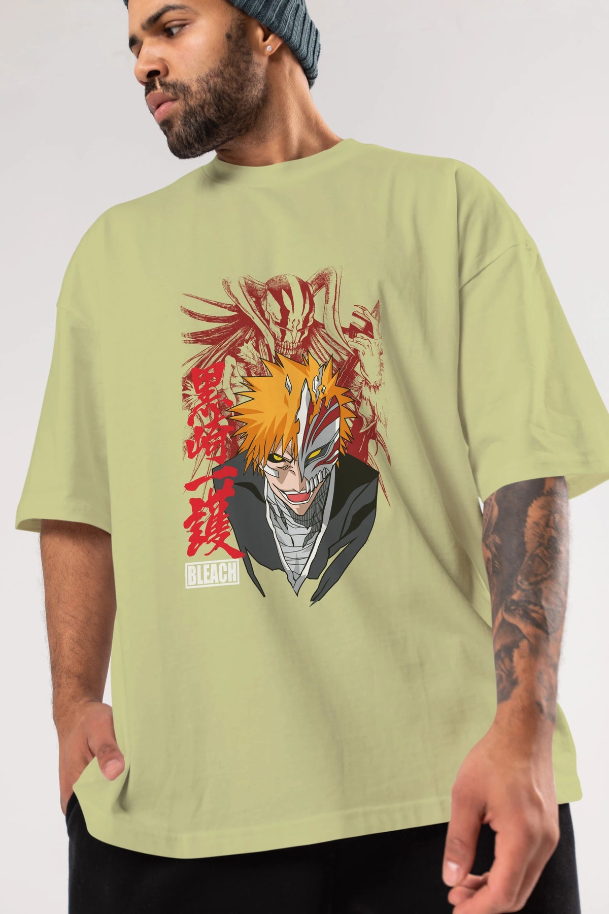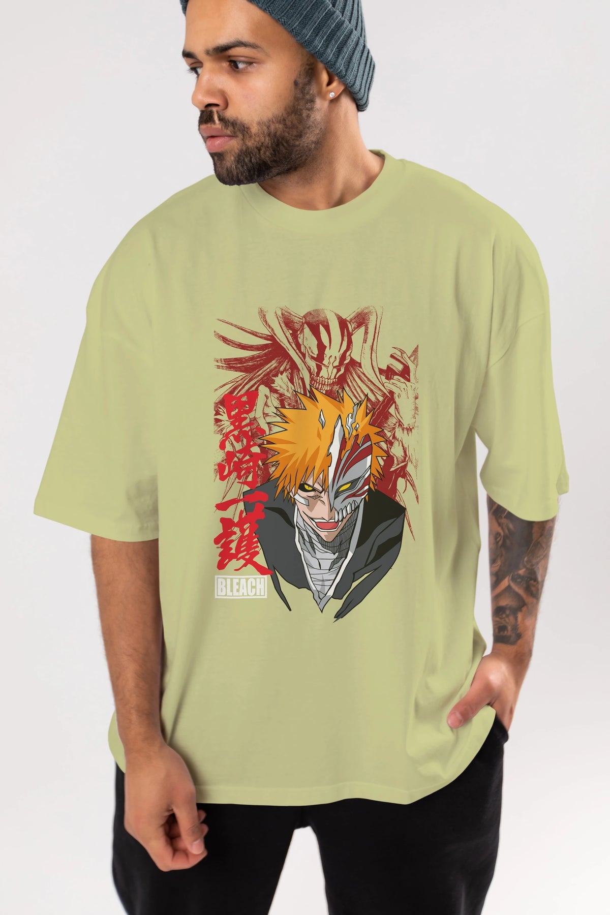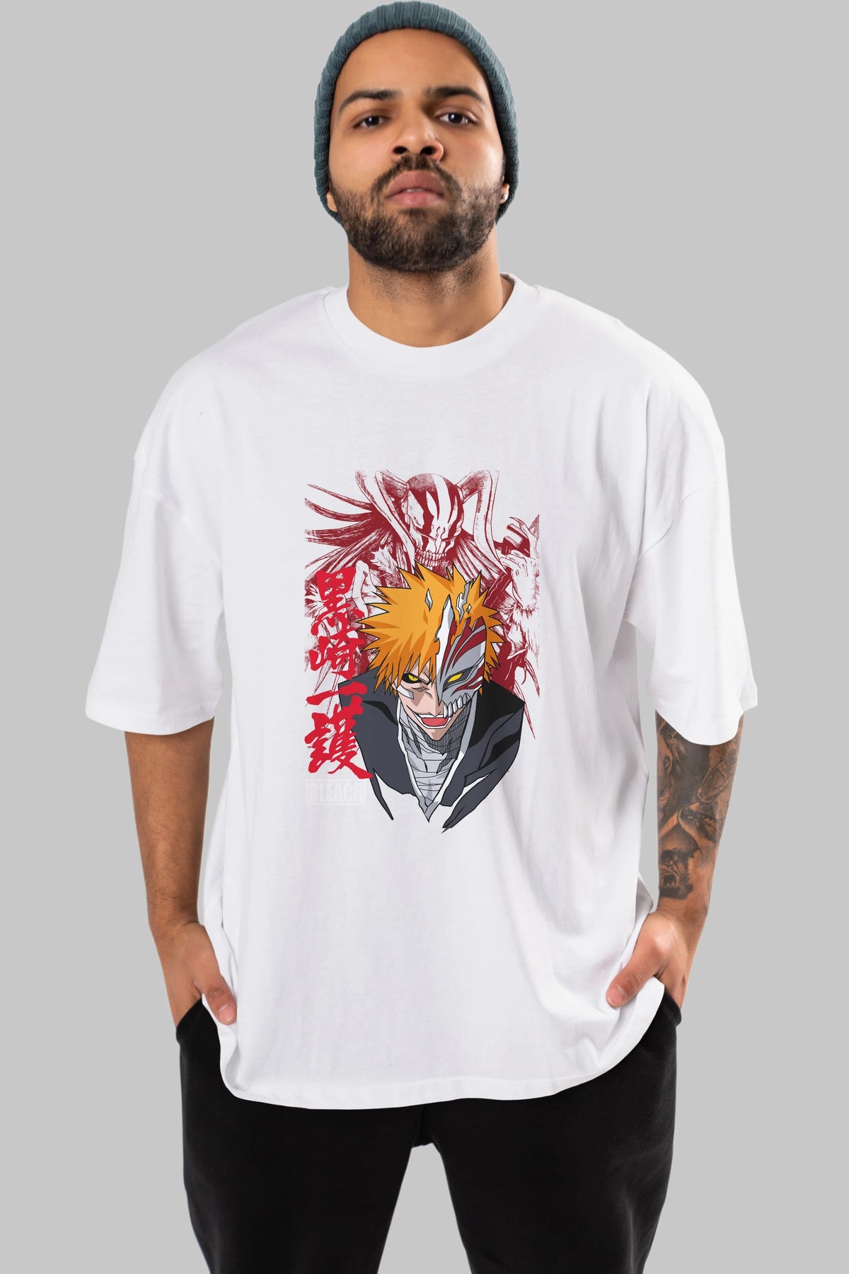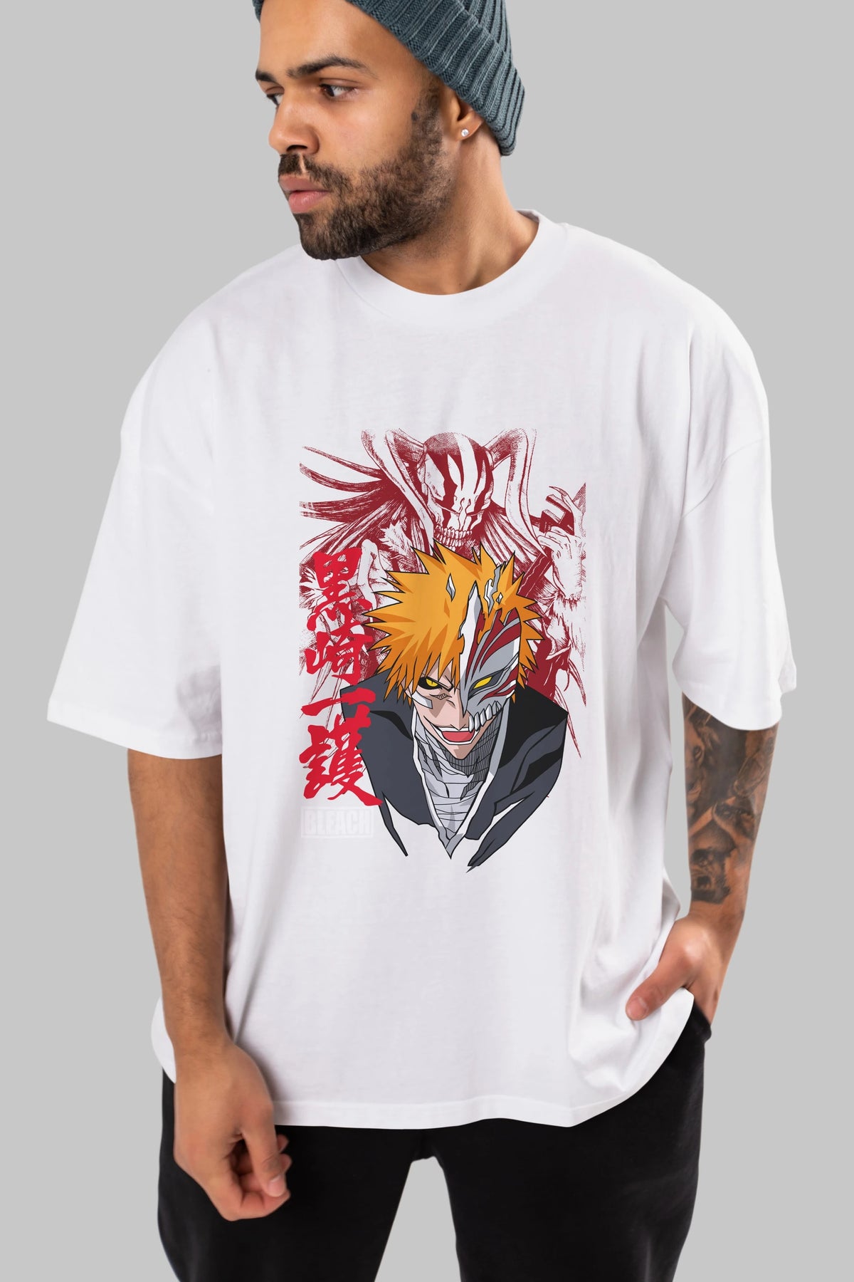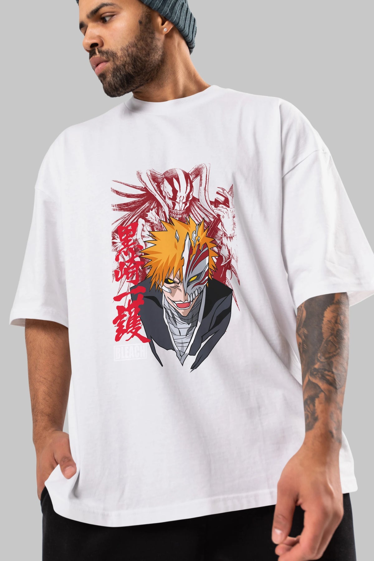 ICHIGO KUROSAKI VIZARD Anime Ön Baskılı Oversize t-shirt %100 pamuk Erkek Kadın Unisex