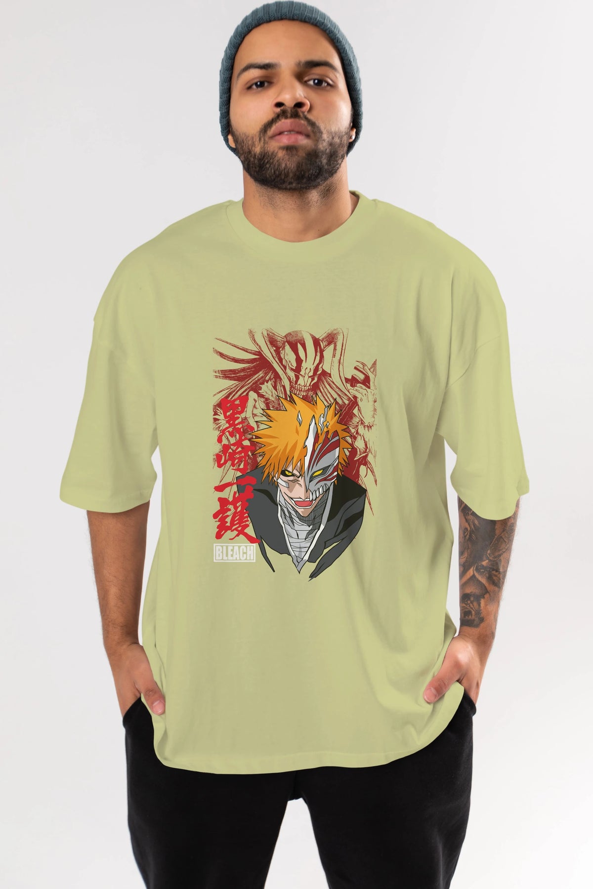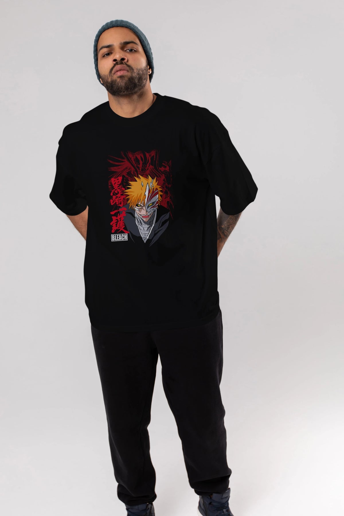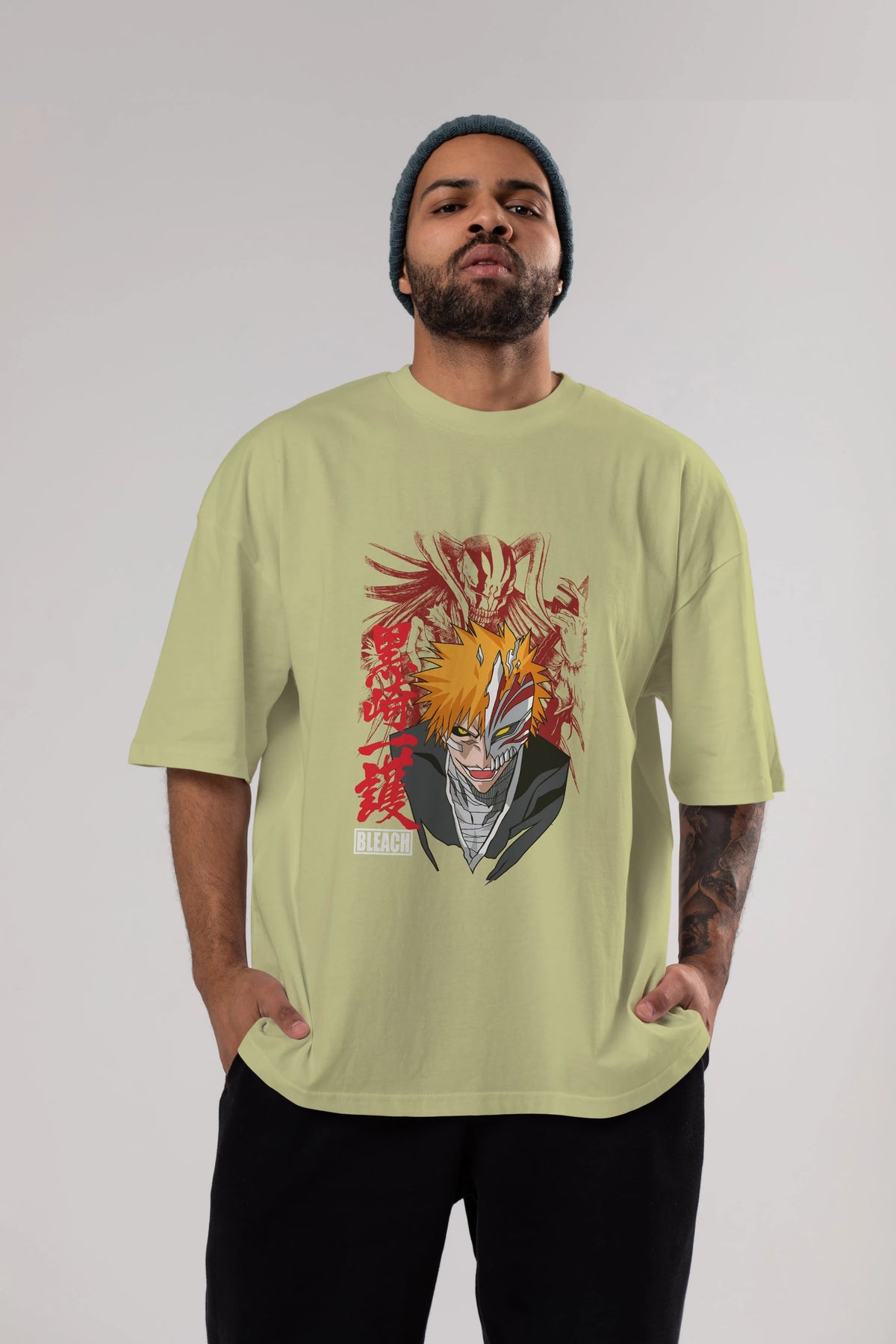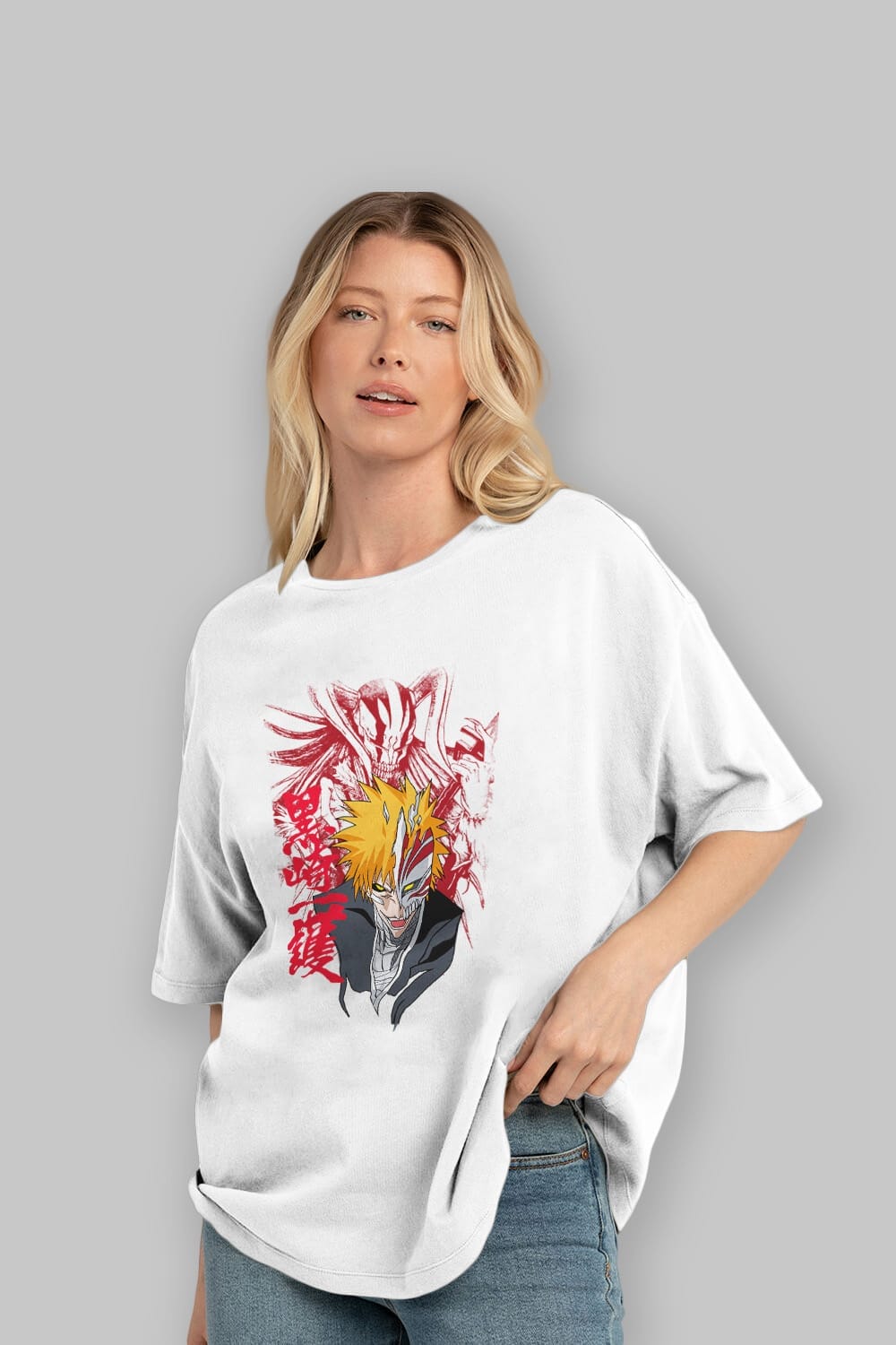 ICHIGO KUROSAKI VIZARD Anime Ön Baskılı Oversize t-shirt %100 pamuk Erkek Kadın Unisex