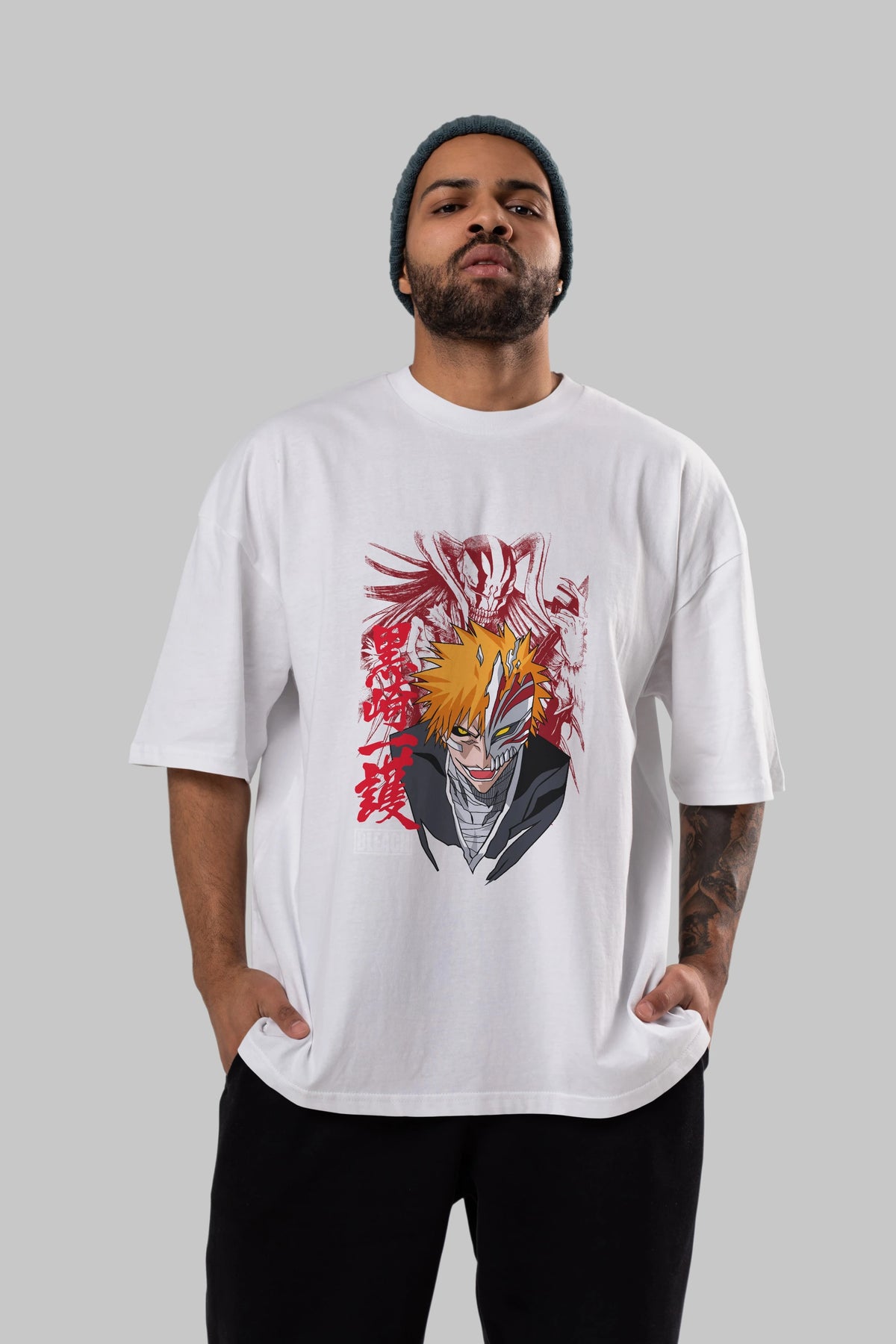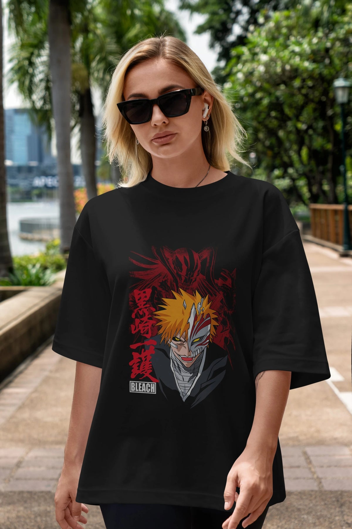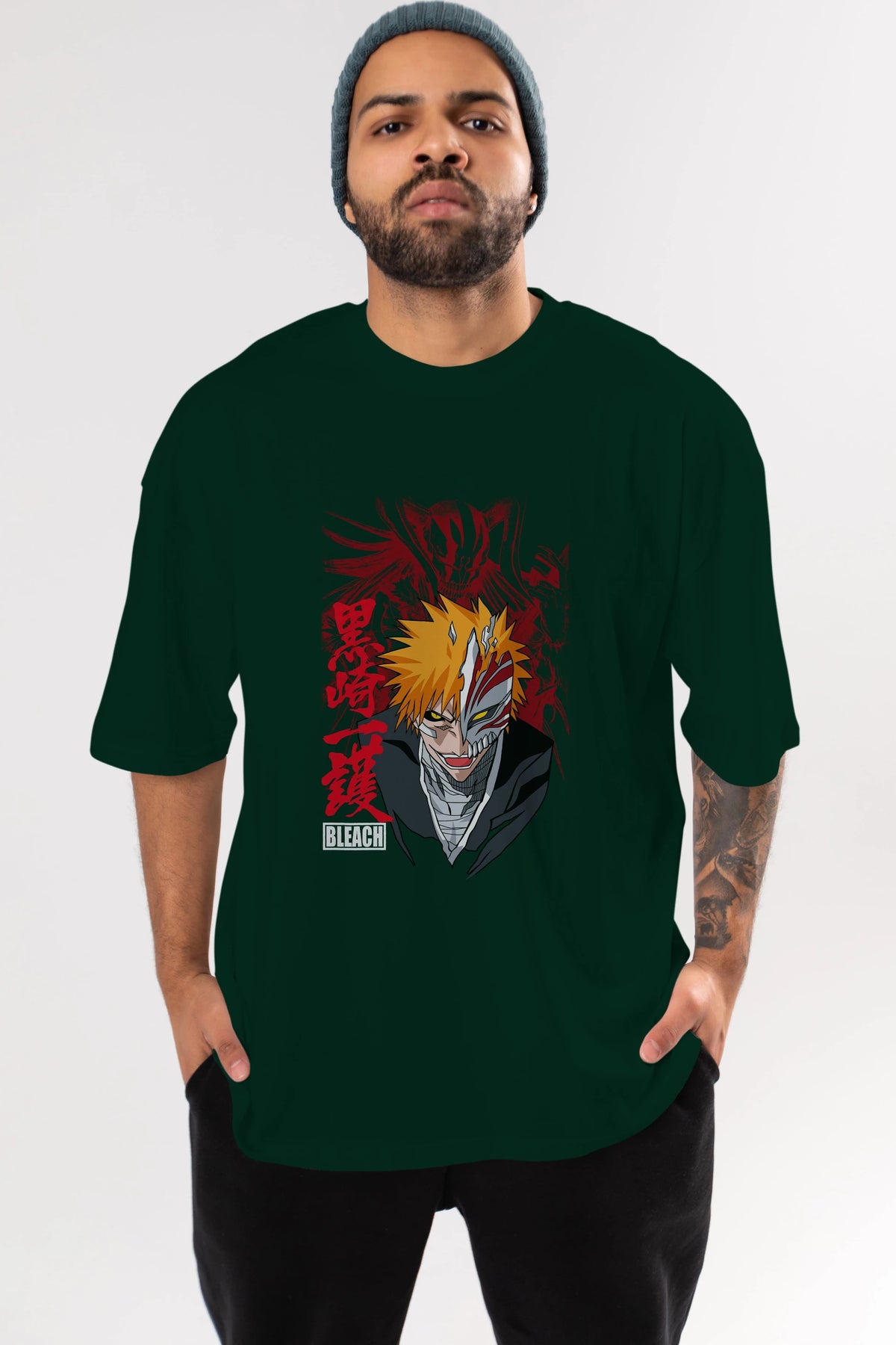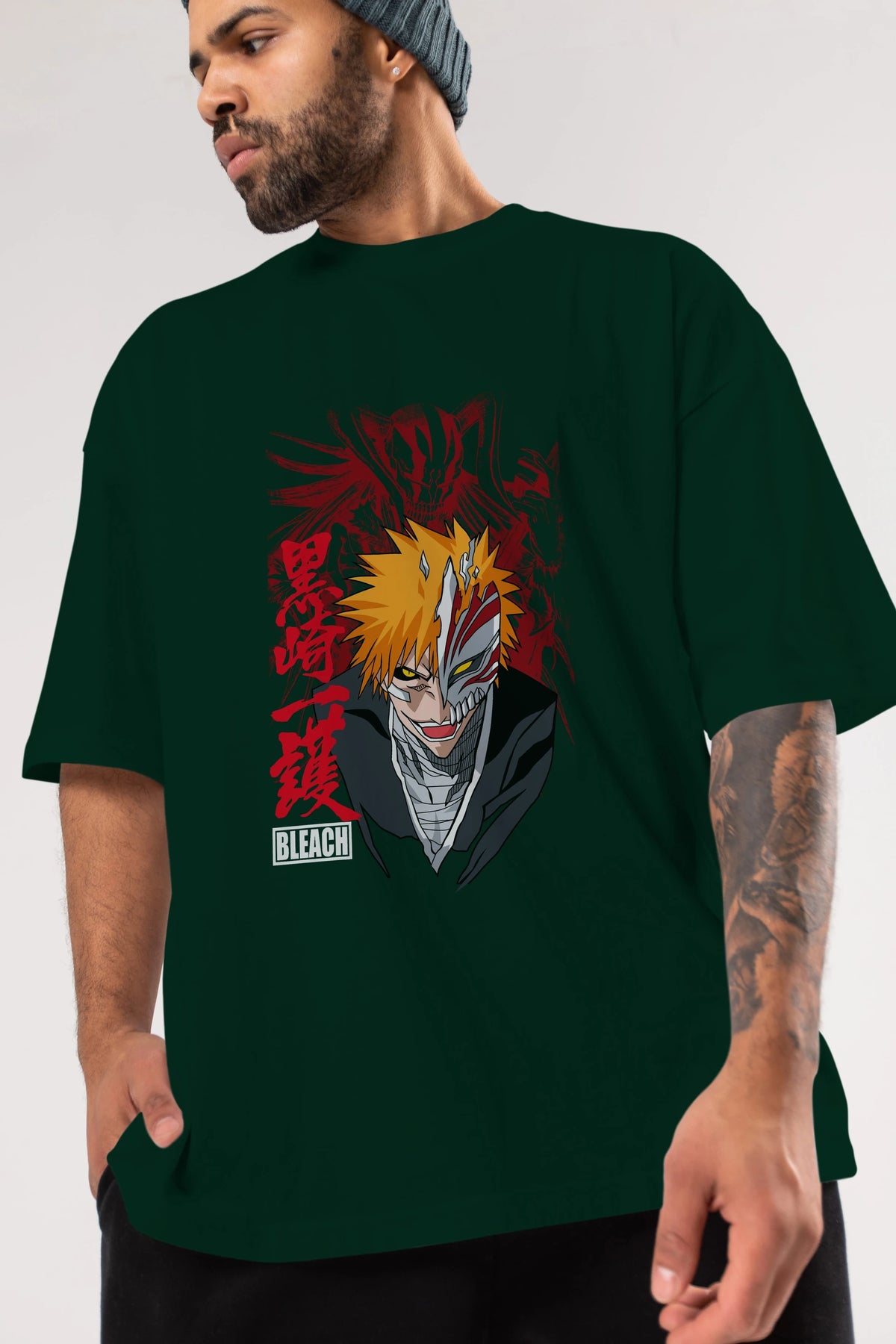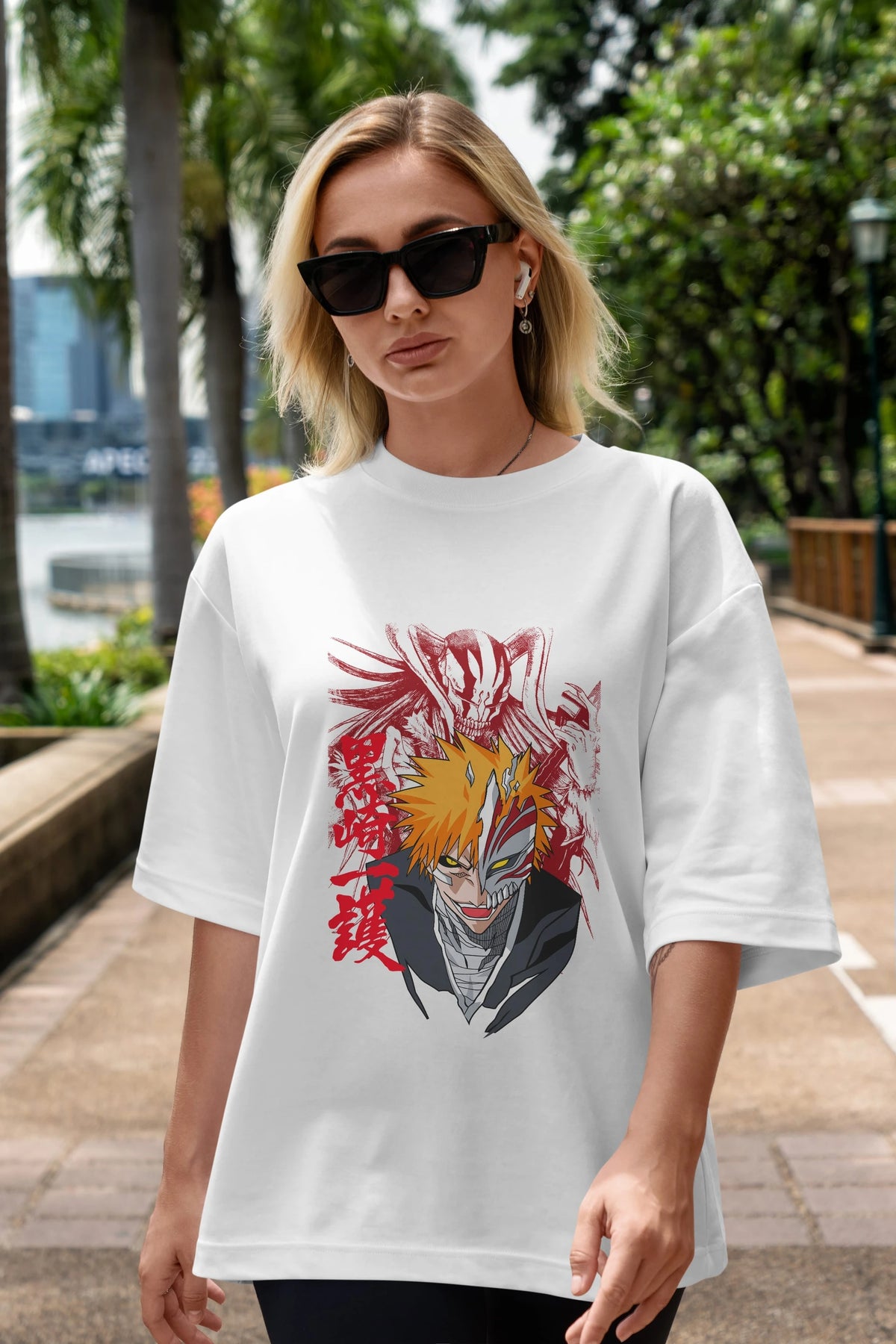 ICHIGO KUROSAKI VIZARD Anime Ön Baskılı Oversize t-shirt %100 pamuk Erkek Kadın Unisex