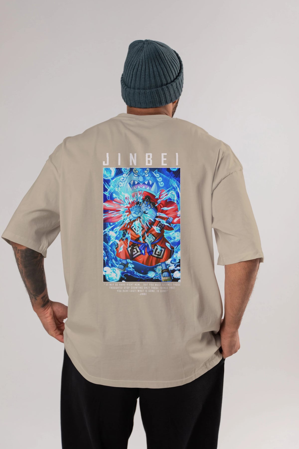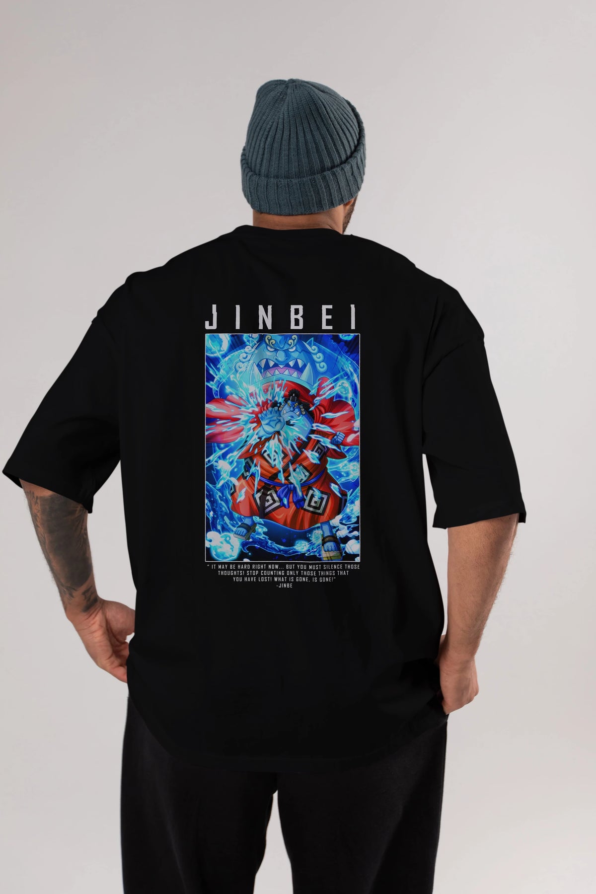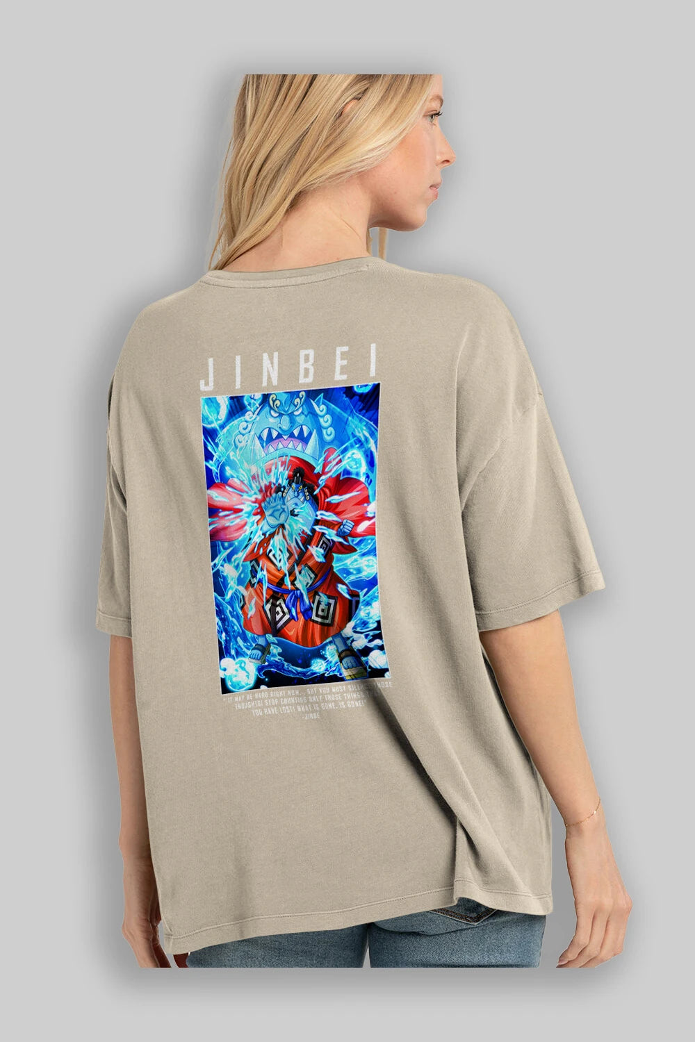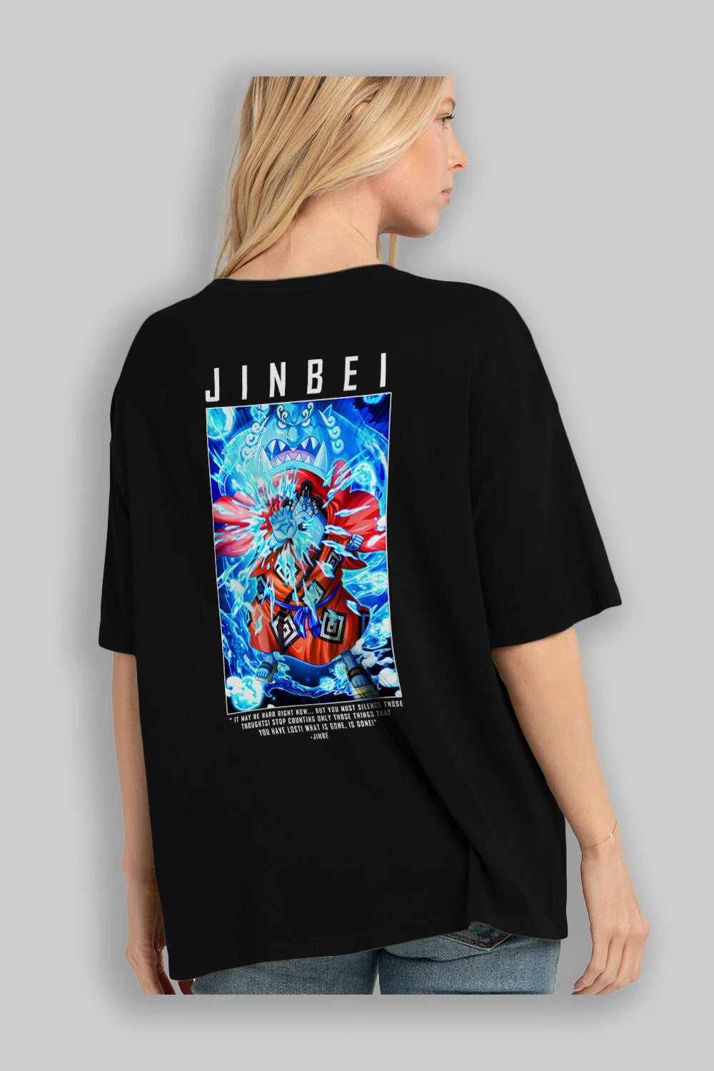 Jinbei Anime Arka Baskılı Oversize t-shirt Erkek Kadın Unisex %100 pamuk tişort
