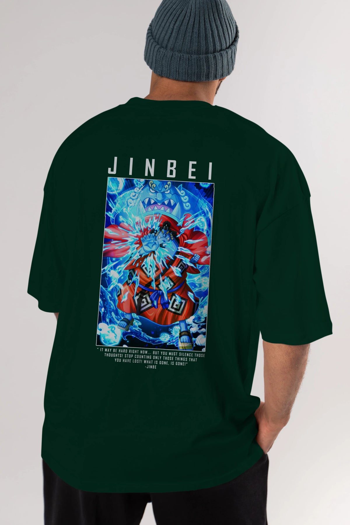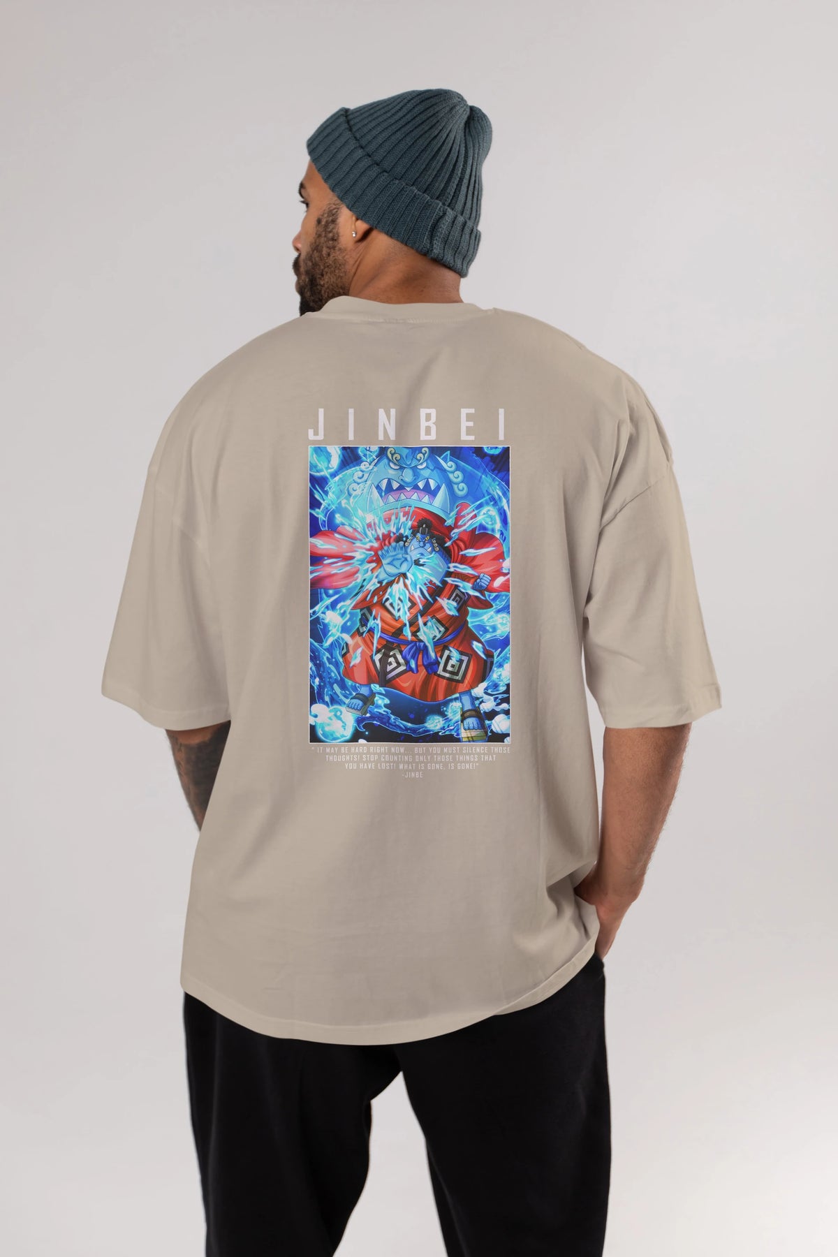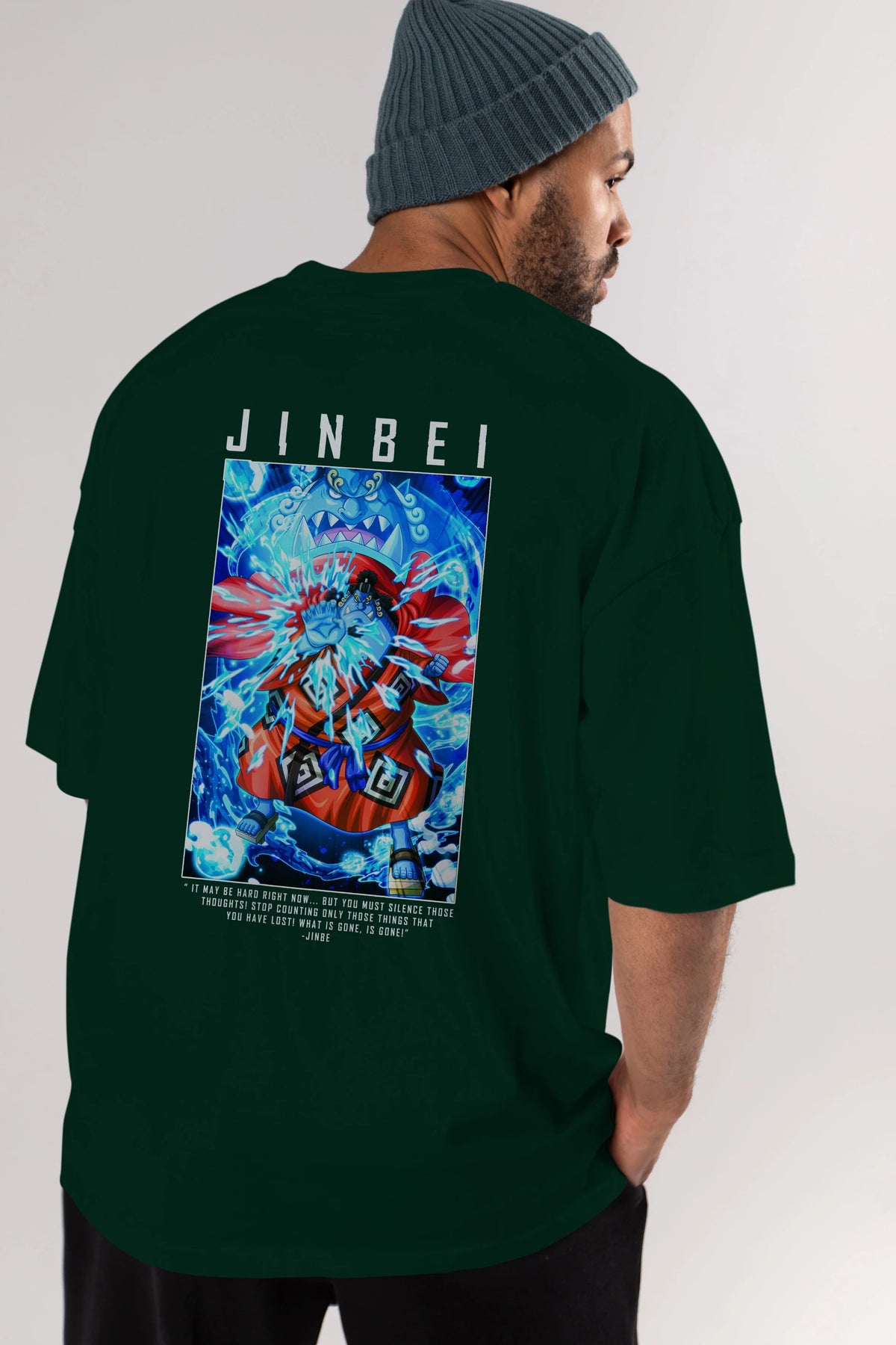 Jinbei Anime Arka Baskılı Oversize t-shirt Erkek Kadın Unisex %100 pamuk tişort