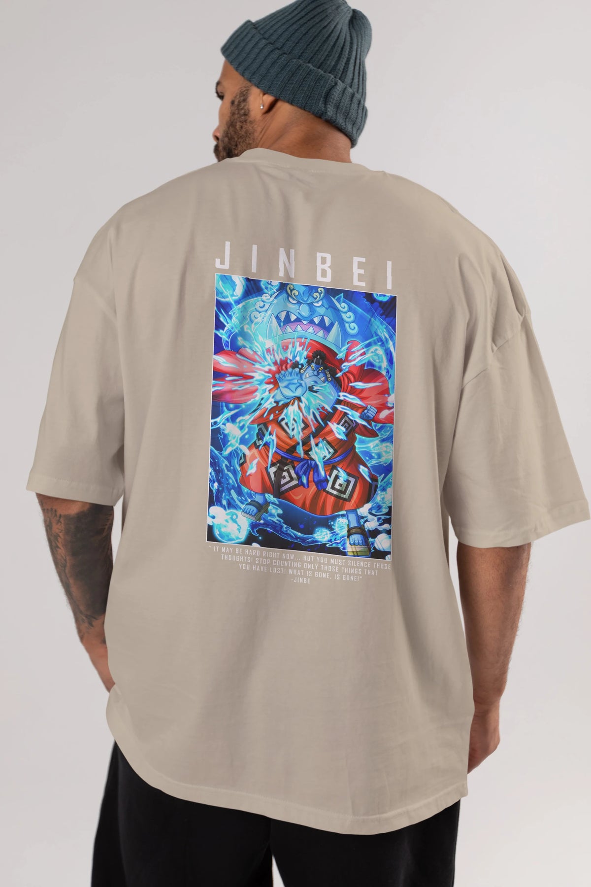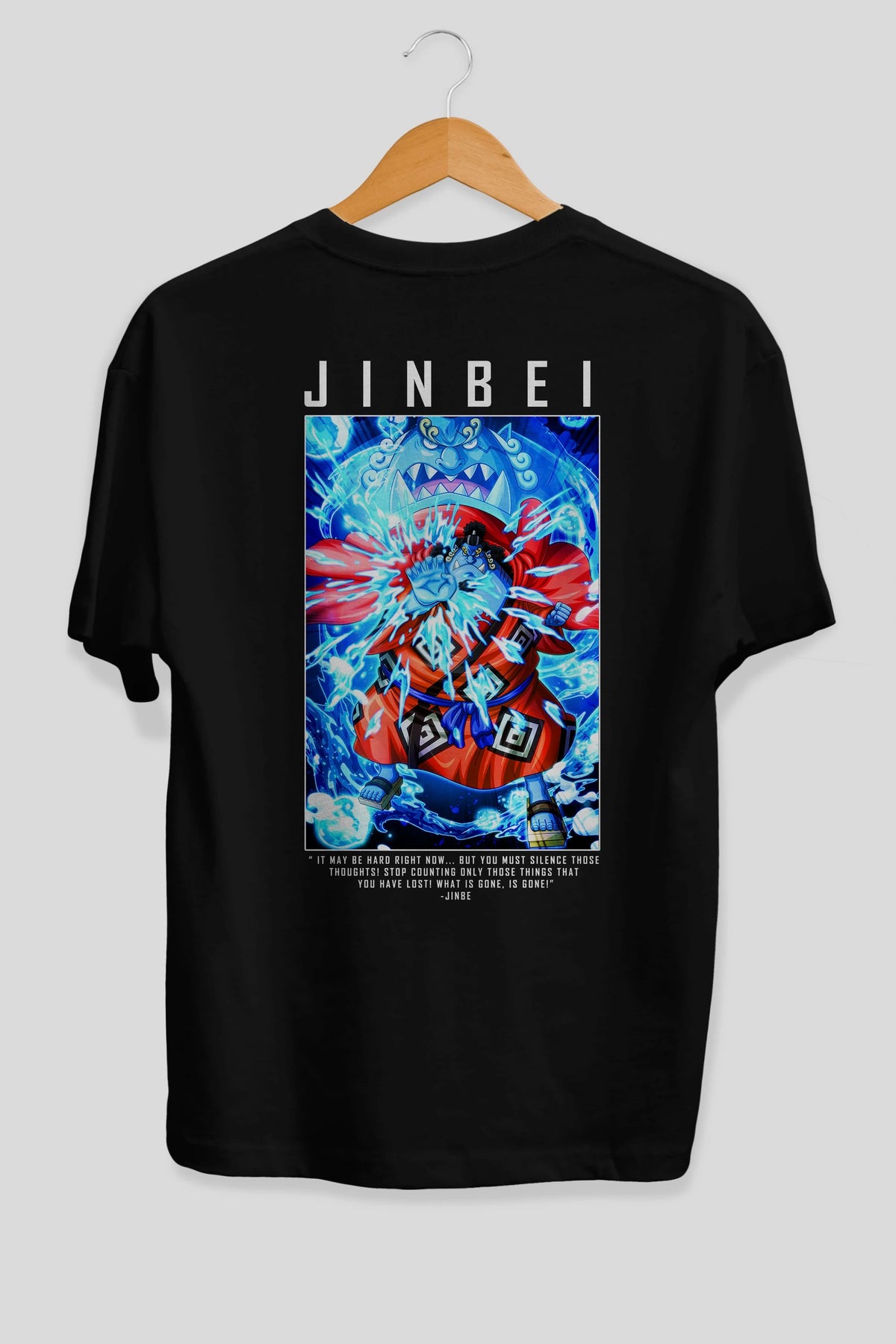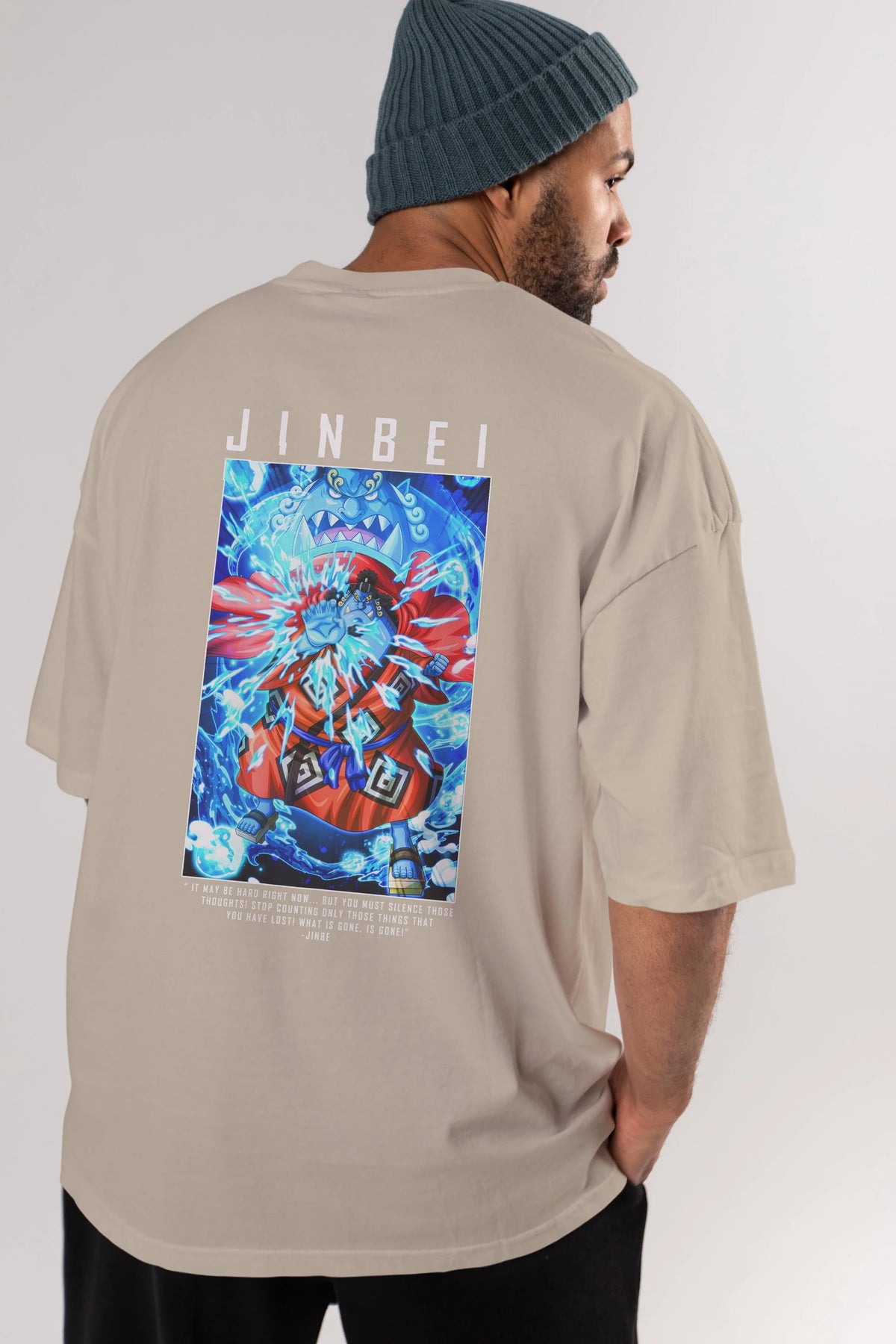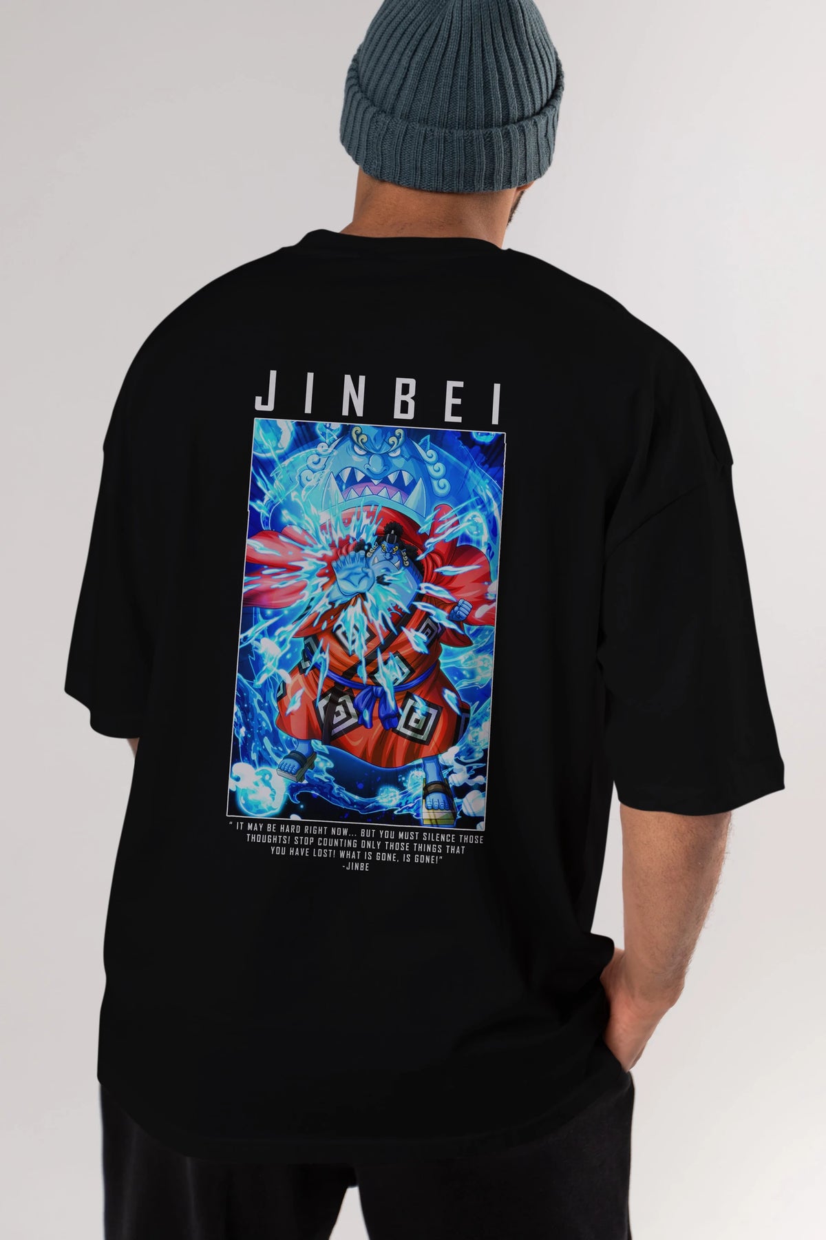 Jinbei Anime Arka Baskılı Oversize t-shirt Erkek Kadın Unisex %100 pamuk tişort