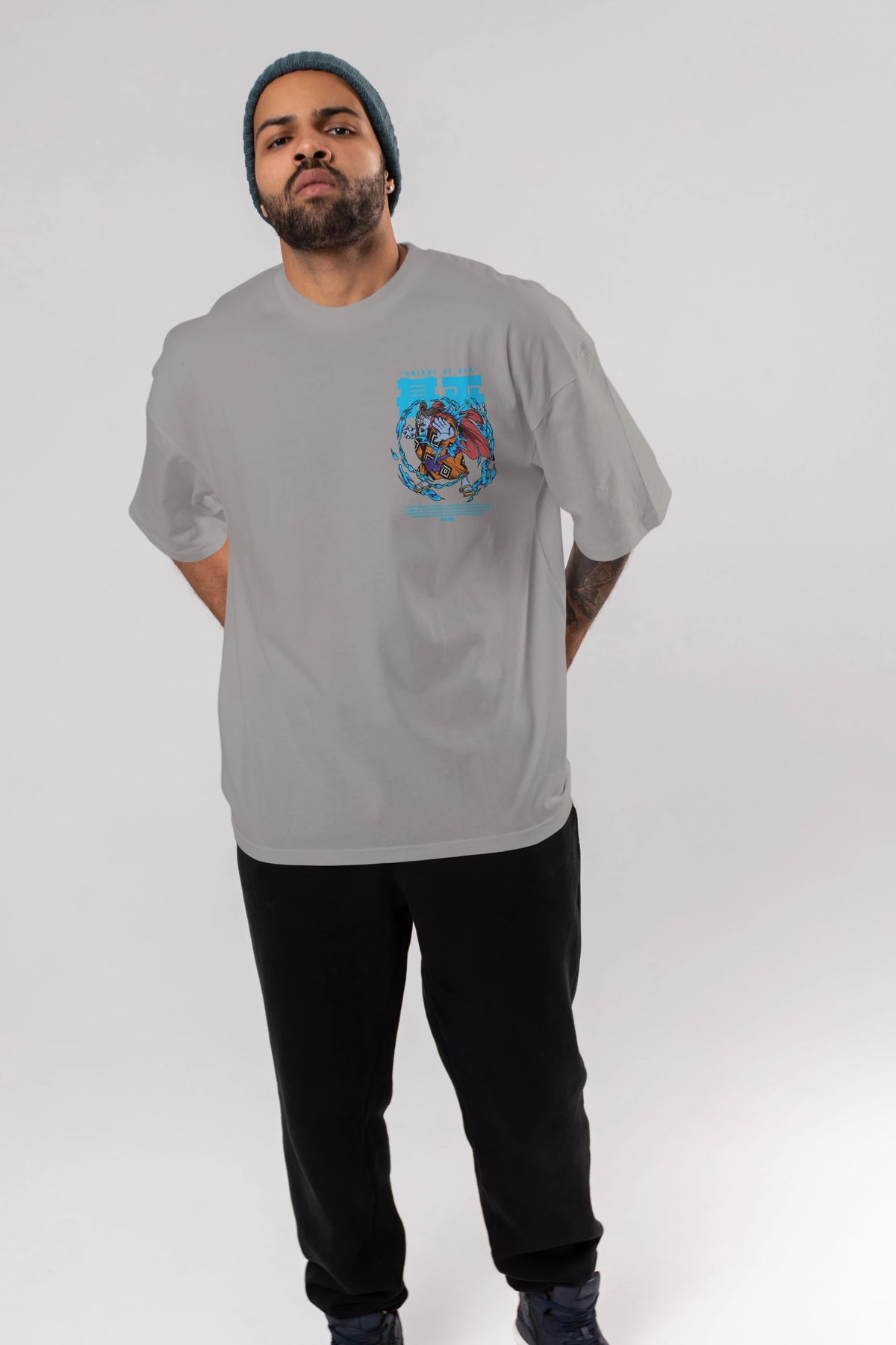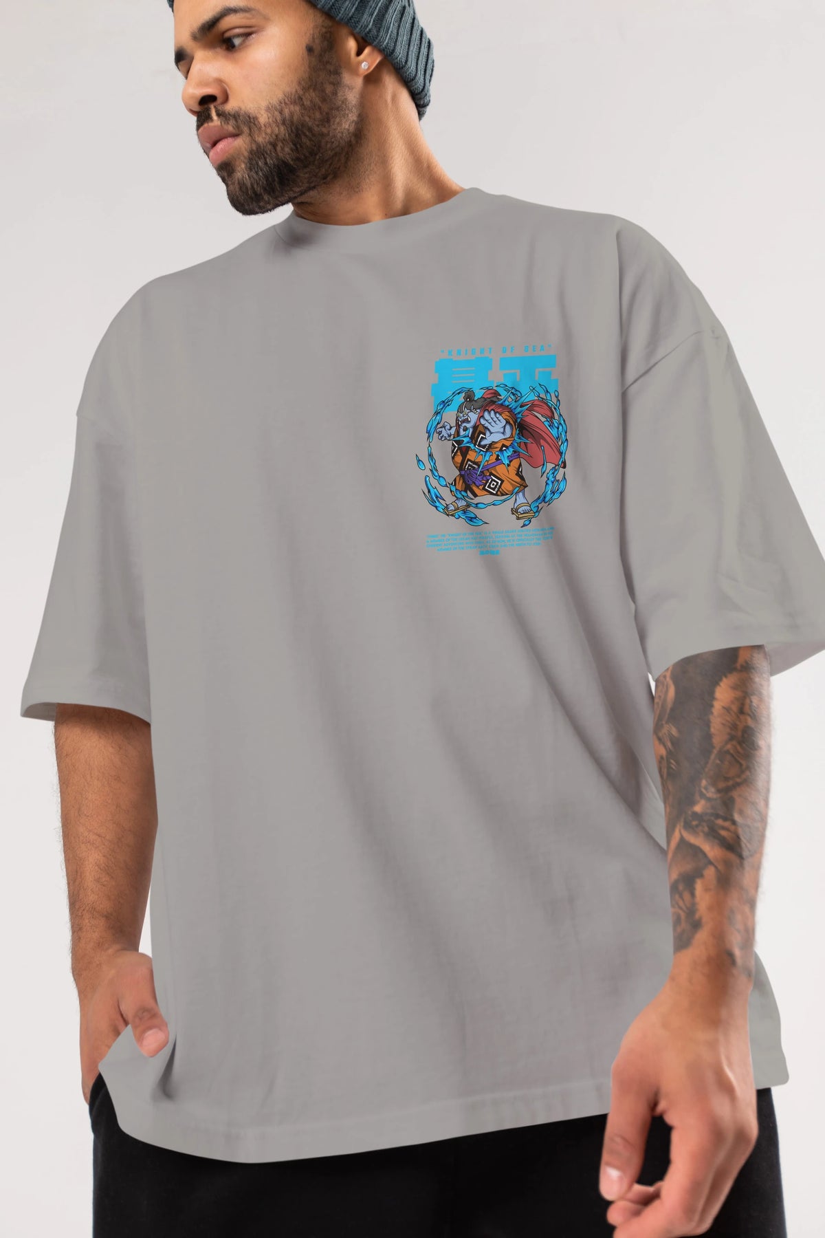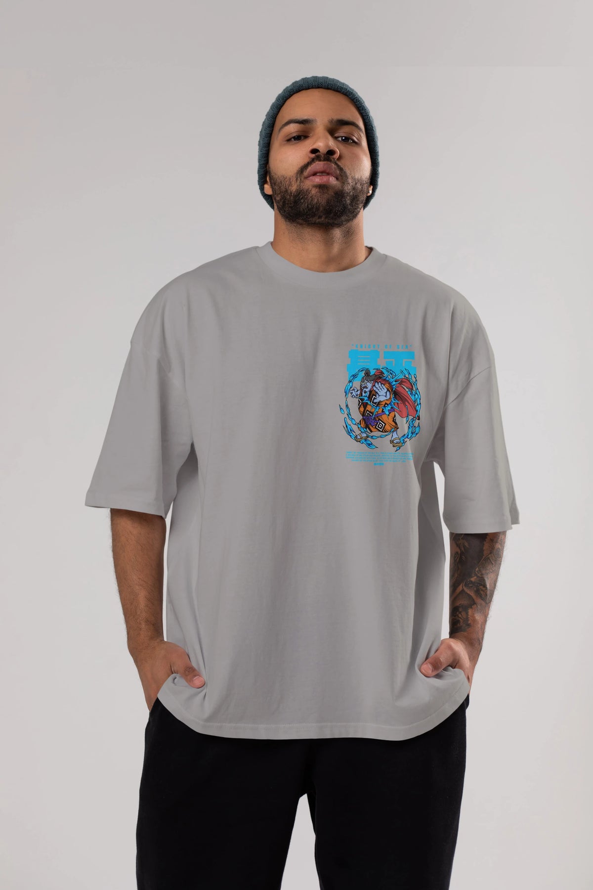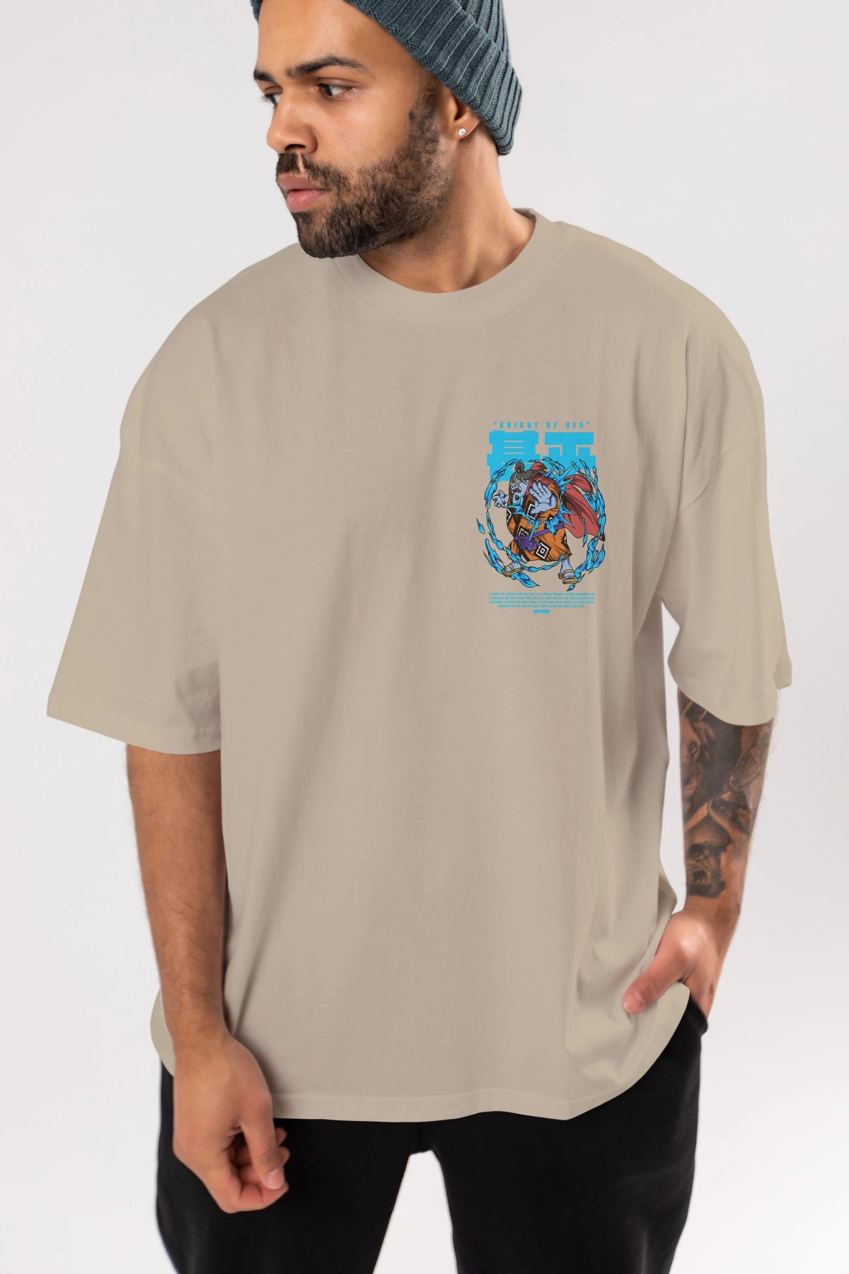 Jinbei Ön Sol Baskılı Oversize t-shirt Erkek Kadın Unisex %100 Pamuk Bisiklet Yaka tişort