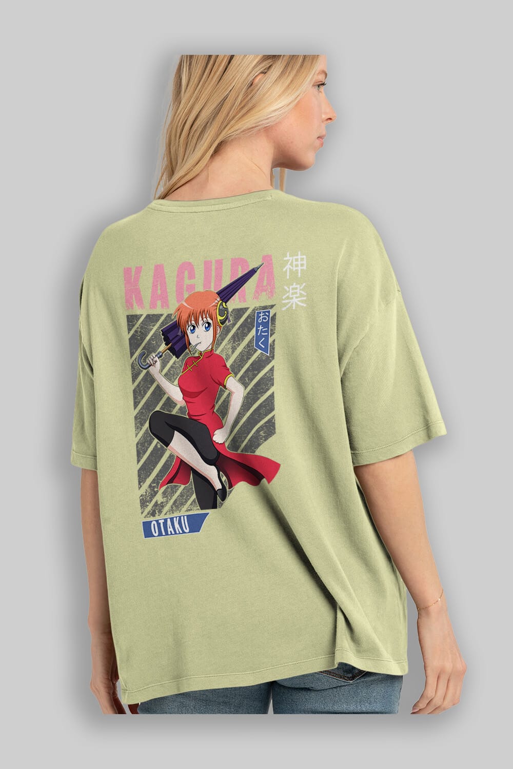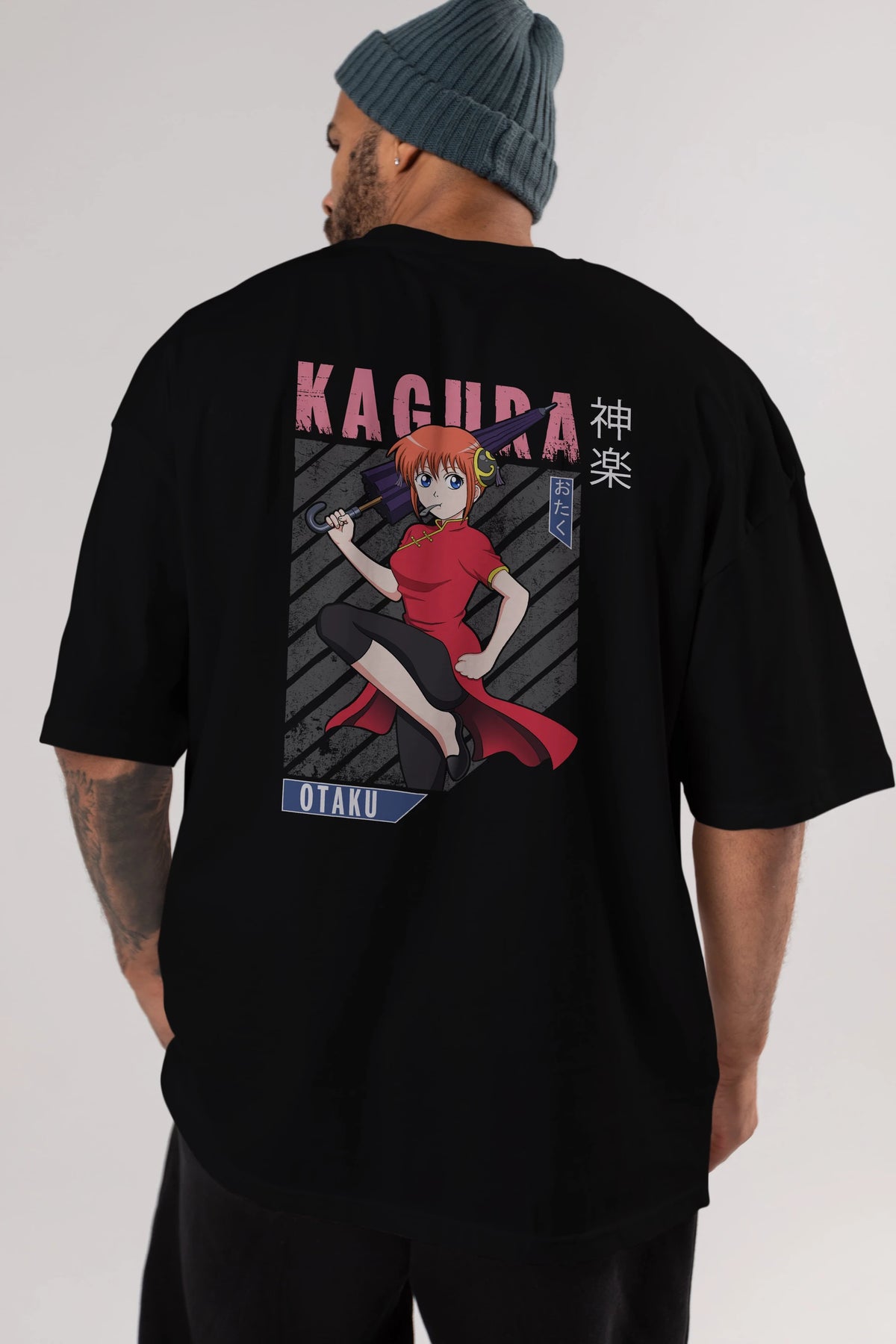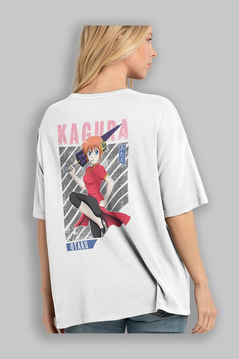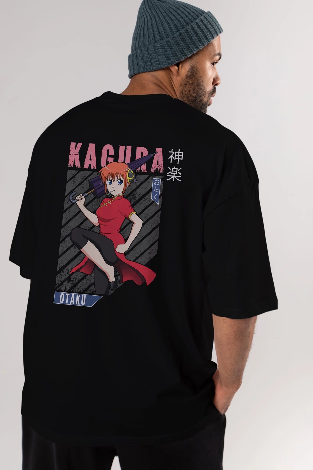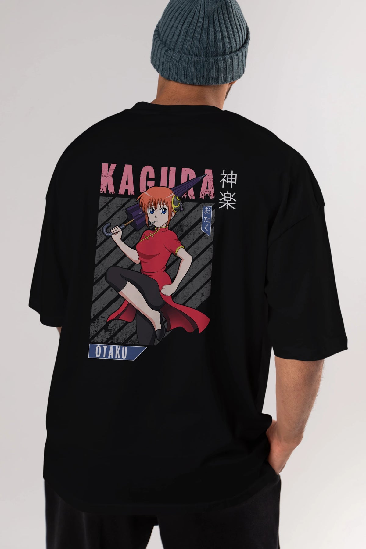 Kagura GINTAMA 1 Anime Arka Baskılı Oversize t-shirt Erkek Kadın Unisex