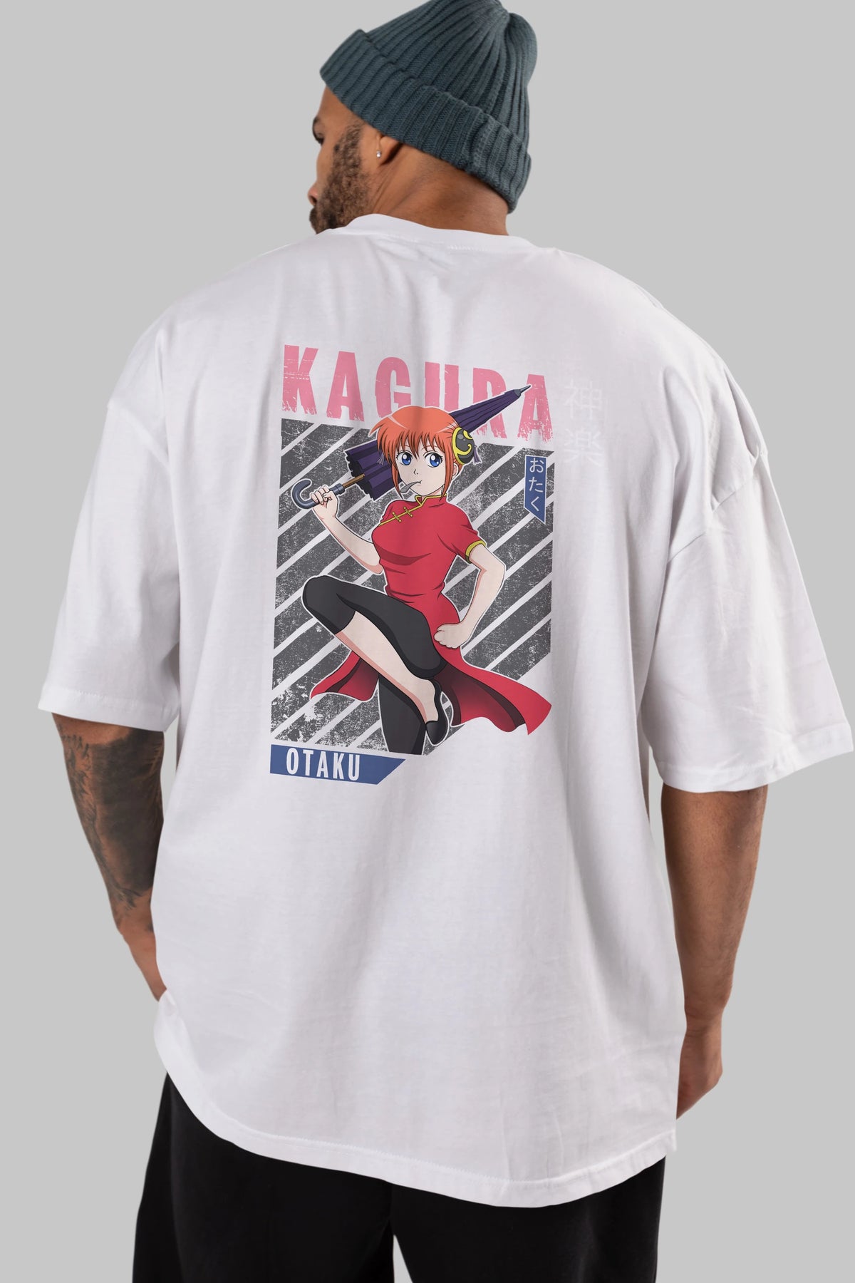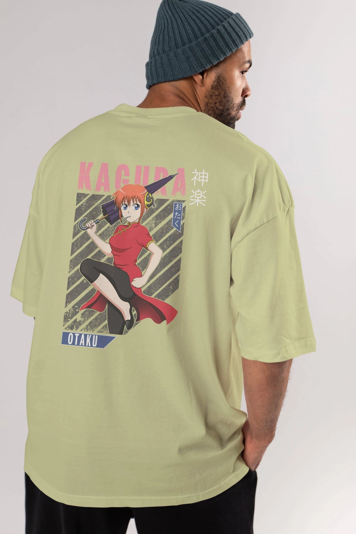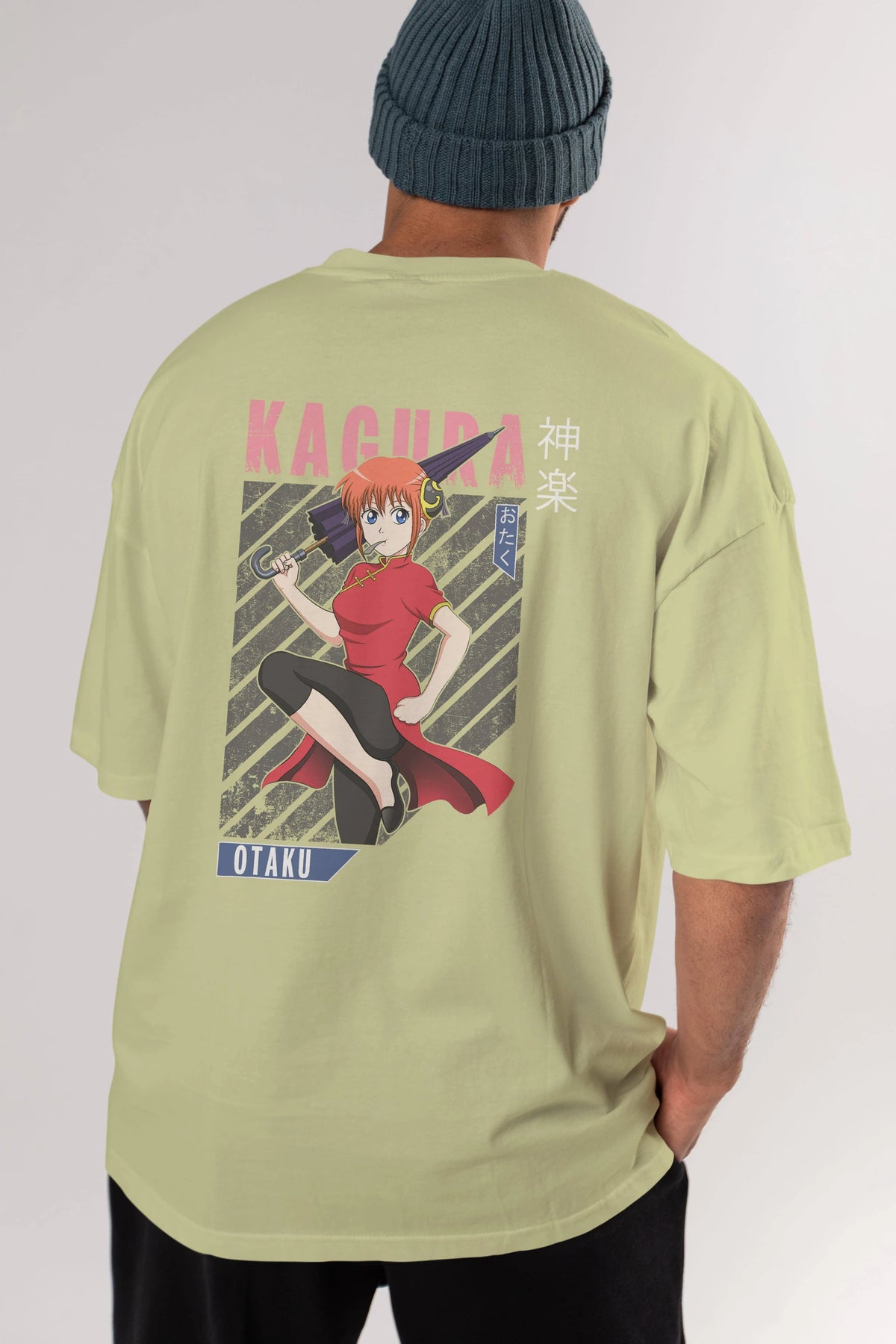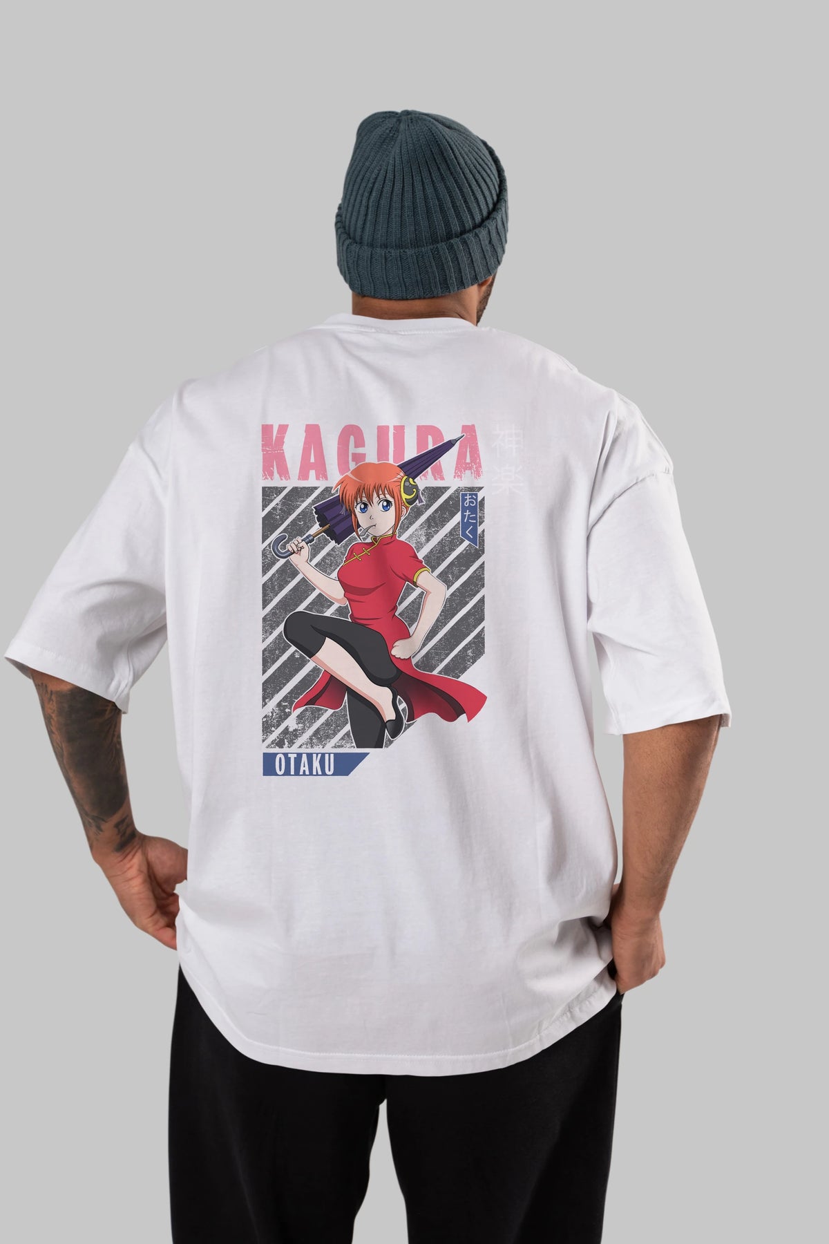 Kagura GINTAMA 1 Anime Arka Baskılı Oversize t-shirt Erkek Kadın Unisex