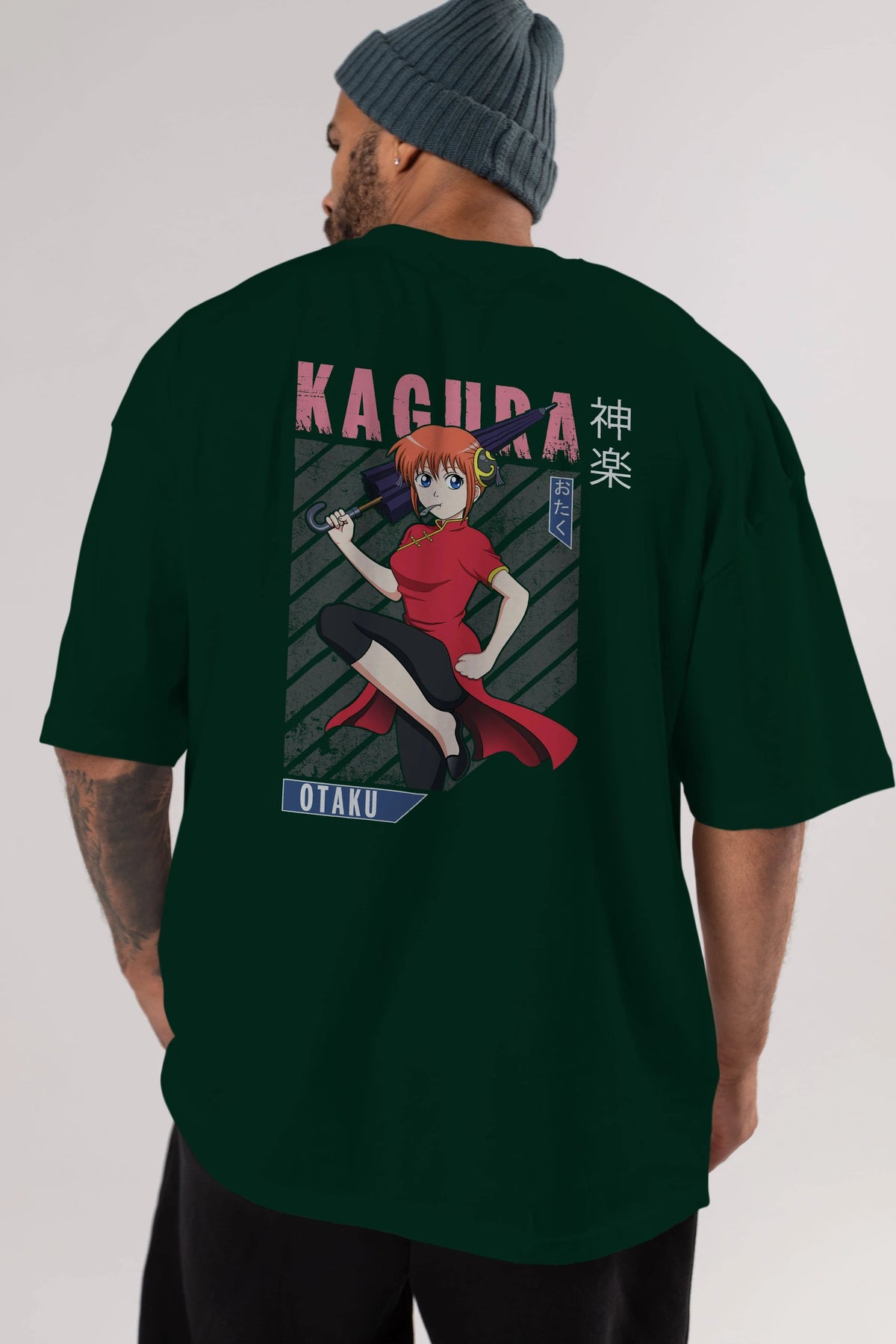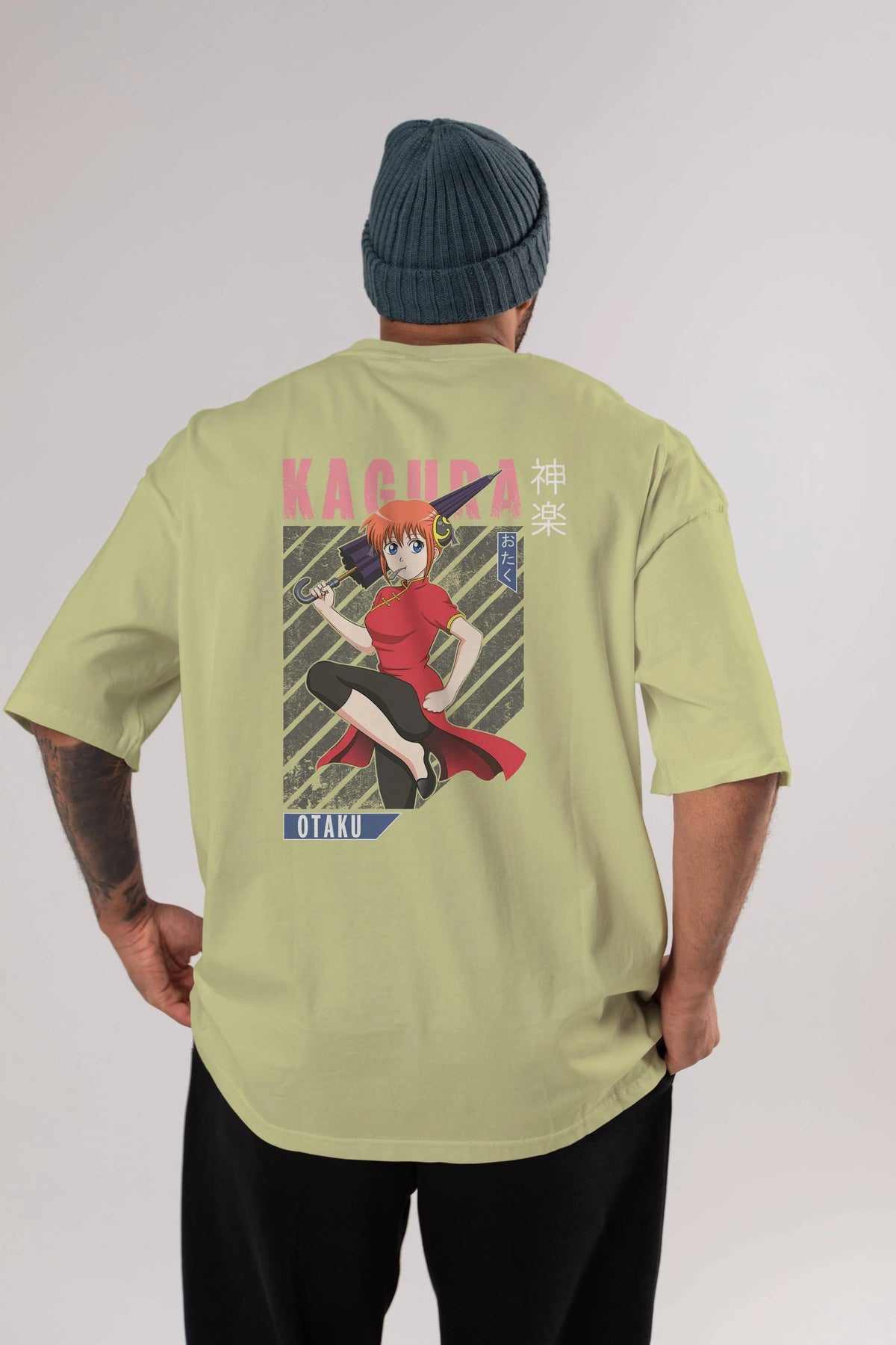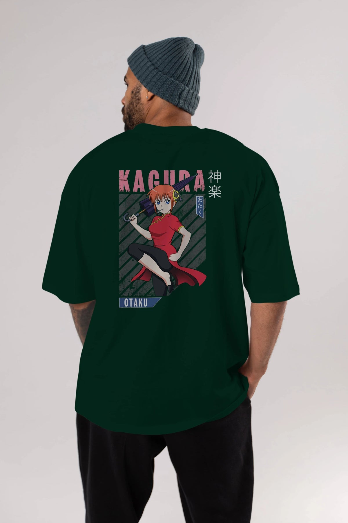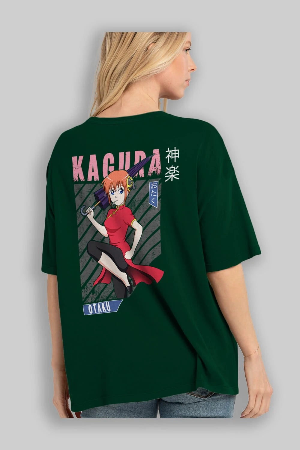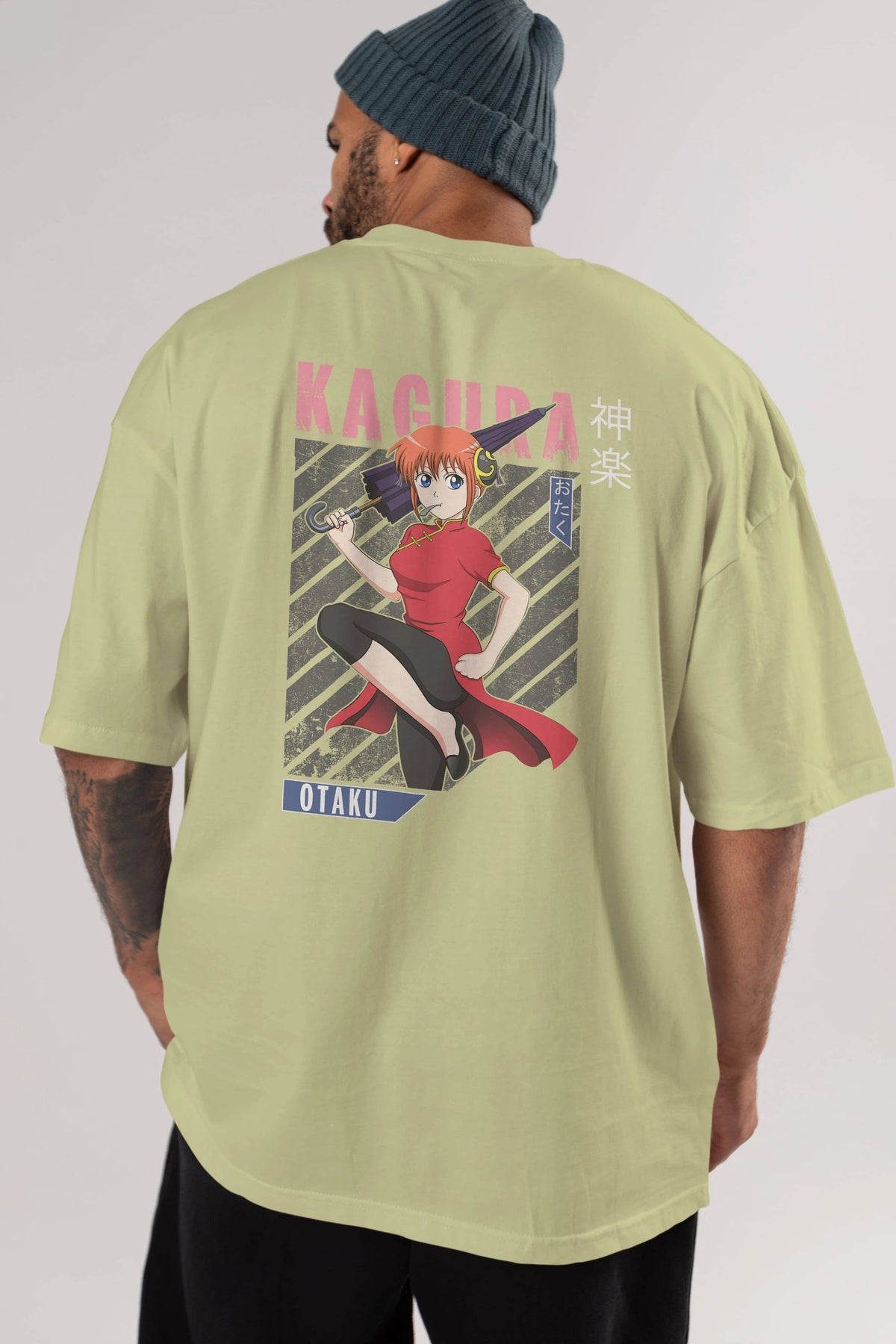 Kagura GINTAMA 1 Anime Arka Baskılı Oversize t-shirt Erkek Kadın Unisex