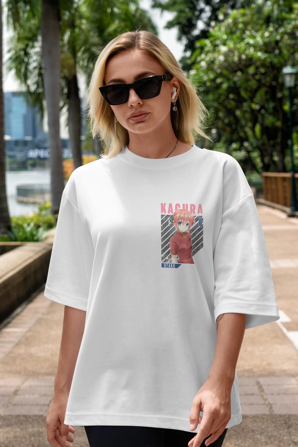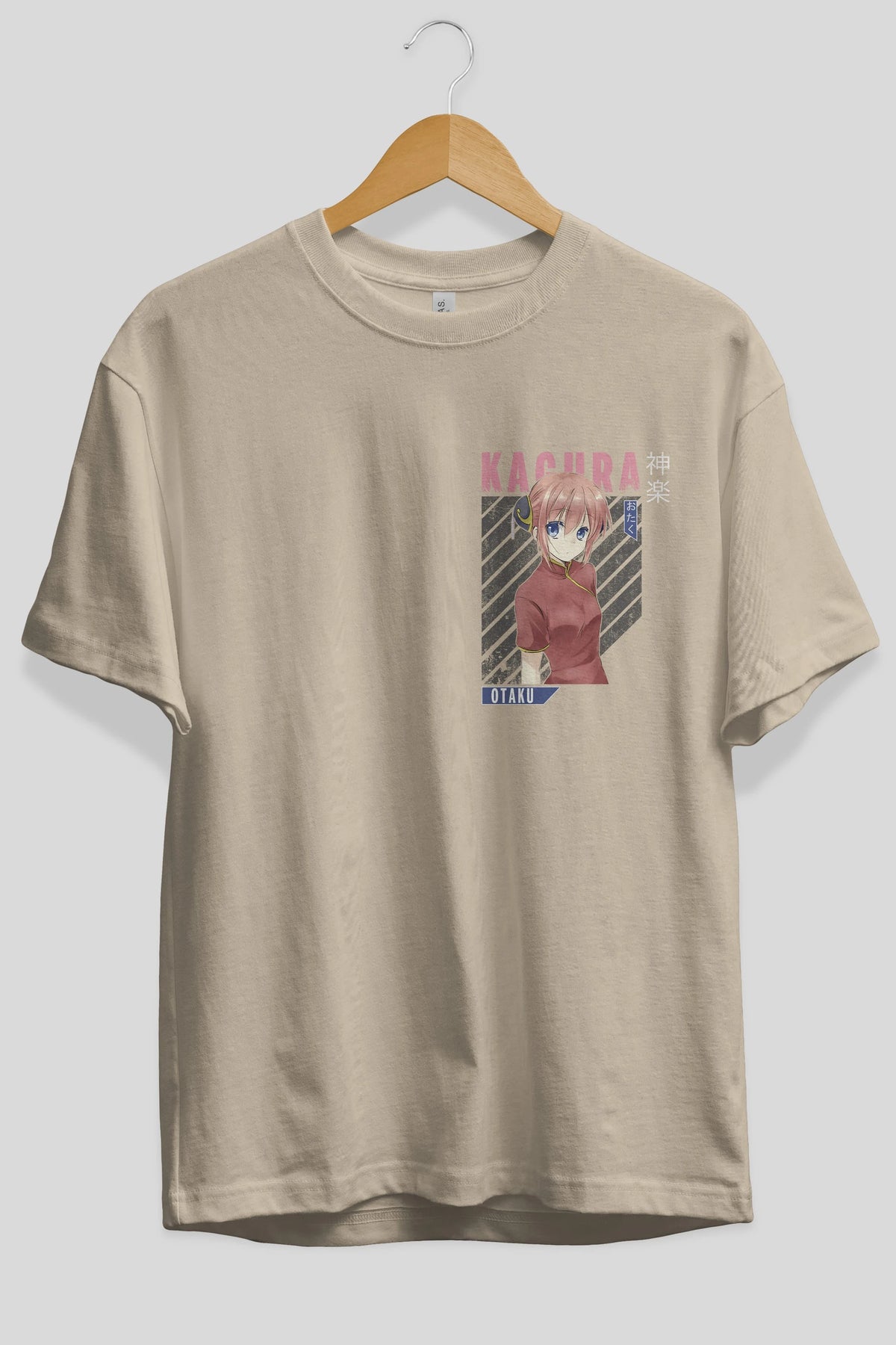Kagura GINTAMA Ön Sol Baskılı Oversize t-shirt Erkek Kadın Unisex %100 Pamuk Bisiklet Yaka tişort
