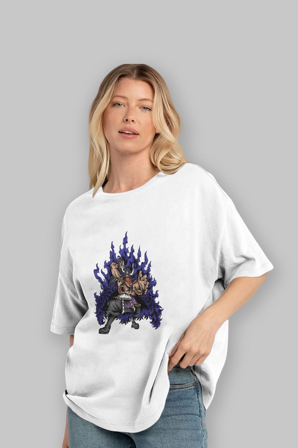 Kaido Anime Ön Baskılı Oversize t-shirt %100 pamuk Erkek Kadın Unisex