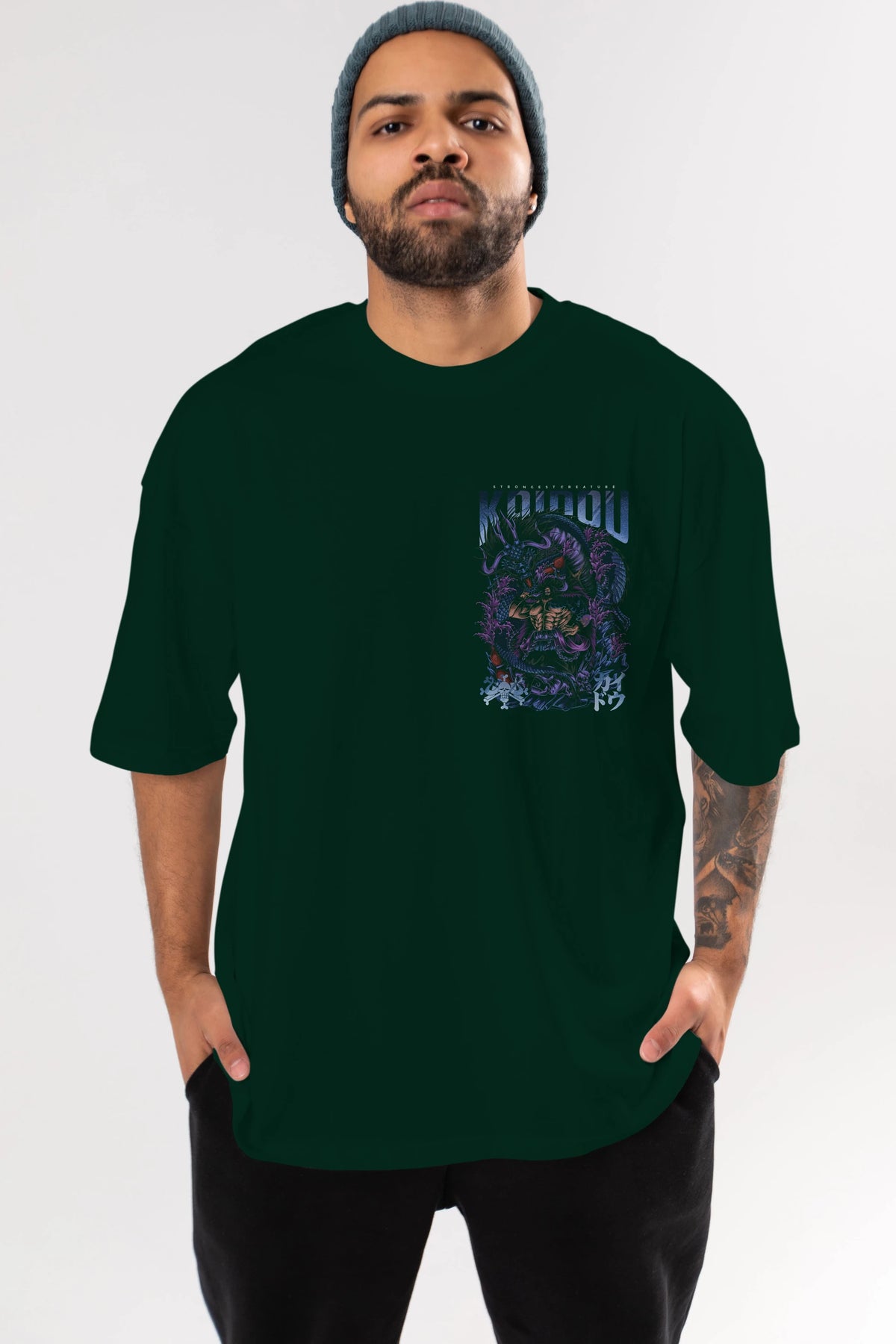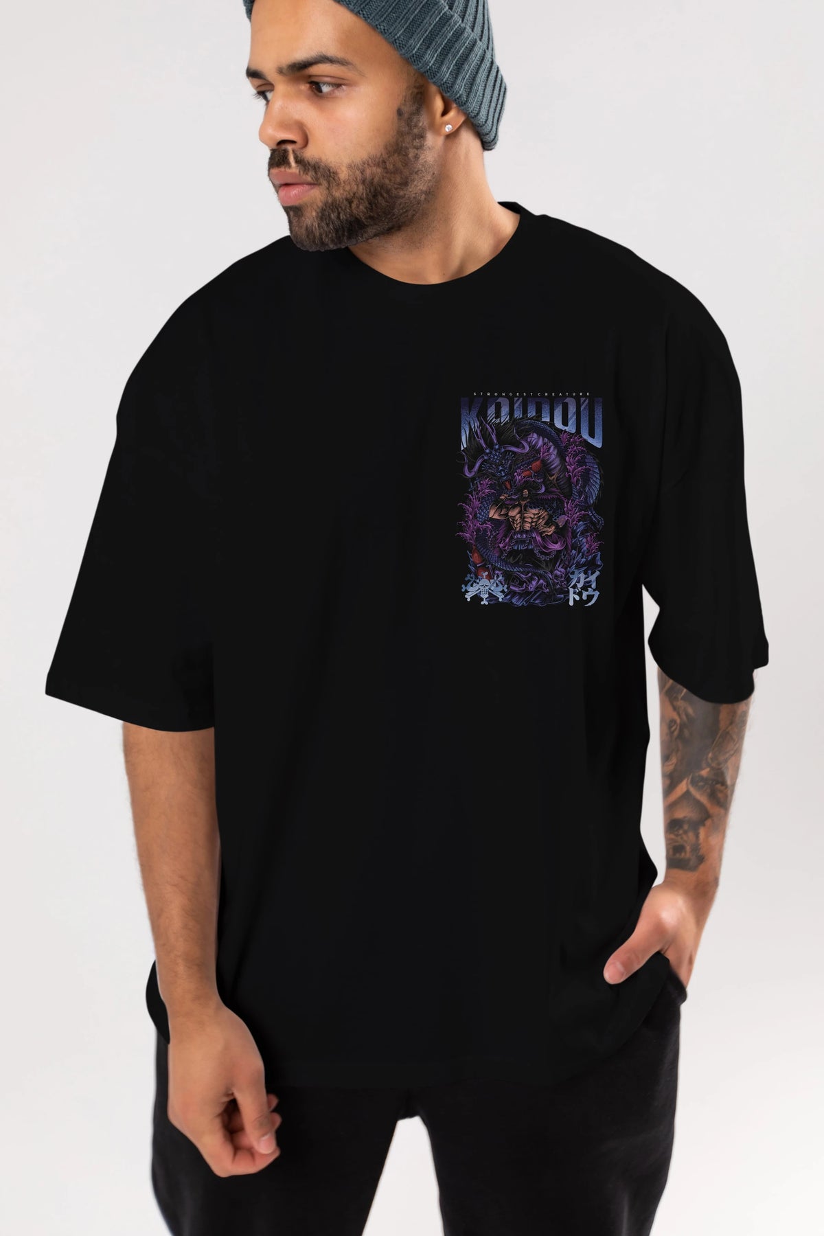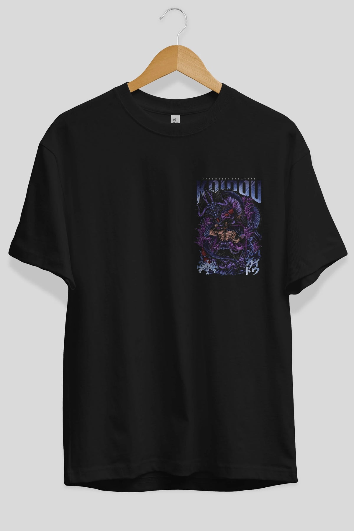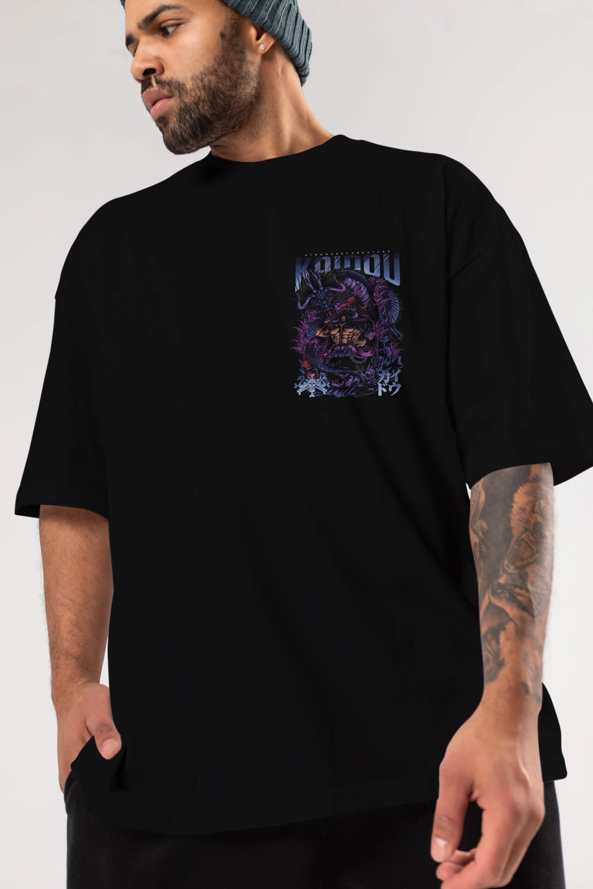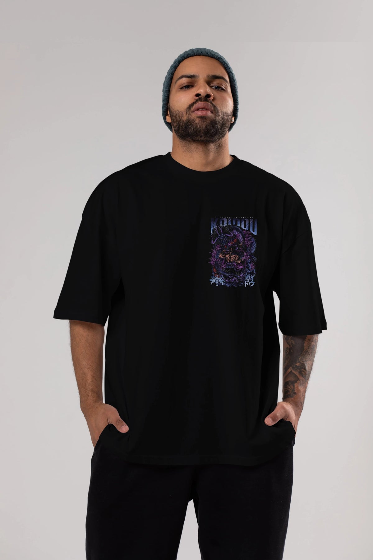 KAIDOU ONE PIECE Ön Sol Baskılı Oversize t-shirt Erkek Kadın Unisex %100 Pamuk Bisiklet Yaka tişort