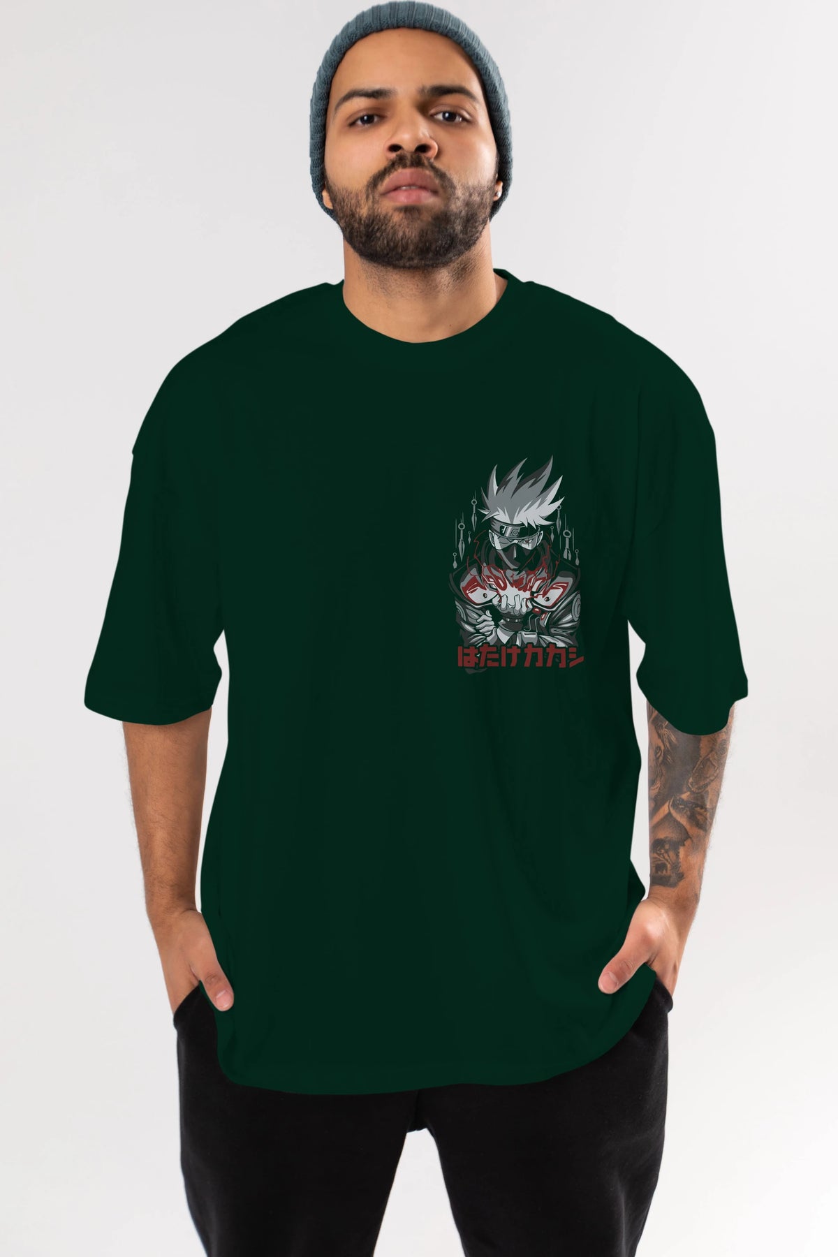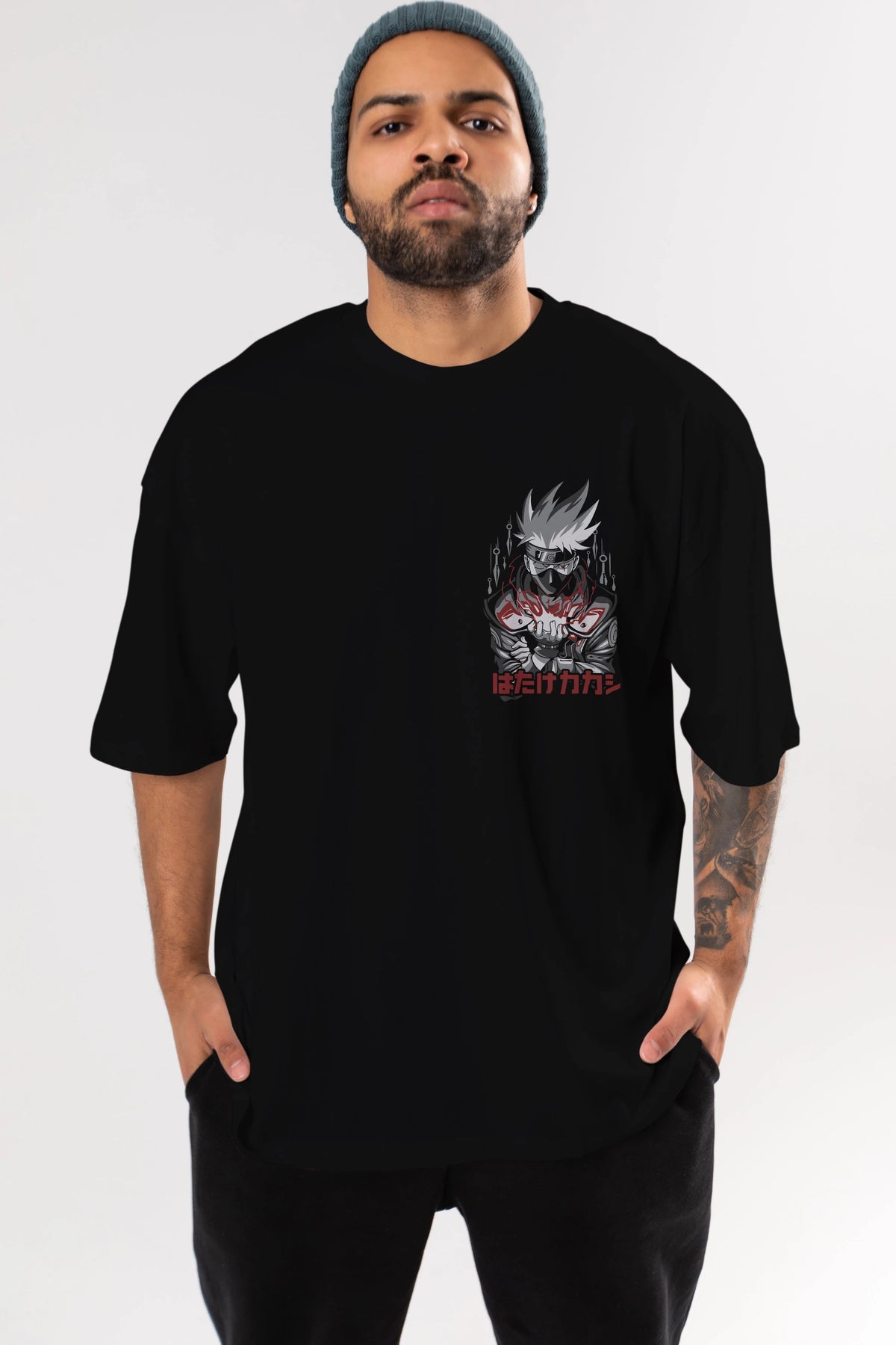 KAKASHI HATAKE NARUTO 1 Ön Sol Baskılı Oversize t-shirt Erkek Kadın Unisex %100 Pamuk Bisiklet Yaka tişort