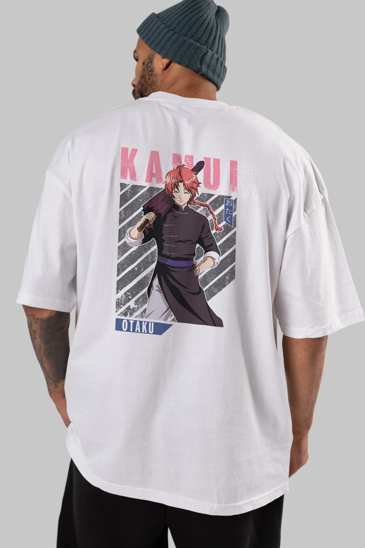 Kamui GINTAMA 1 Anime Arka Baskılı Oversize t-shirt Erkek Kadın Unisex