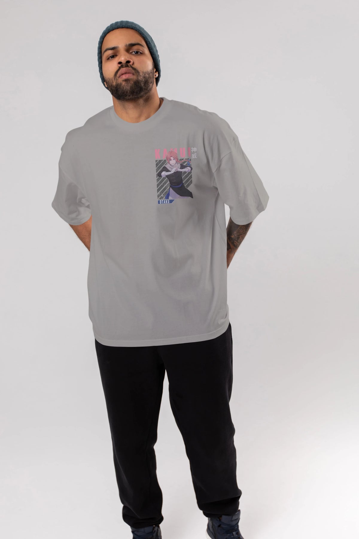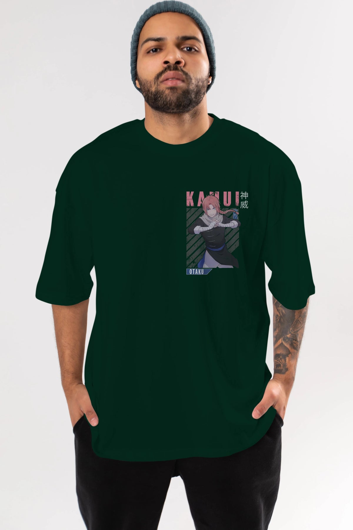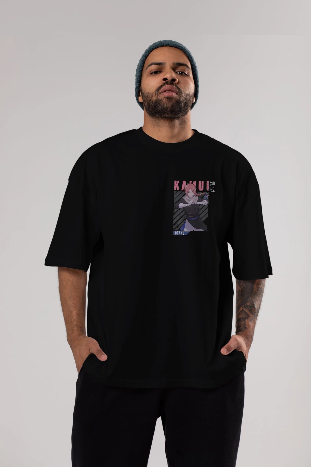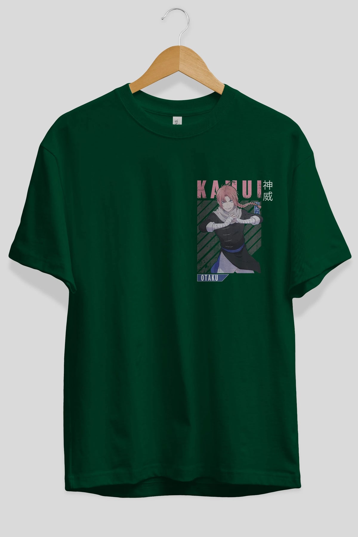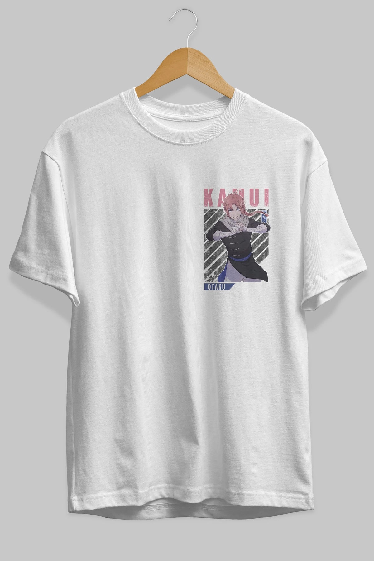 Kamui GINTAMA Ön Sol Baskılı Oversize t-shirt Erkek Kadın Unisex %100 Pamuk Bisiklet Yaka tişort
