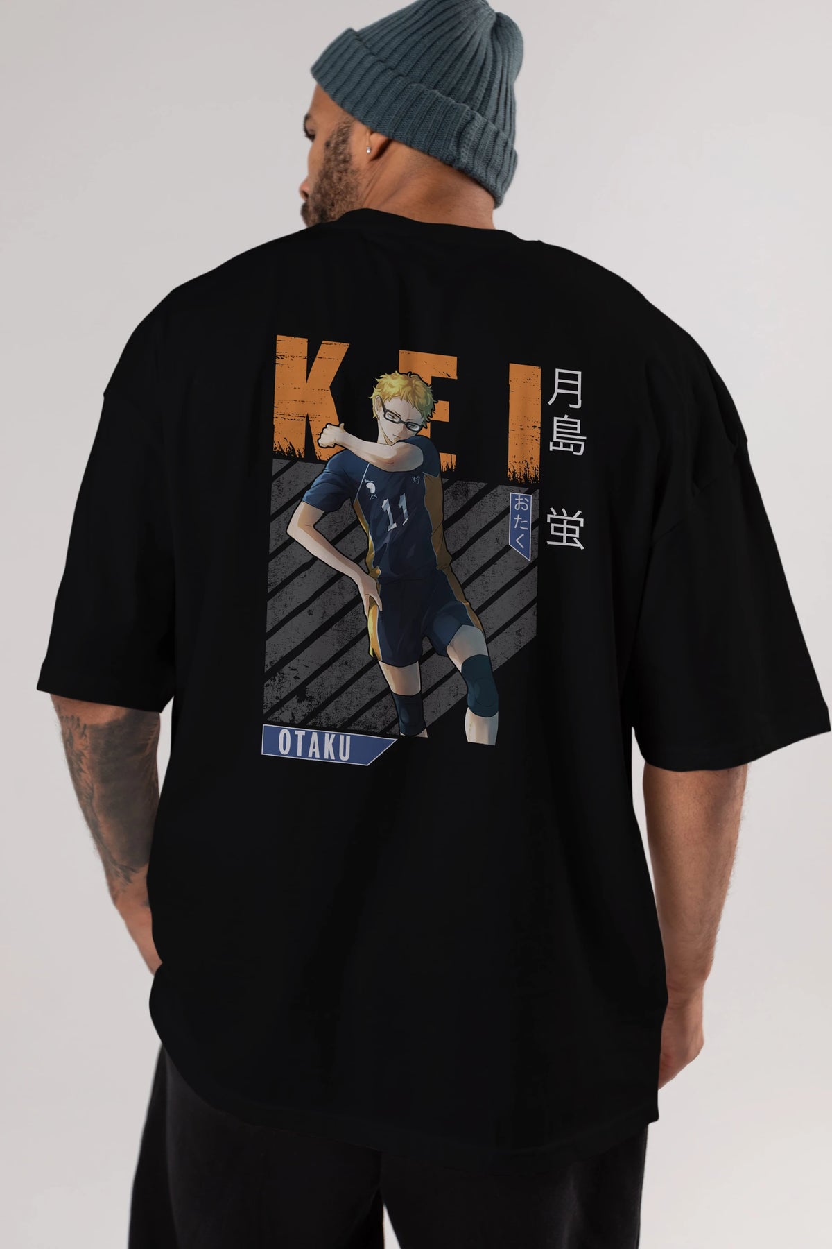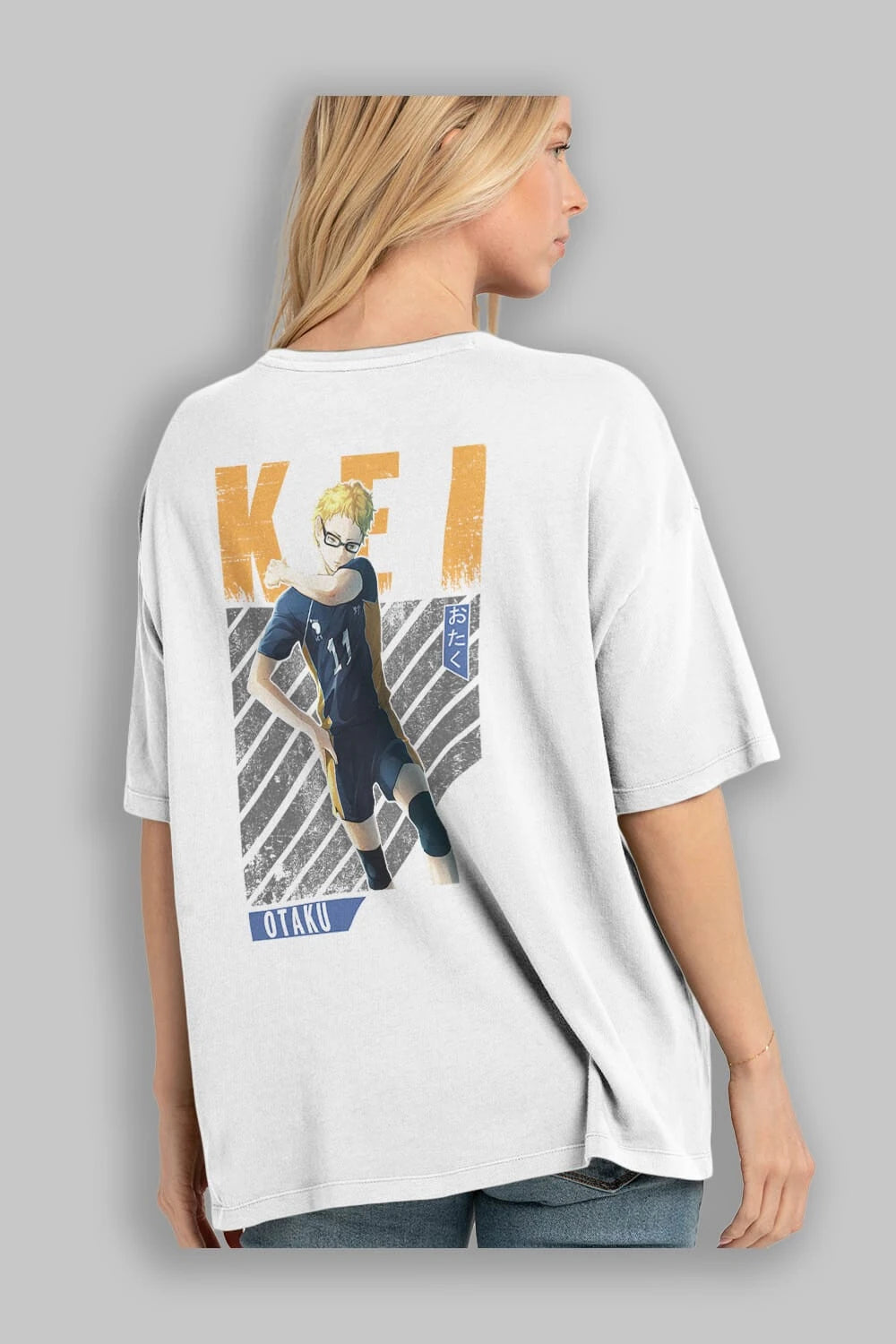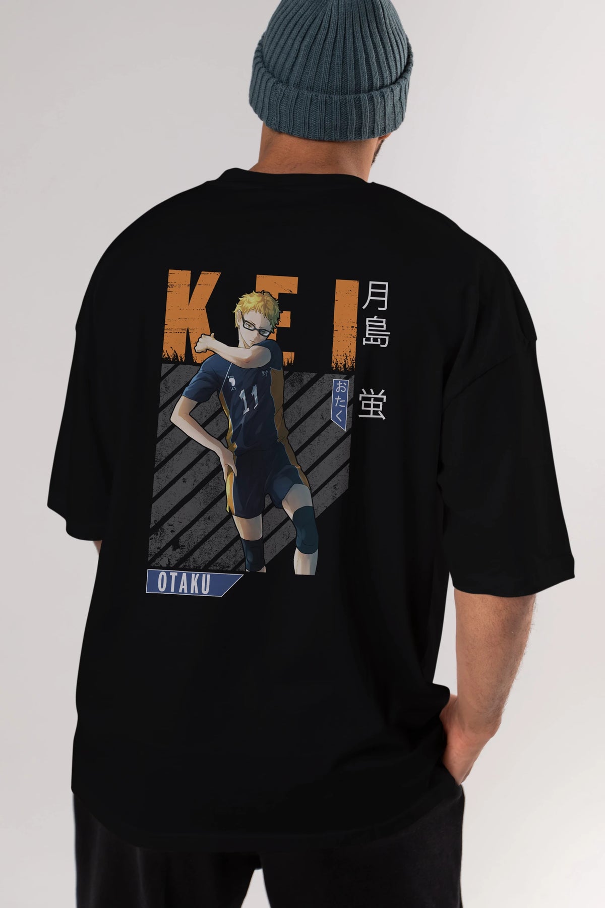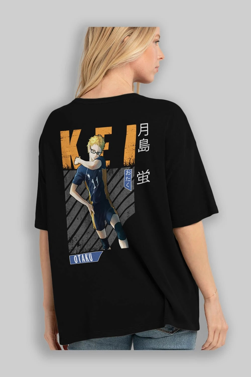 Kei Tsukishima 2 Anime Arka Baskılı Oversize t-shirt Erkek Kadın Unisex