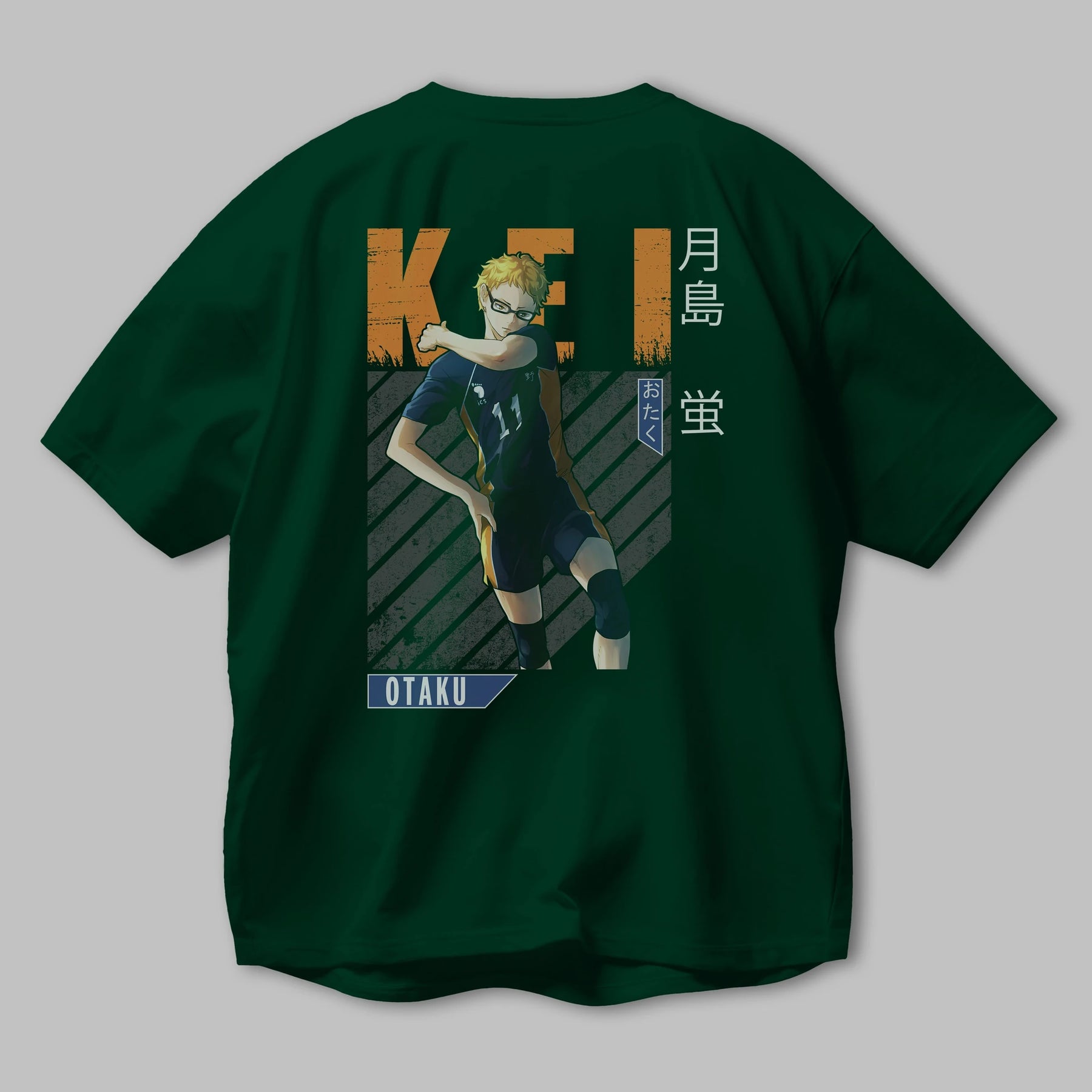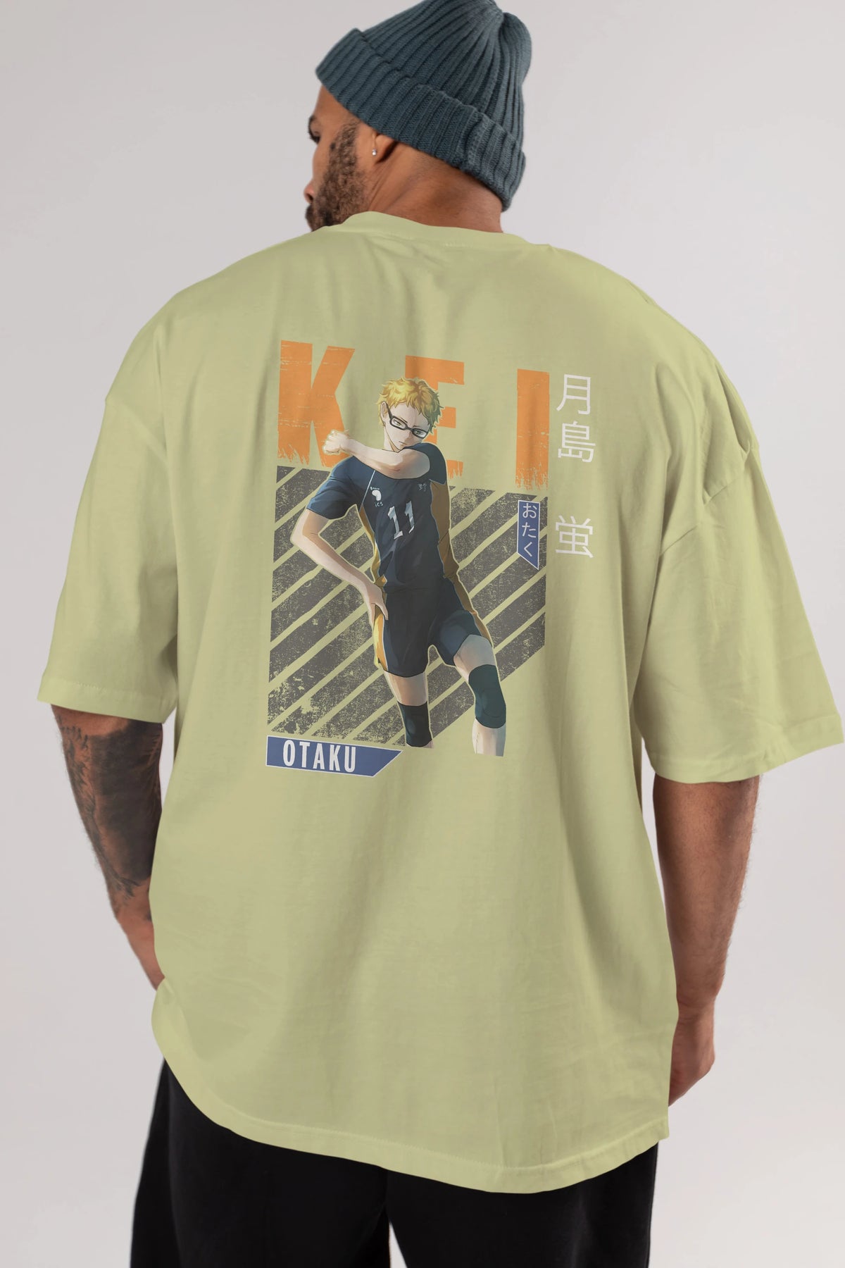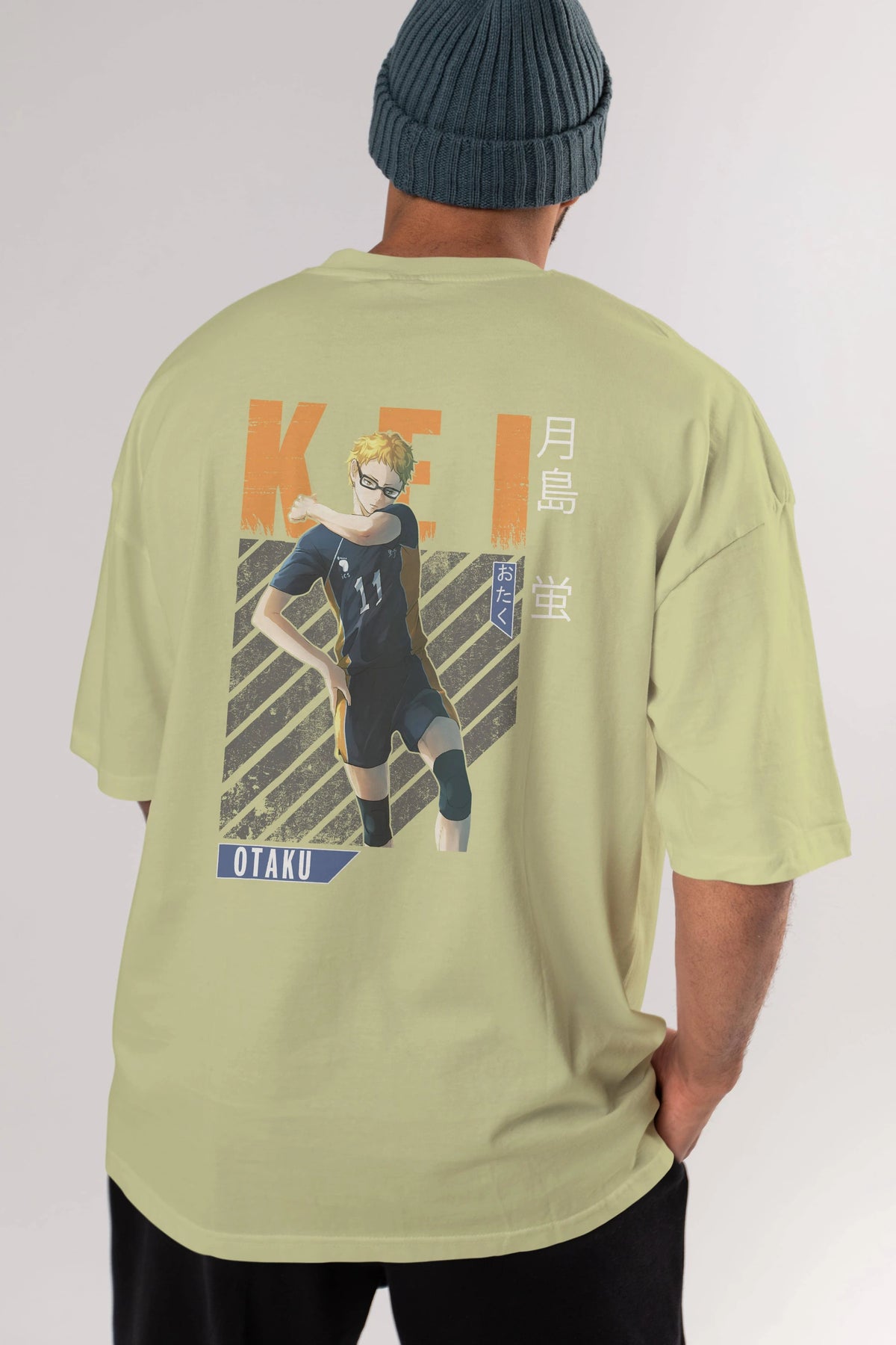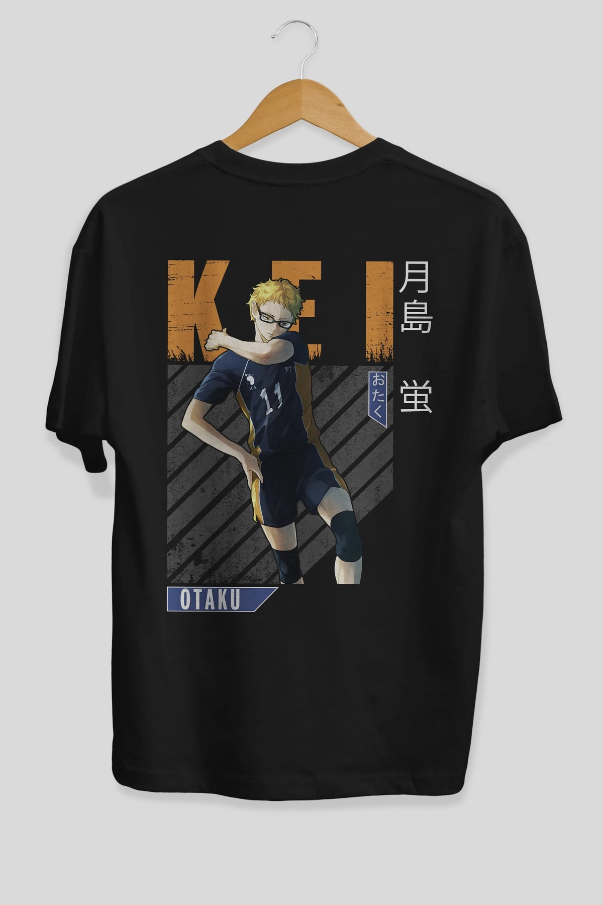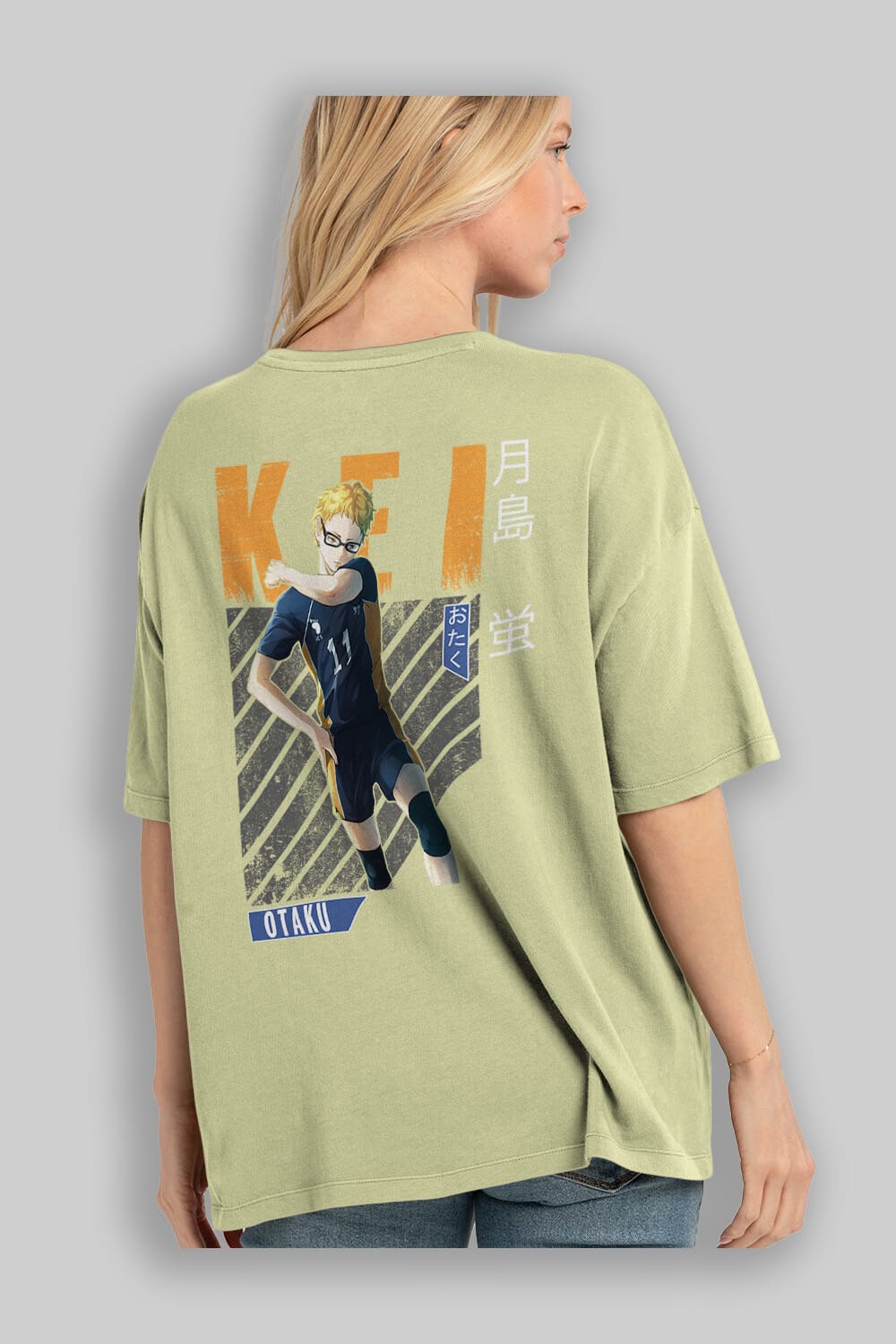 Kei Tsukishima 2 Anime Arka Baskılı Oversize t-shirt Erkek Kadın Unisex