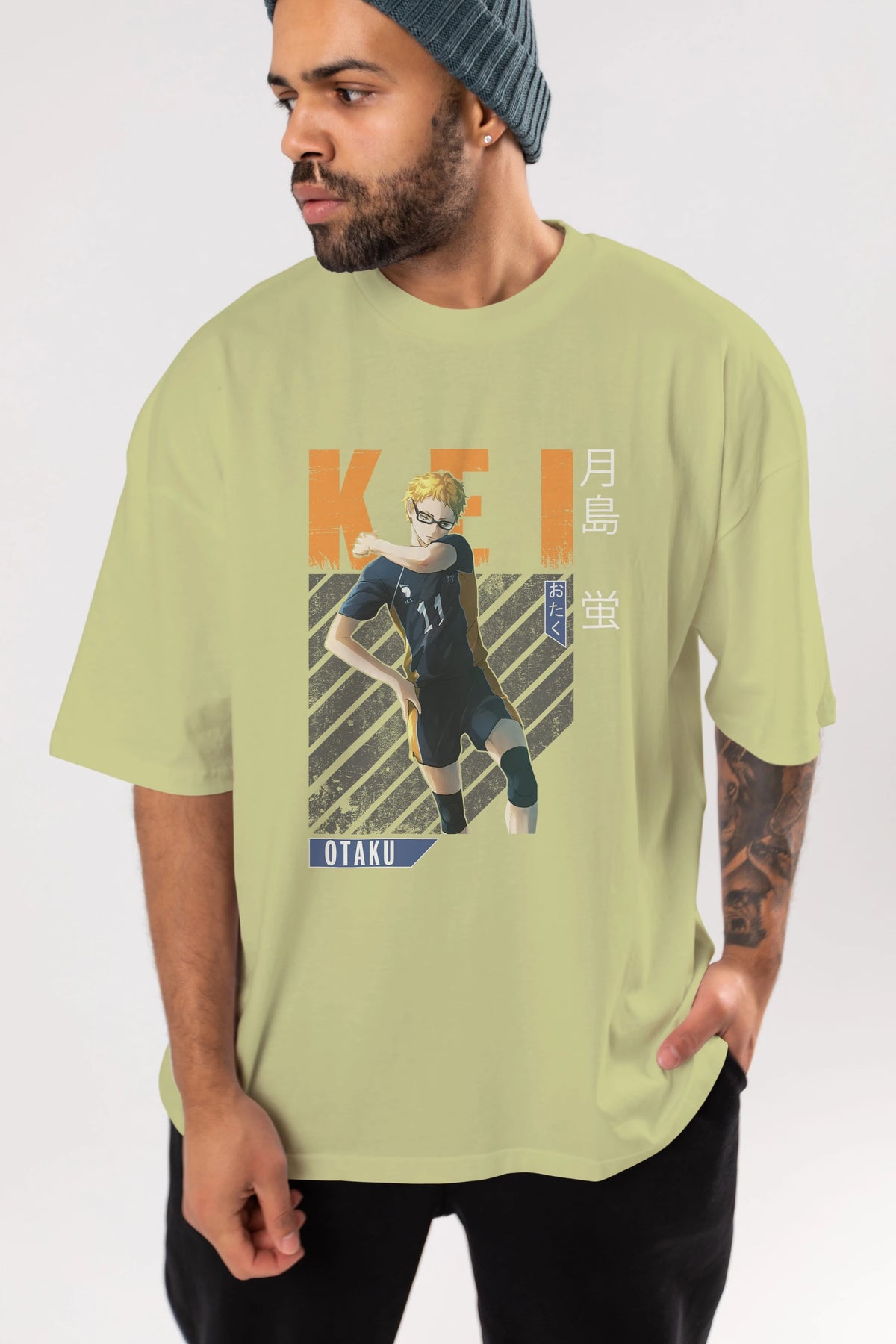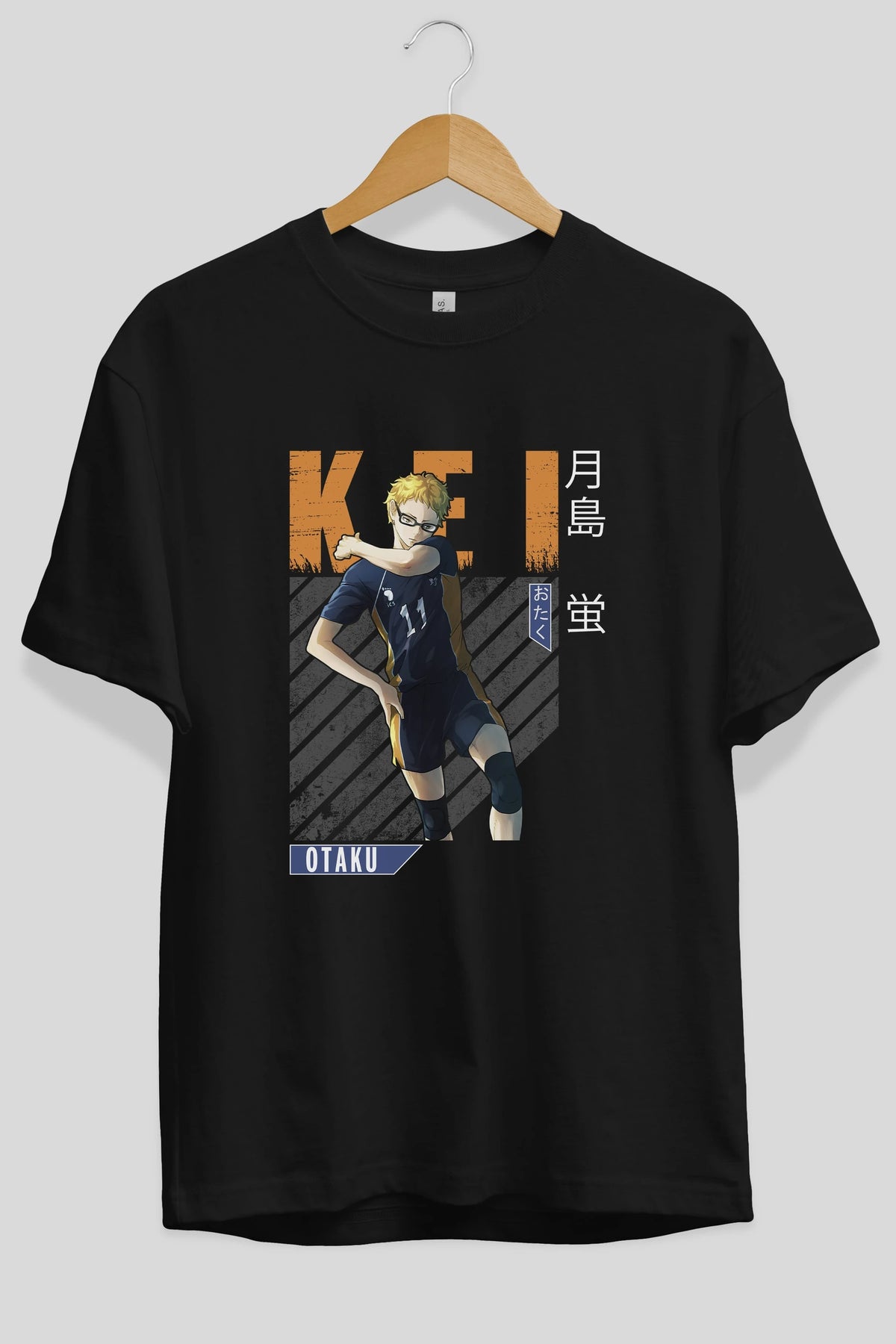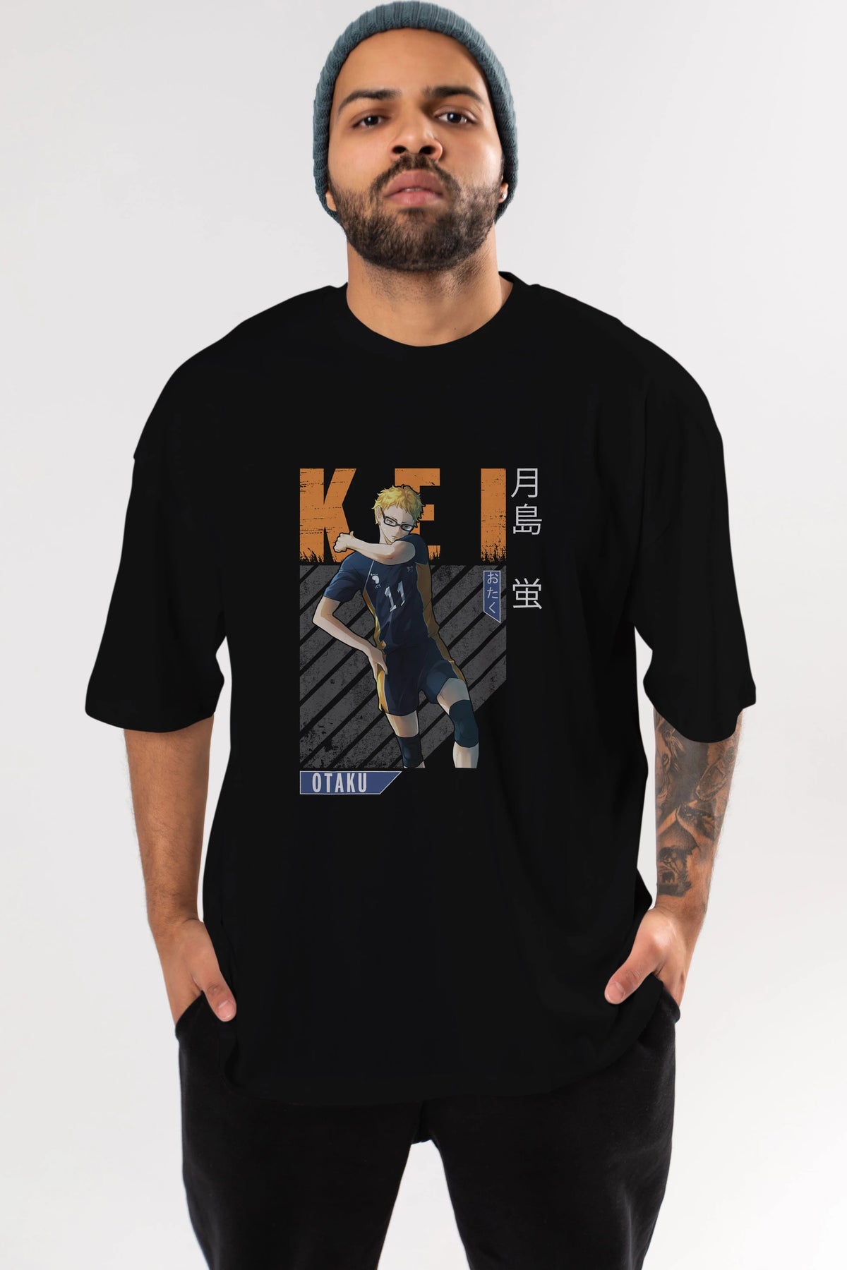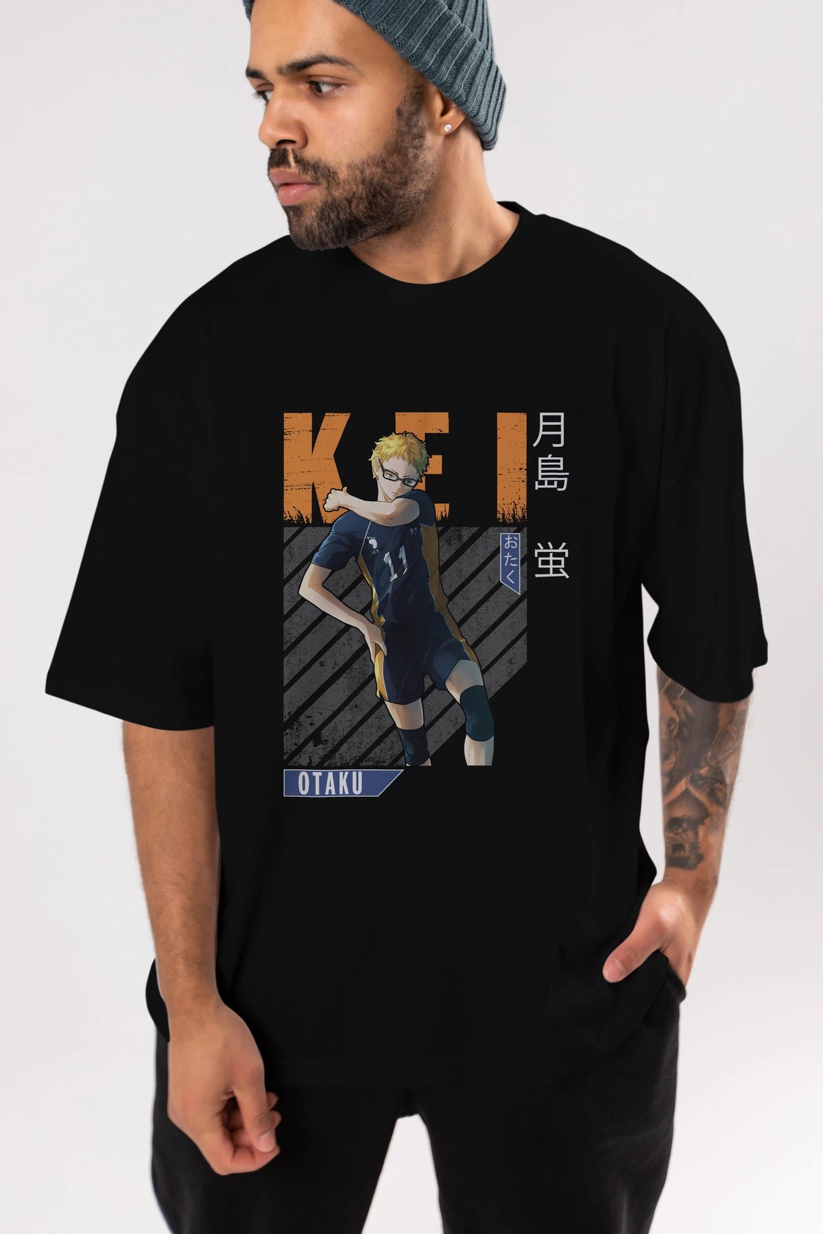 Kei Tsukishima 2 Anime Ön Baskılı Oversize t-shirt %100 pamuk Erkek Kadın Unisex