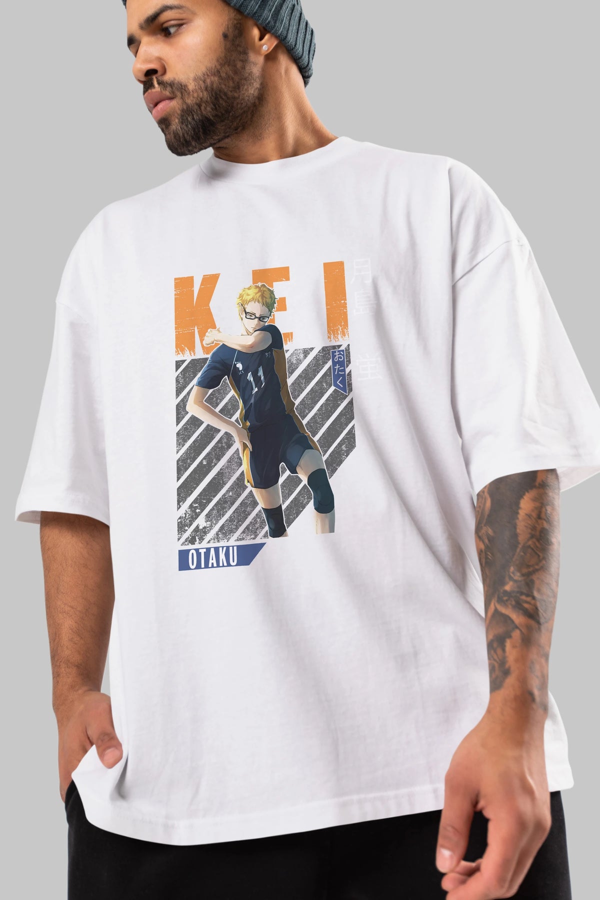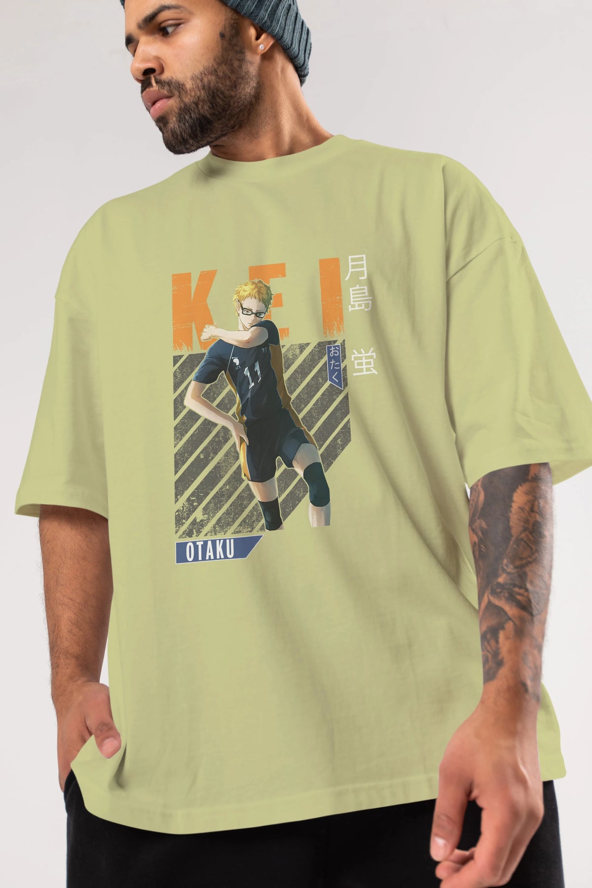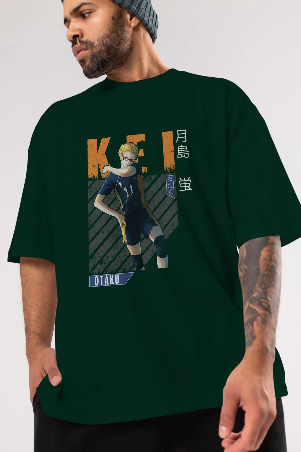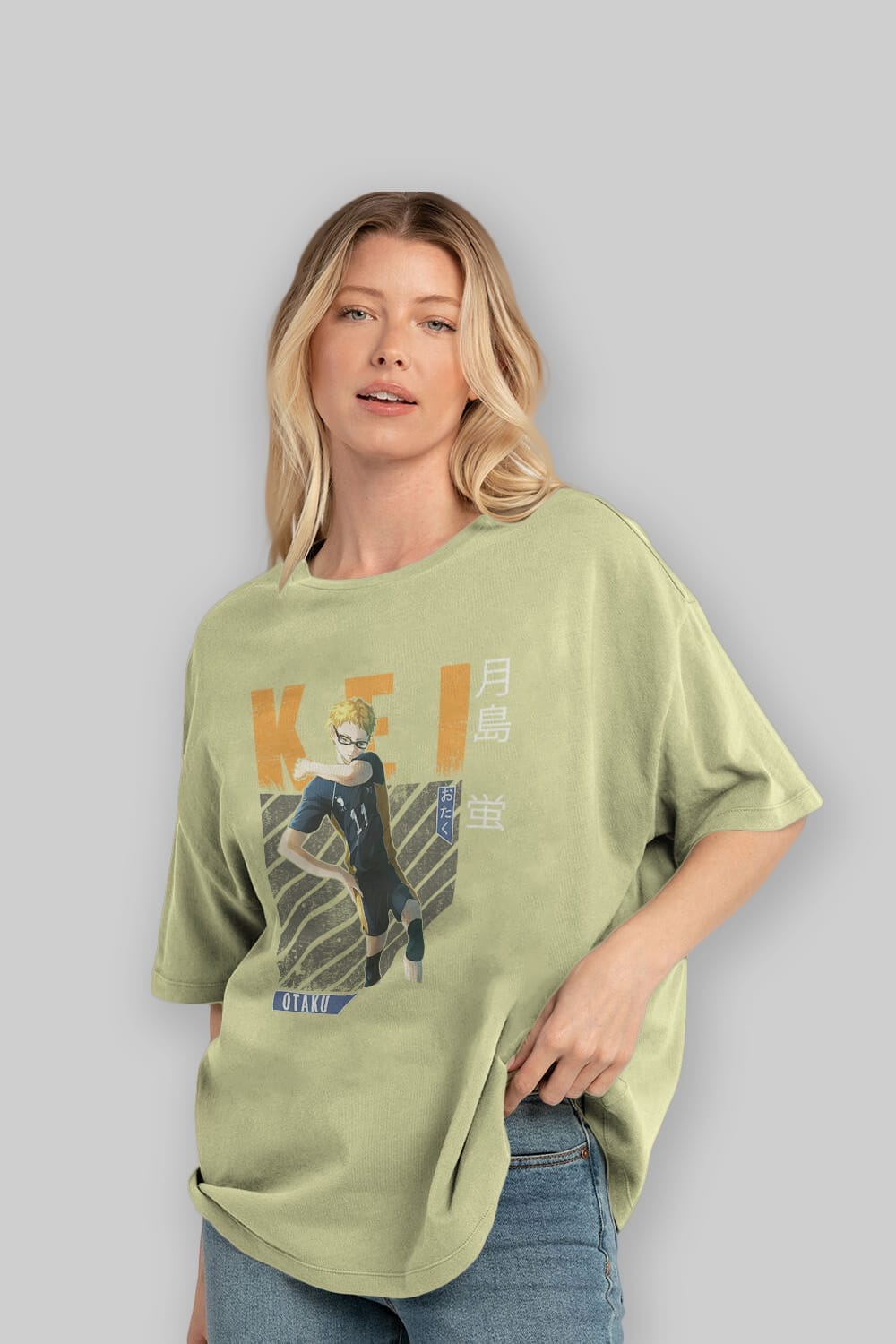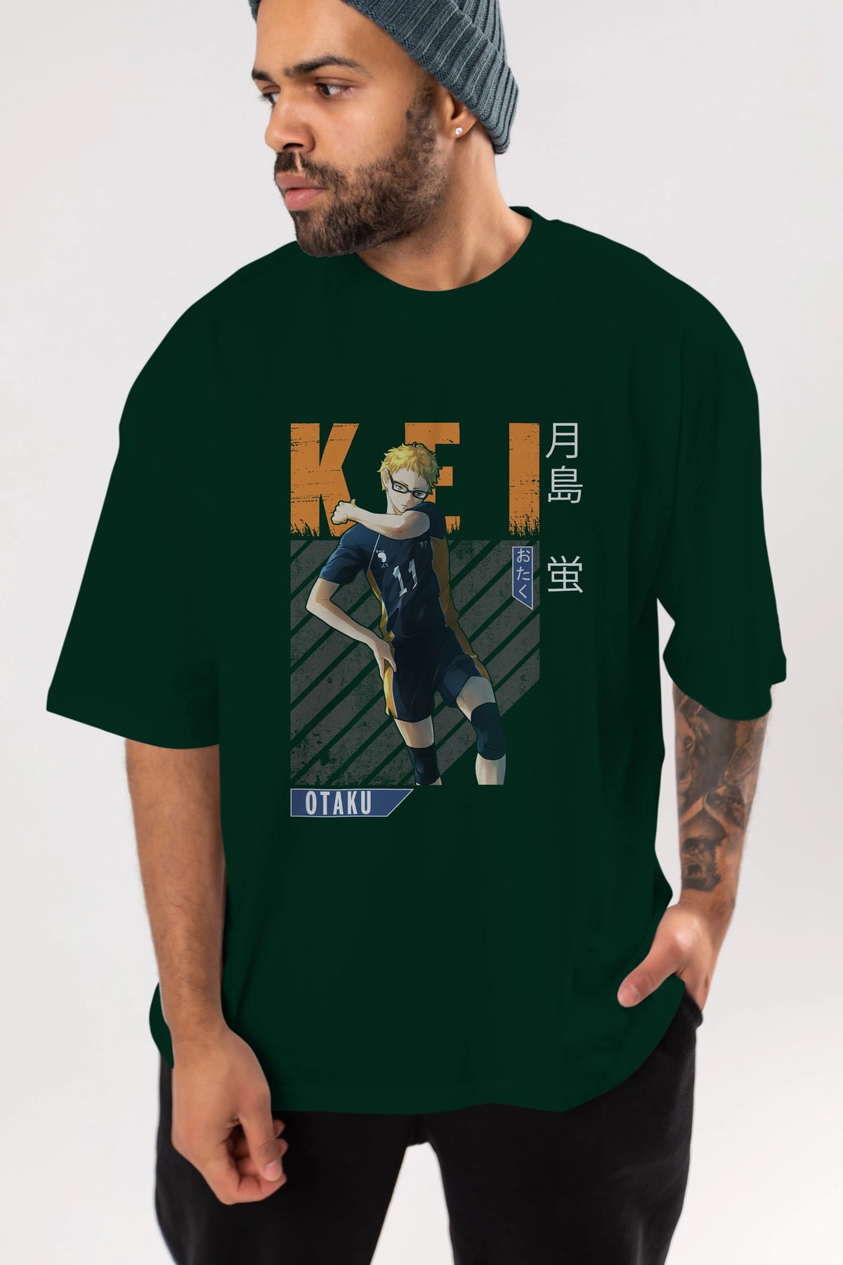 Kei Tsukishima 2 Anime Ön Baskılı Oversize t-shirt %100 pamuk Erkek Kadın Unisex