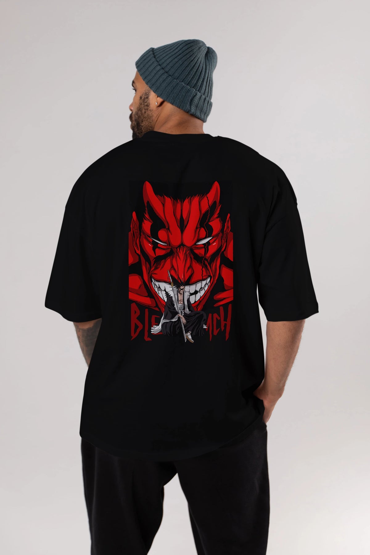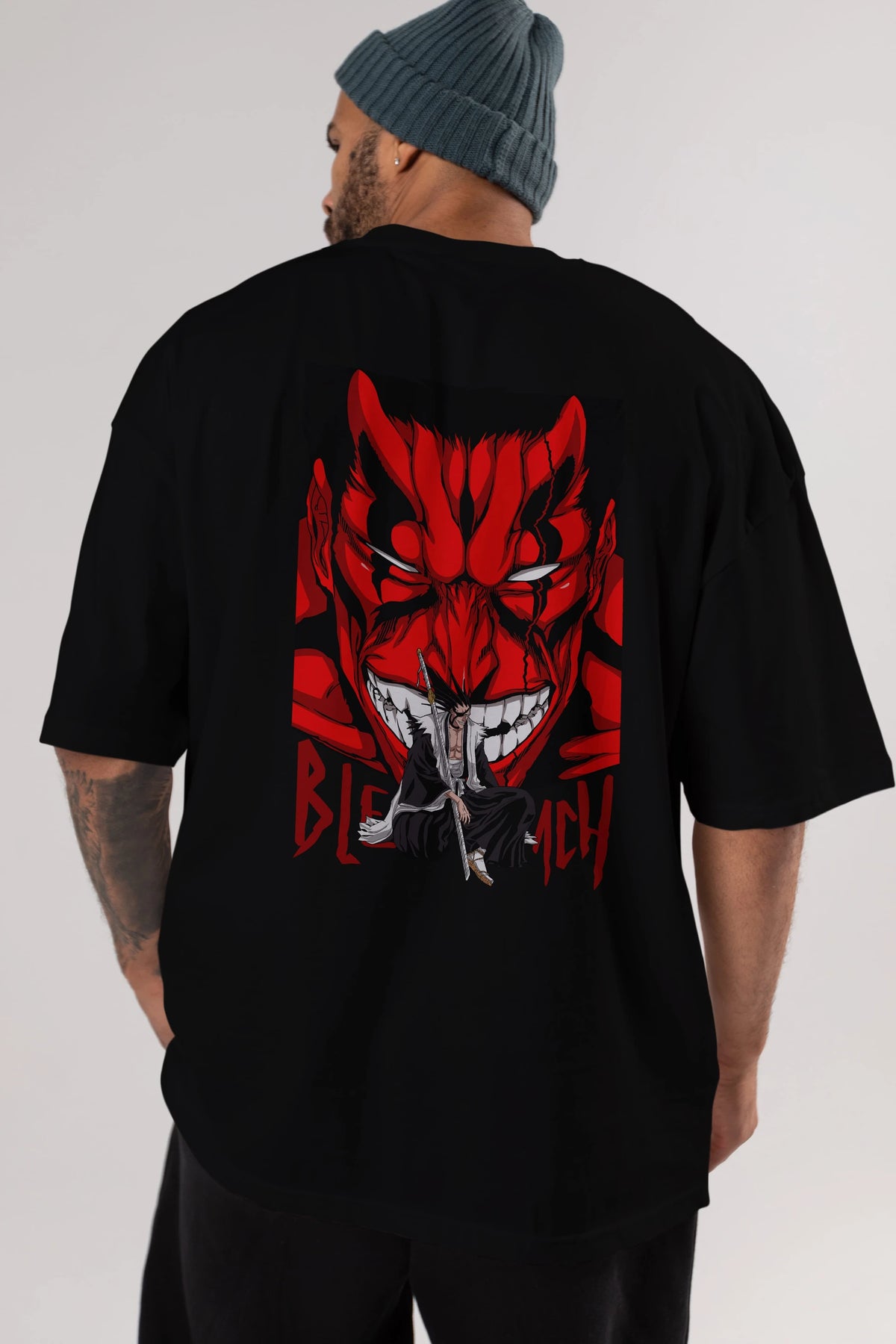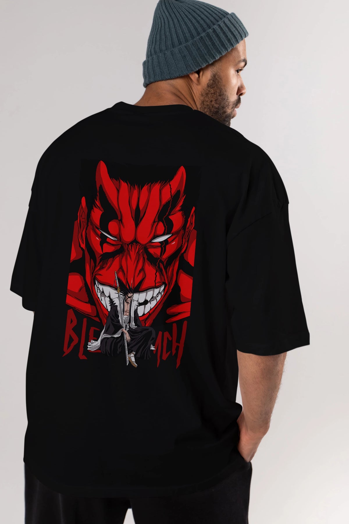 KENPACHI ZARAKI BLEACH Anime Arka Baskılı Oversize t-shirt Erkek Kadın Unisex