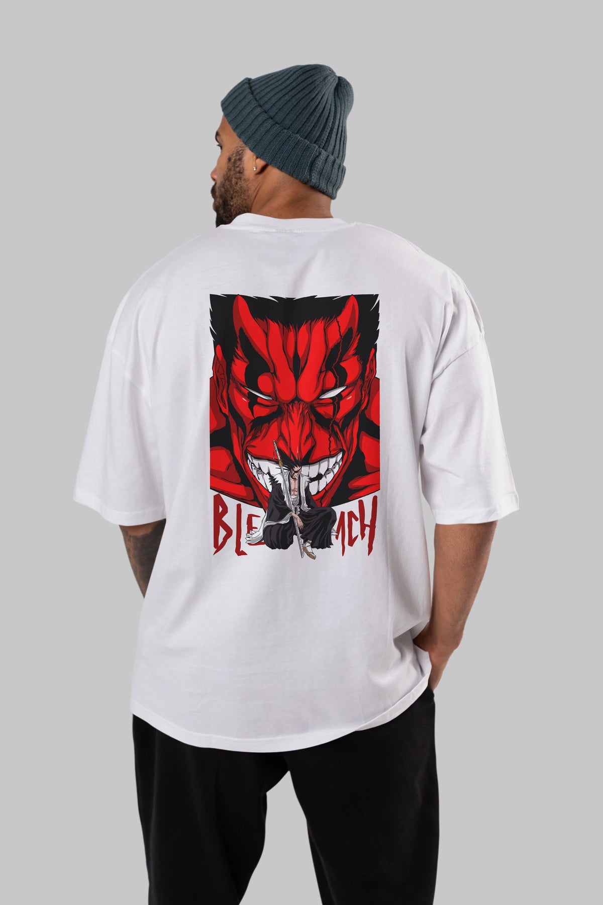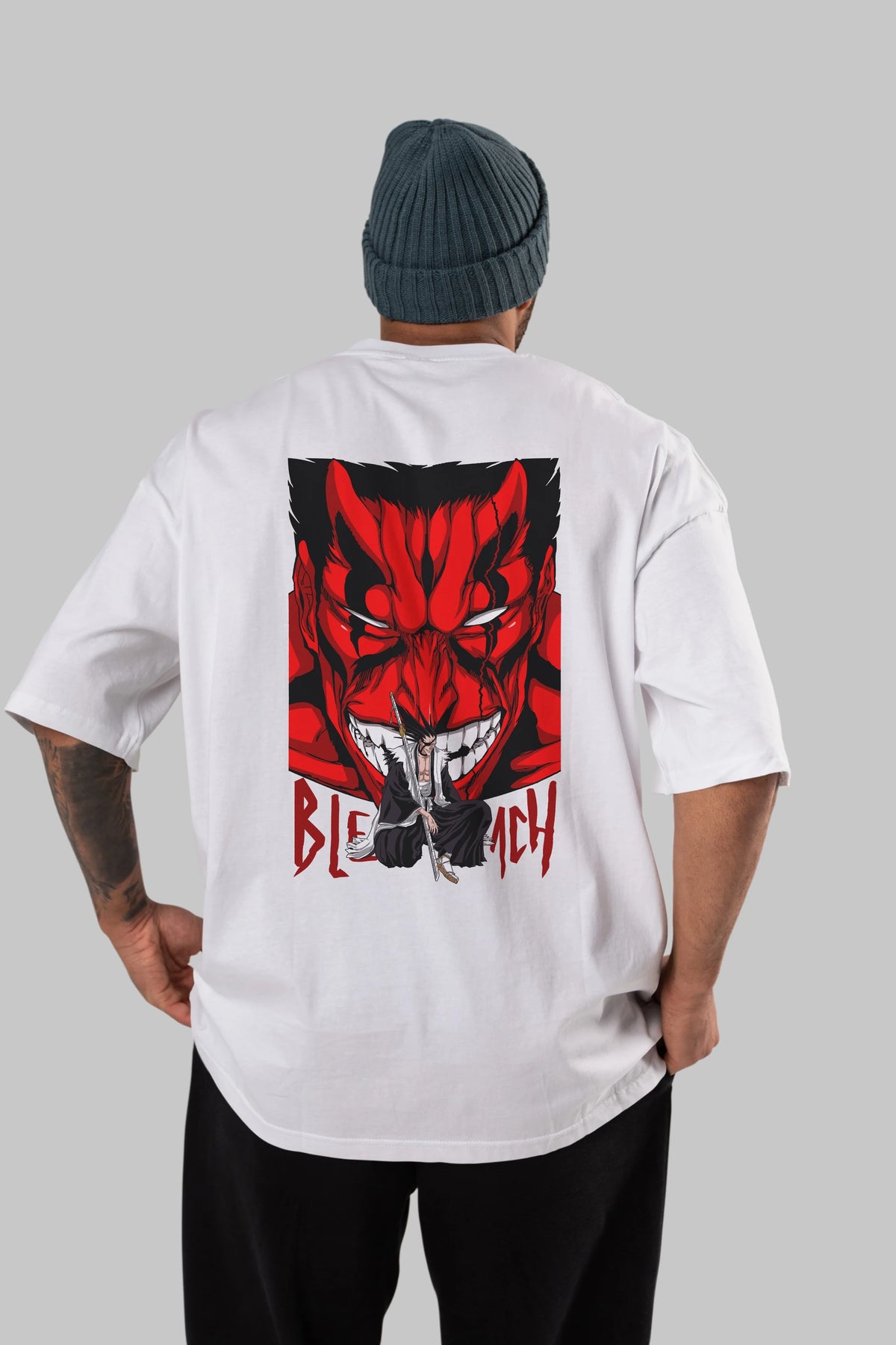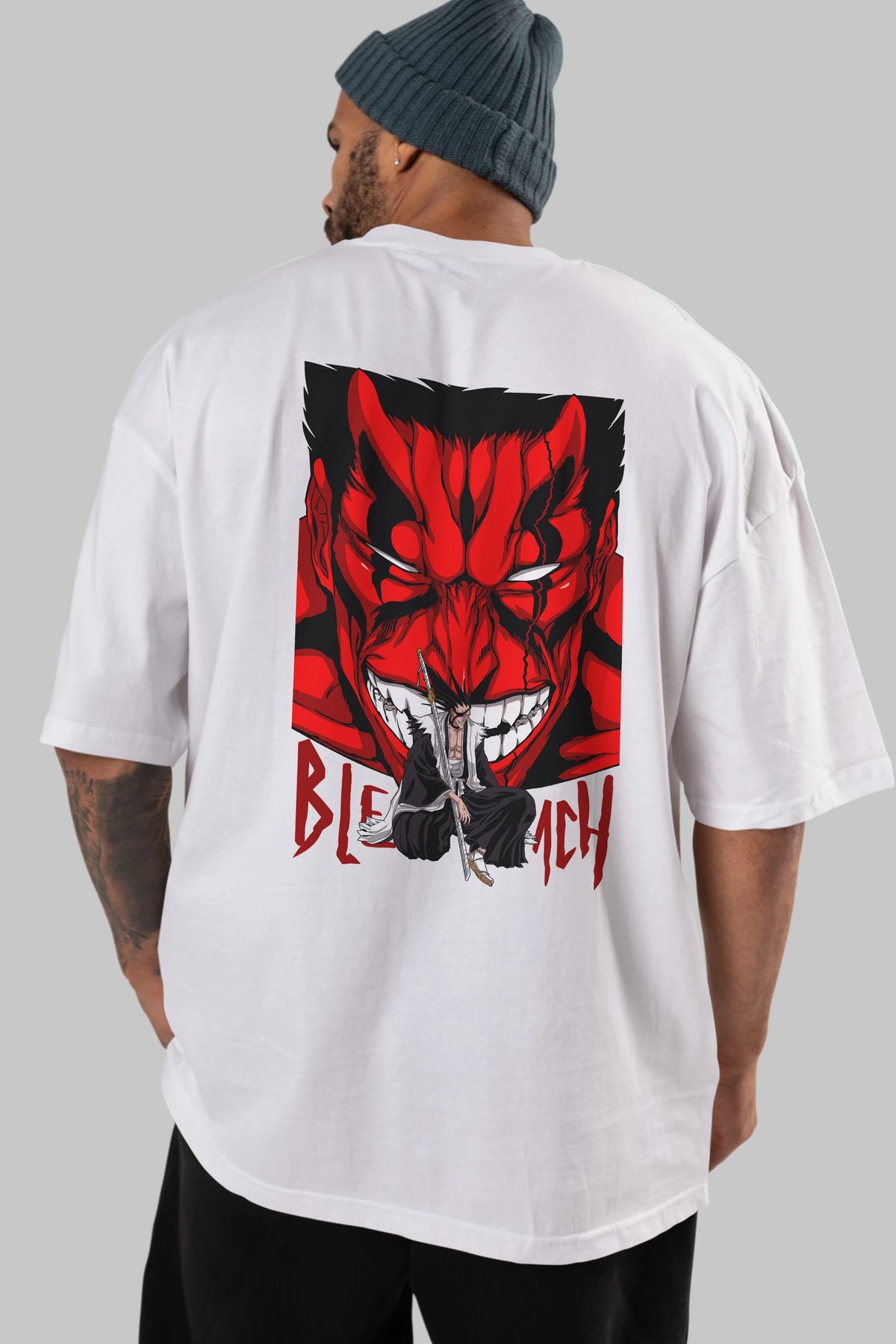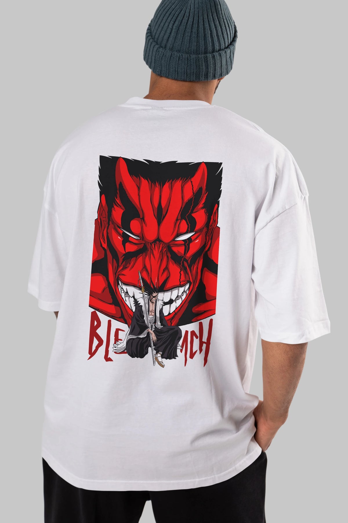 KENPACHI ZARAKI BLEACH Anime Arka Baskılı Oversize t-shirt Erkek Kadın Unisex