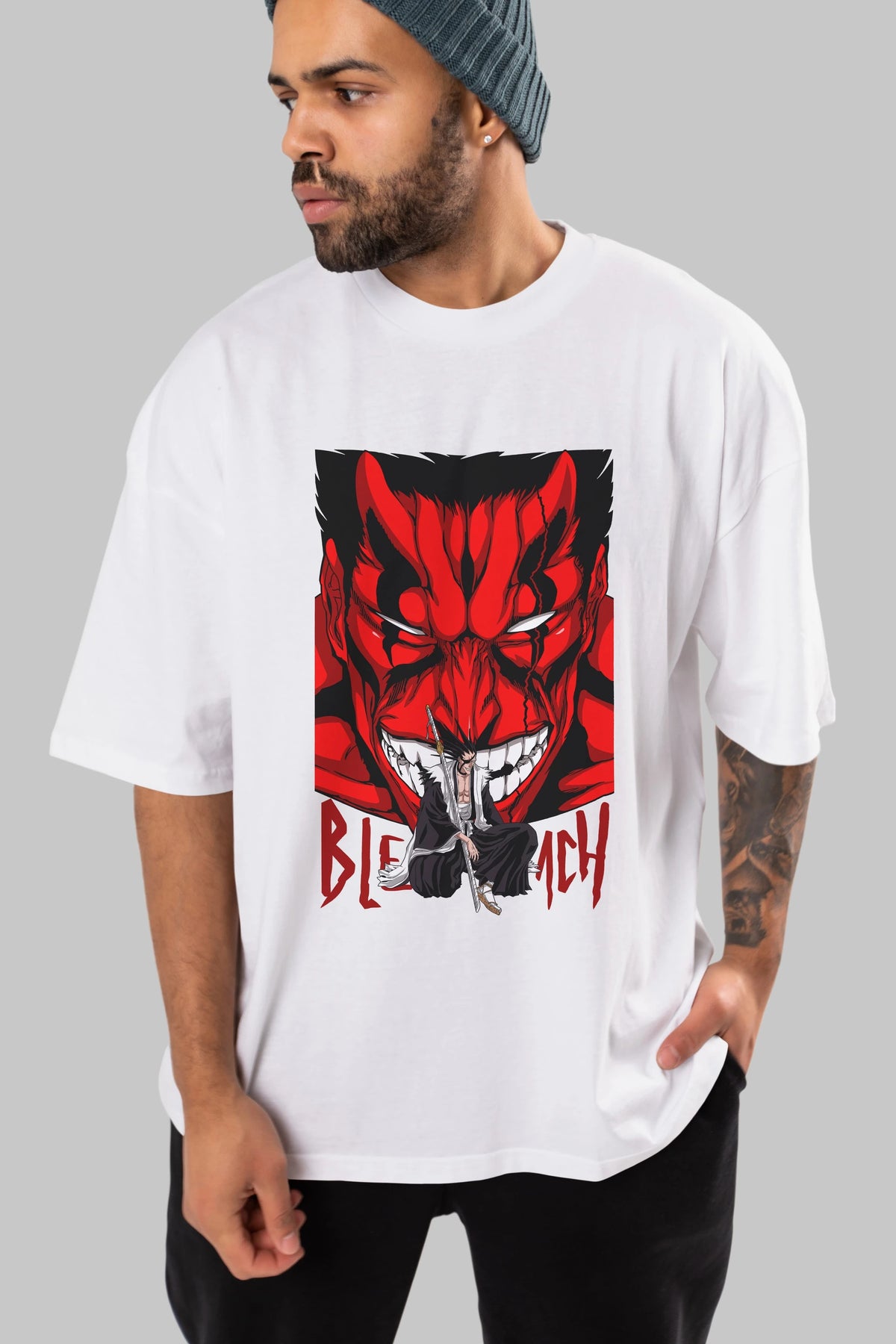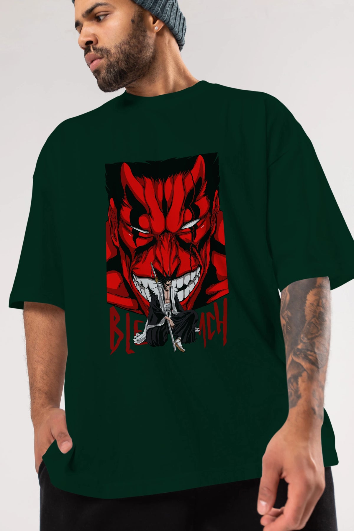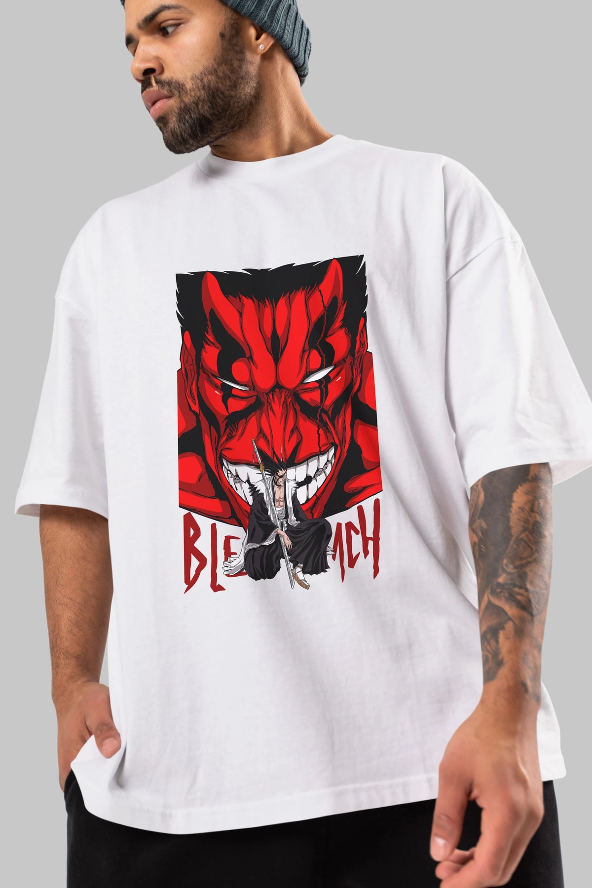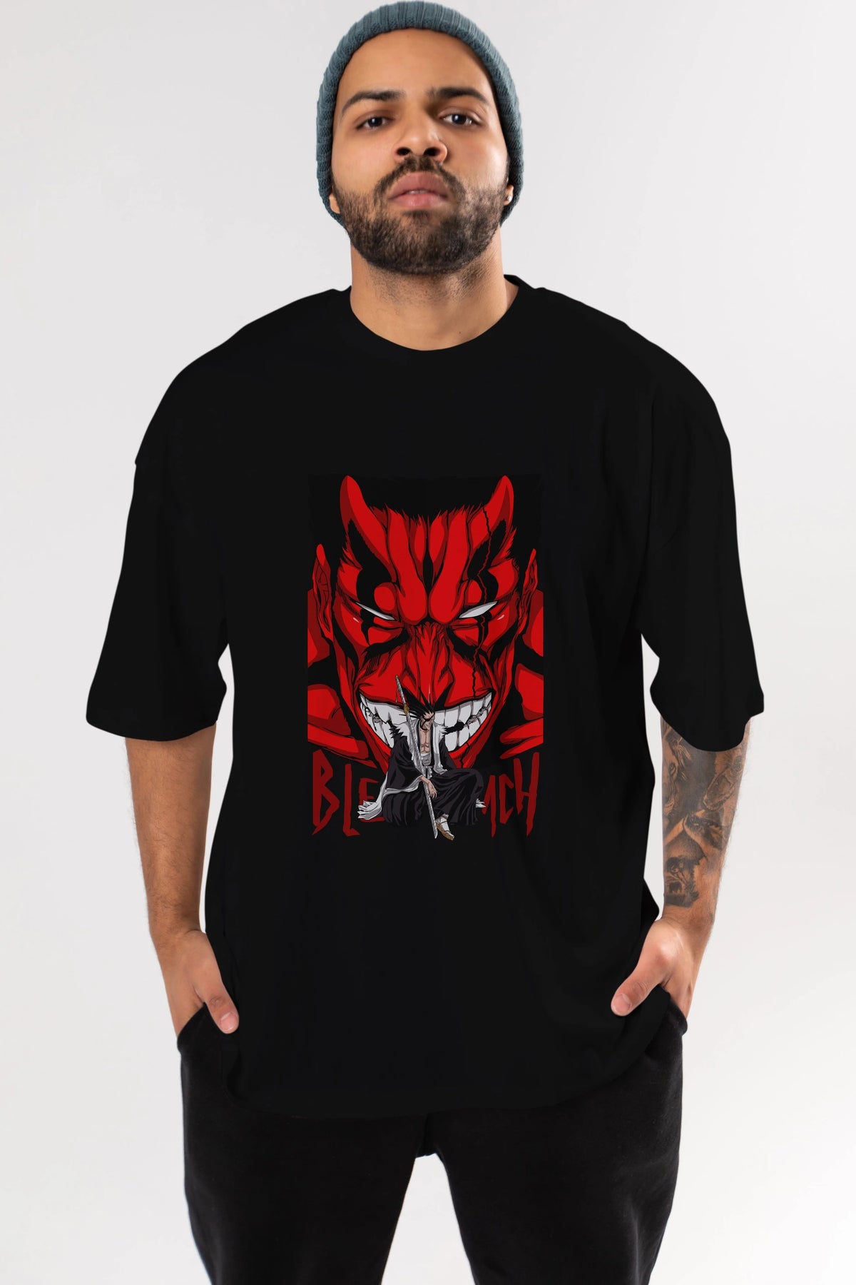 KENPACHI ZARAKI BLEACH Anime Ön Baskılı Oversize t-shirt %100 pamuk Erkek Kadın Unisex