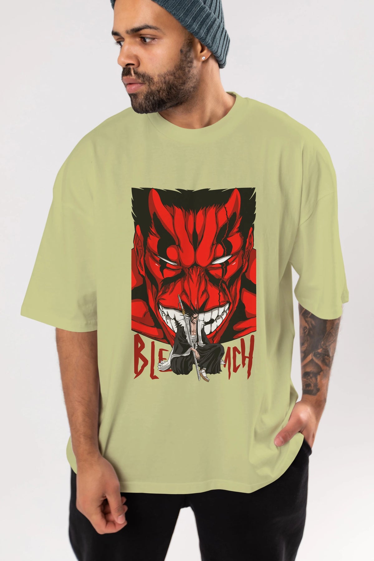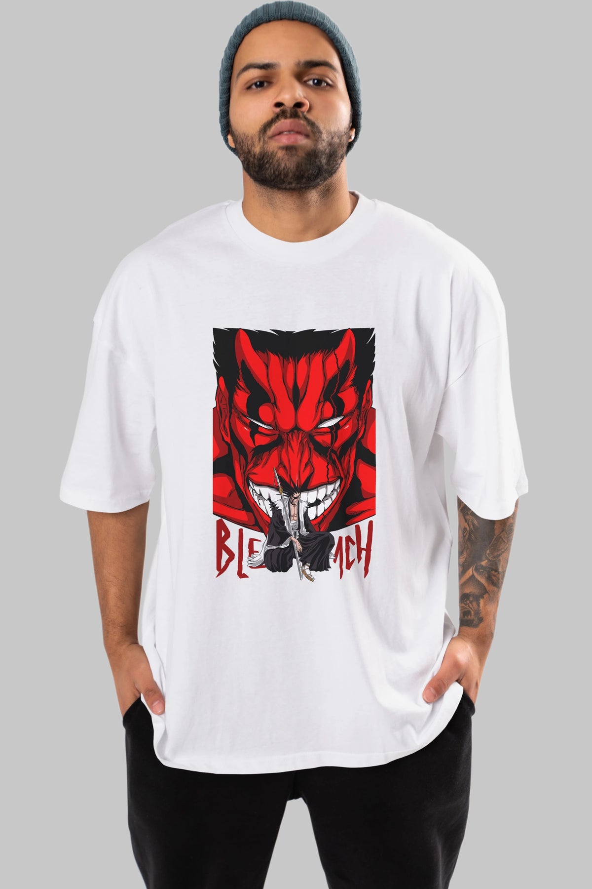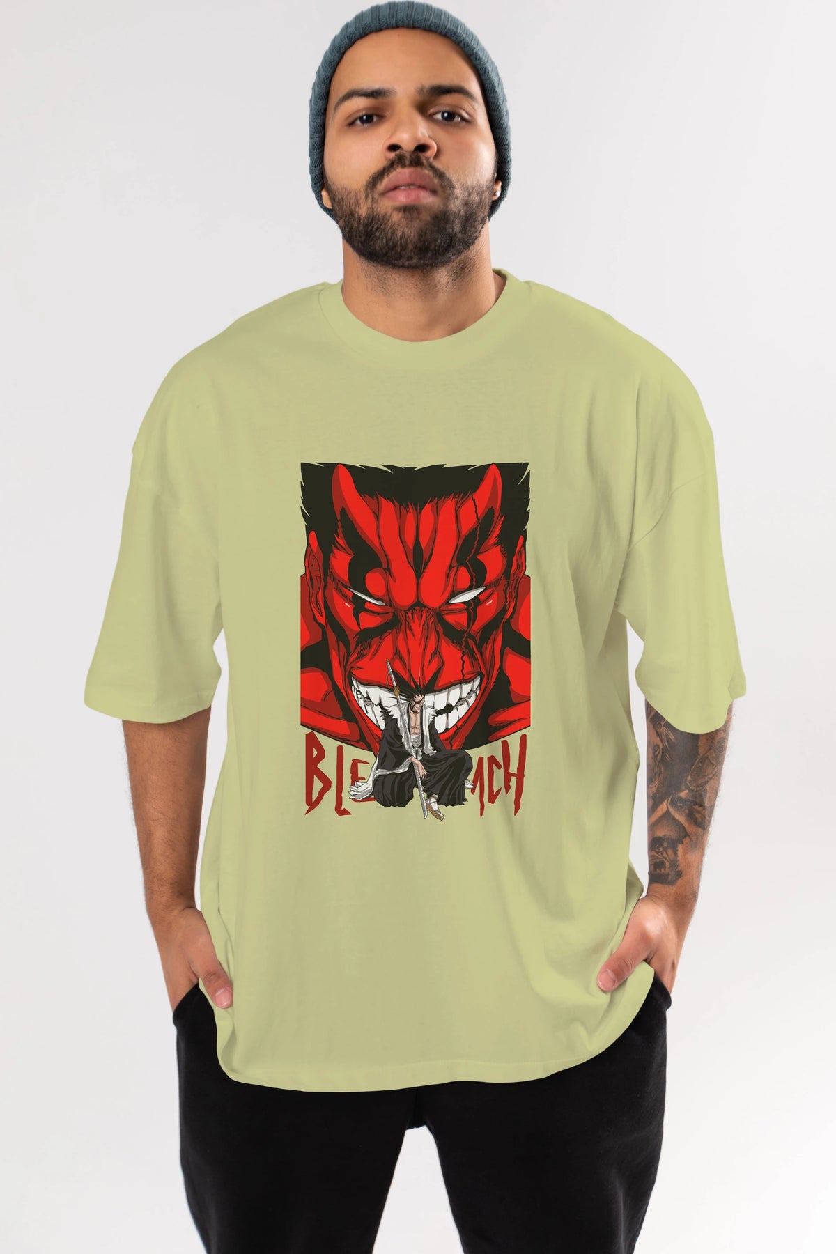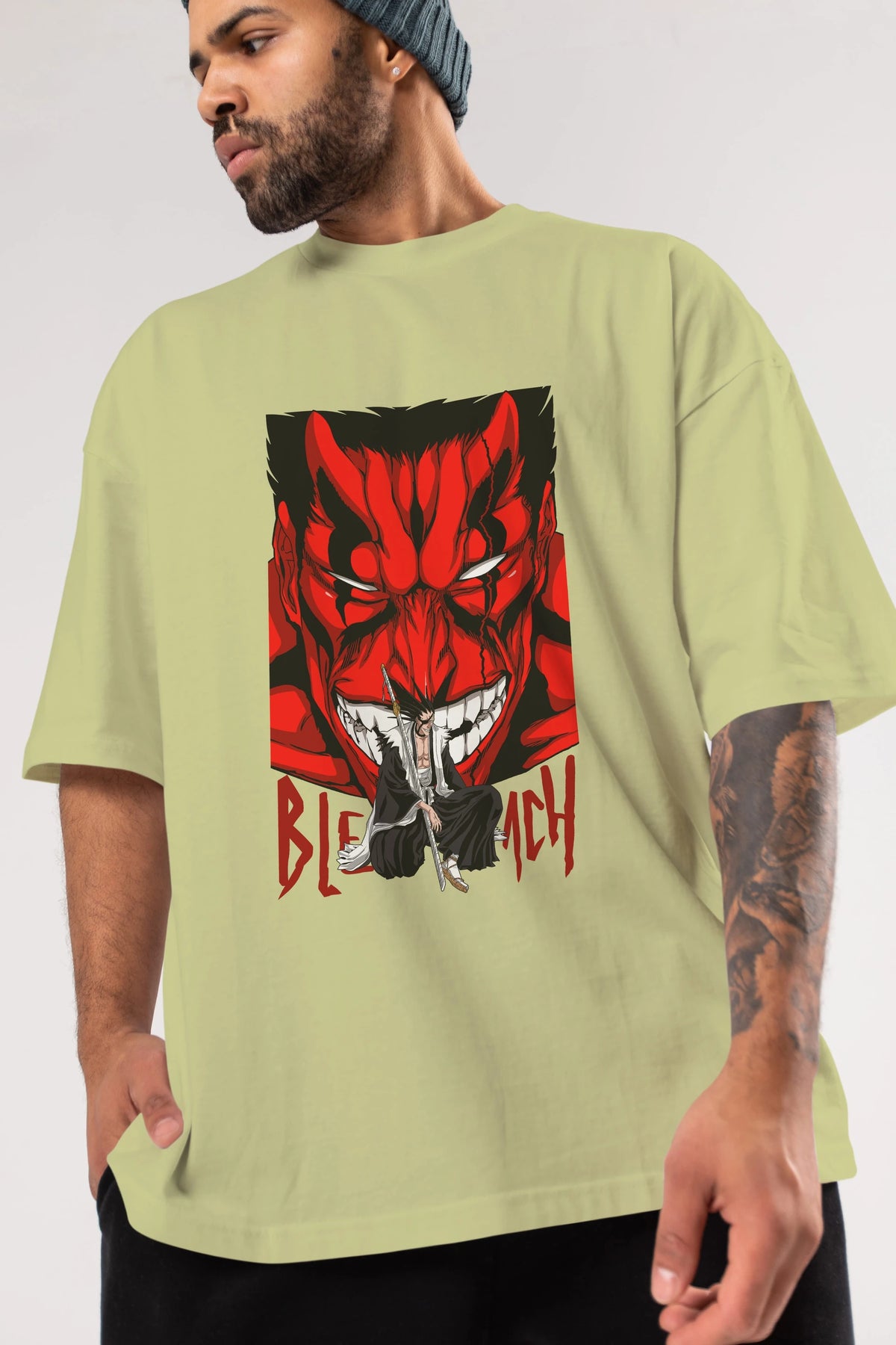 KENPACHI ZARAKI BLEACH Anime Ön Baskılı Oversize t-shirt %100 pamuk Erkek Kadın Unisex