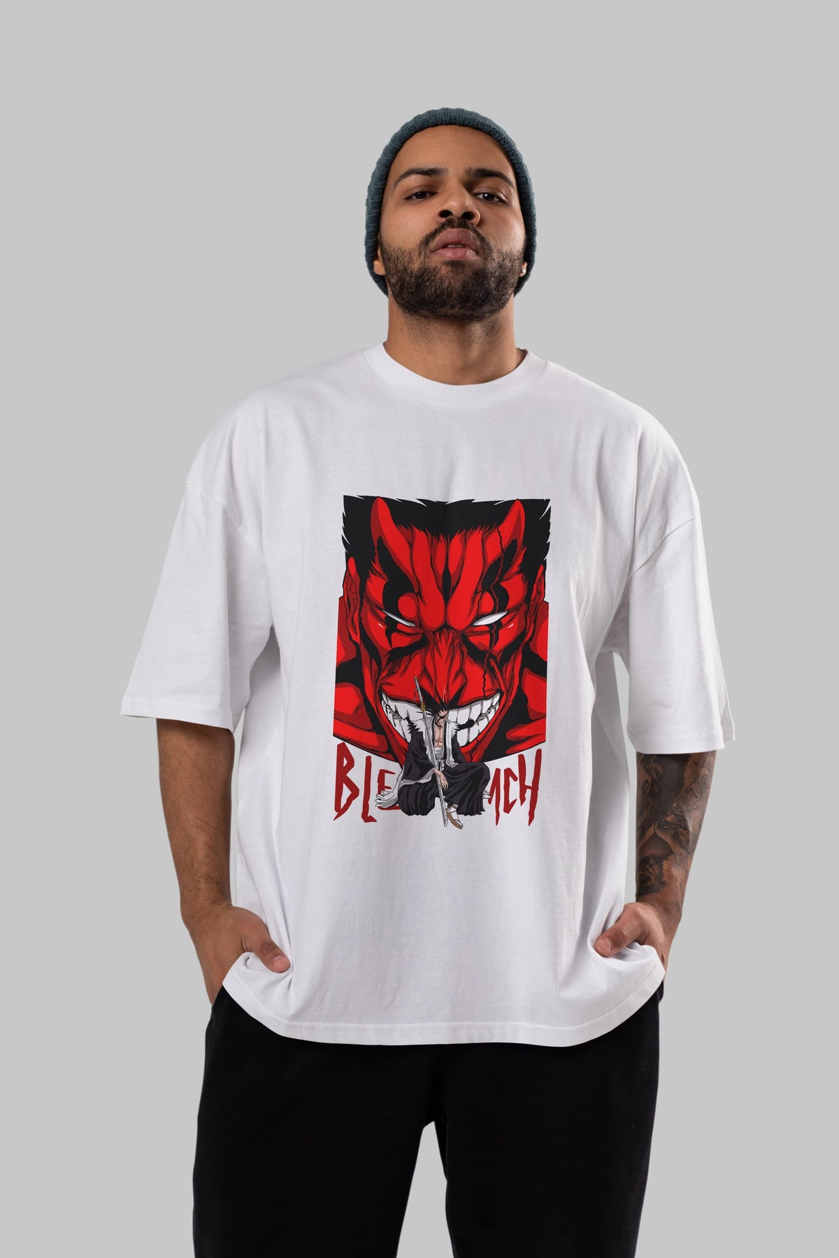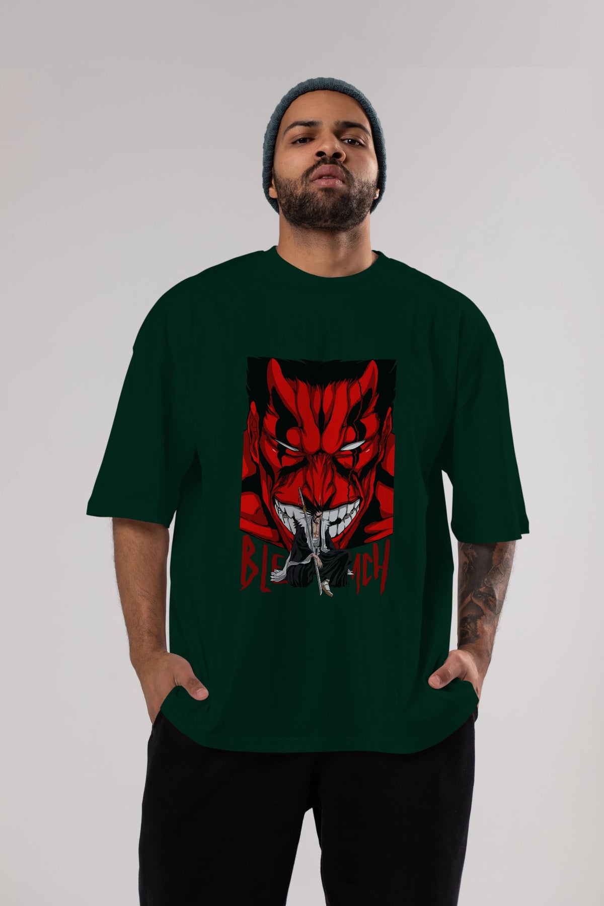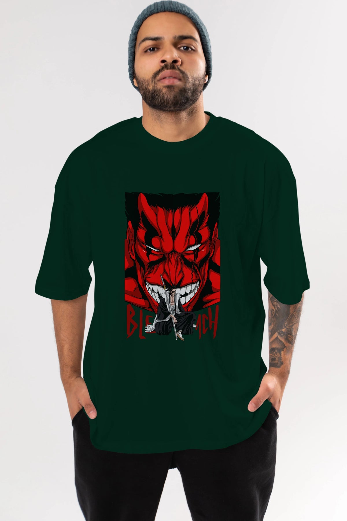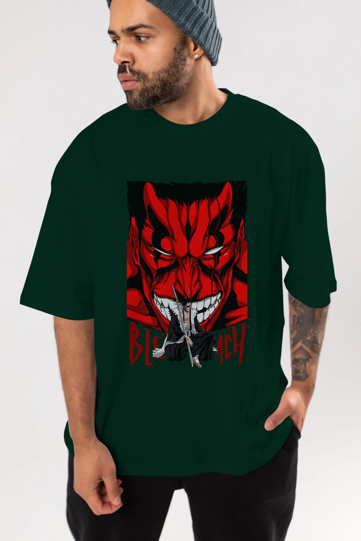 KENPACHI ZARAKI BLEACH Anime Ön Baskılı Oversize t-shirt %100 pamuk Erkek Kadın Unisex
