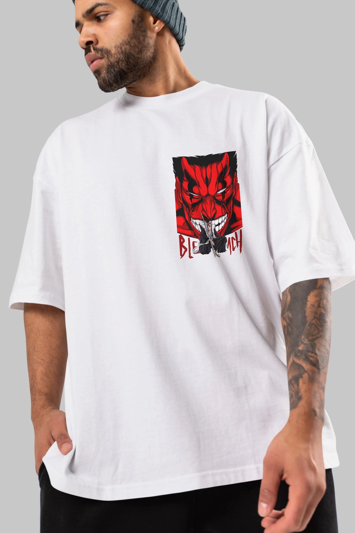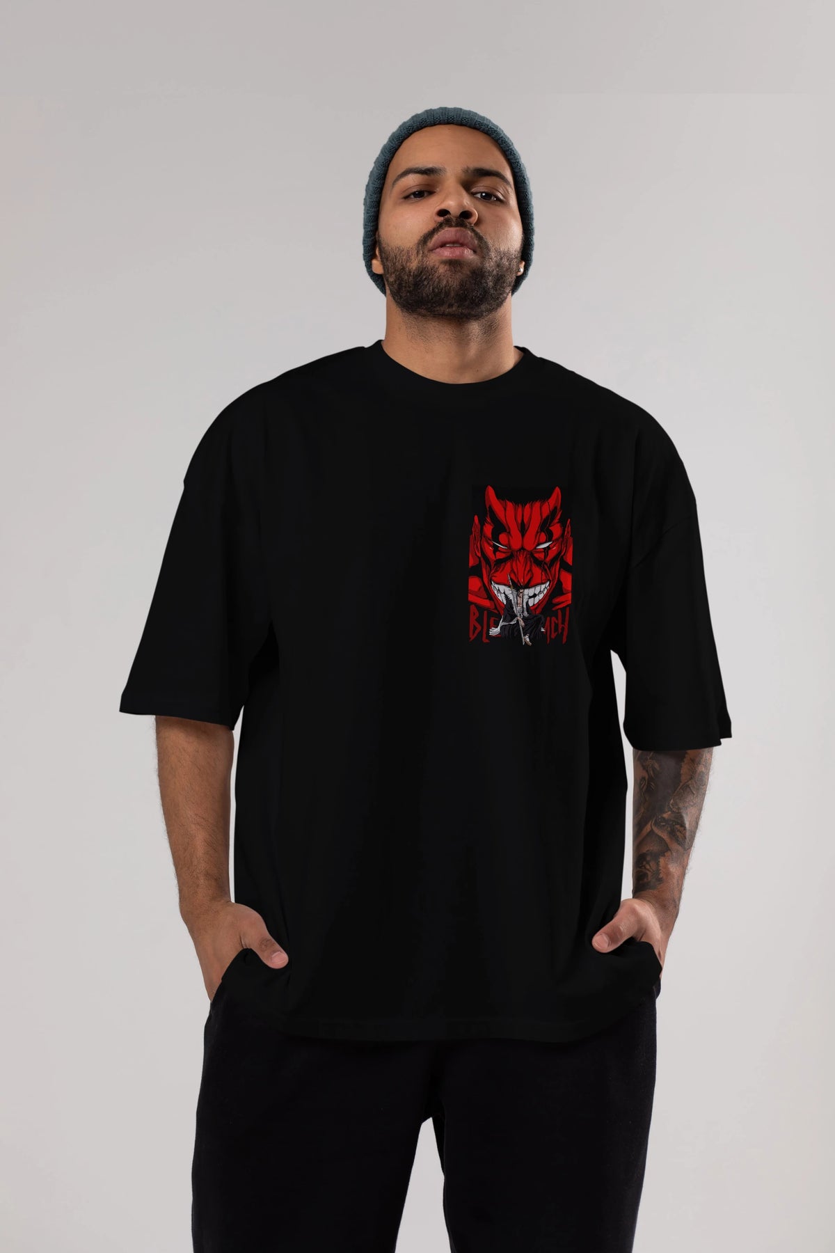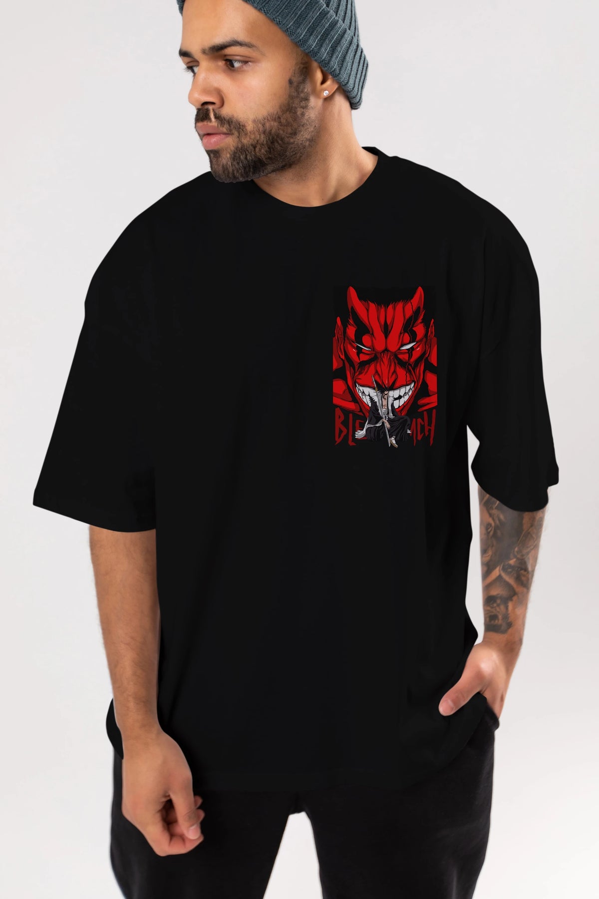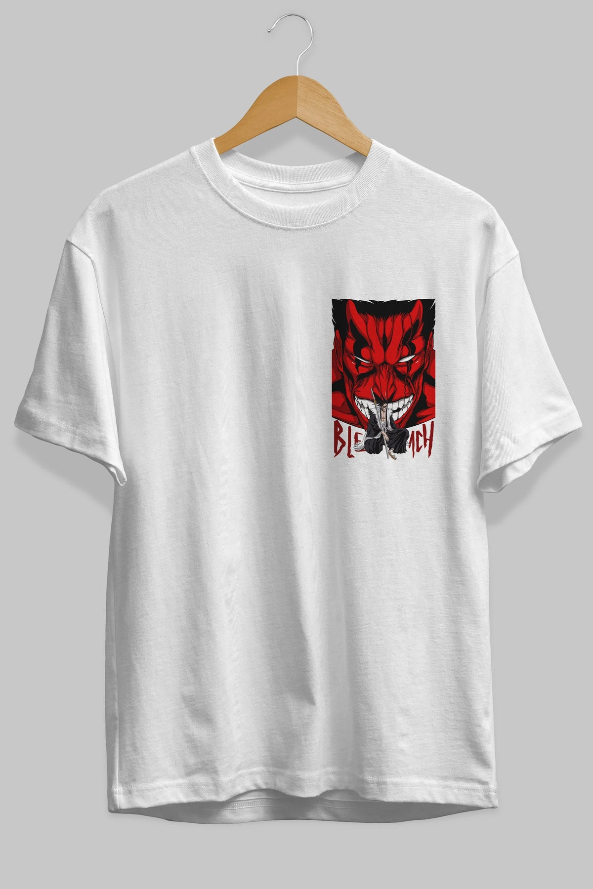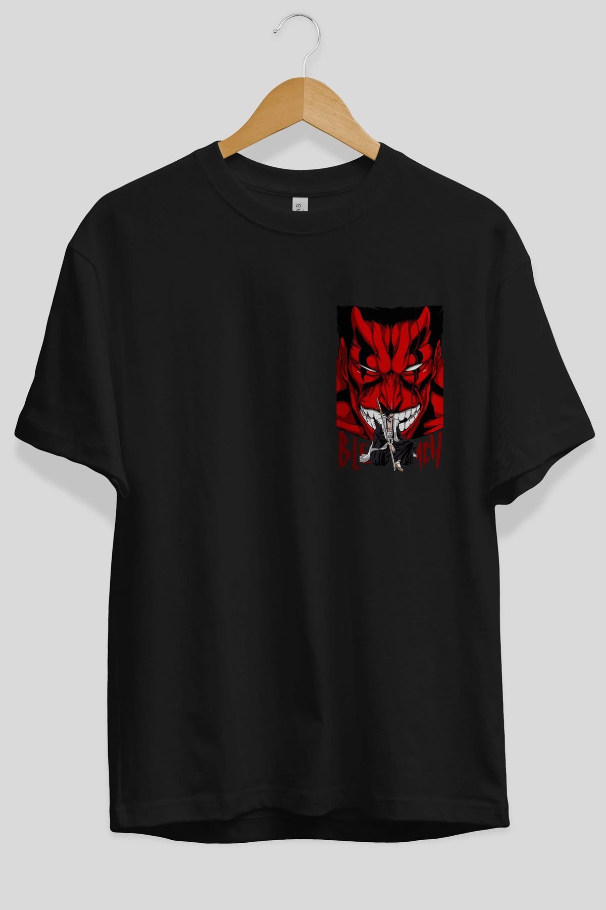 KENPACHI ZARAKI BLEACH Ön Sol Baskılı Oversize t-shirt Erkek Kadın Unisex %100 Pamuk Bisiklet Yaka tişort