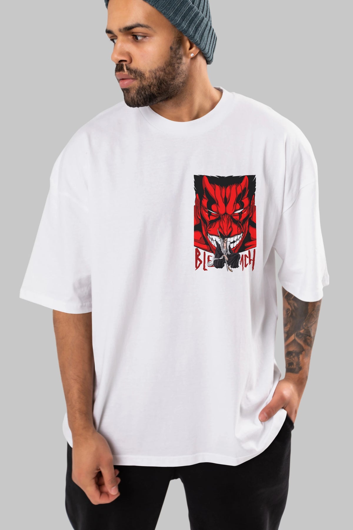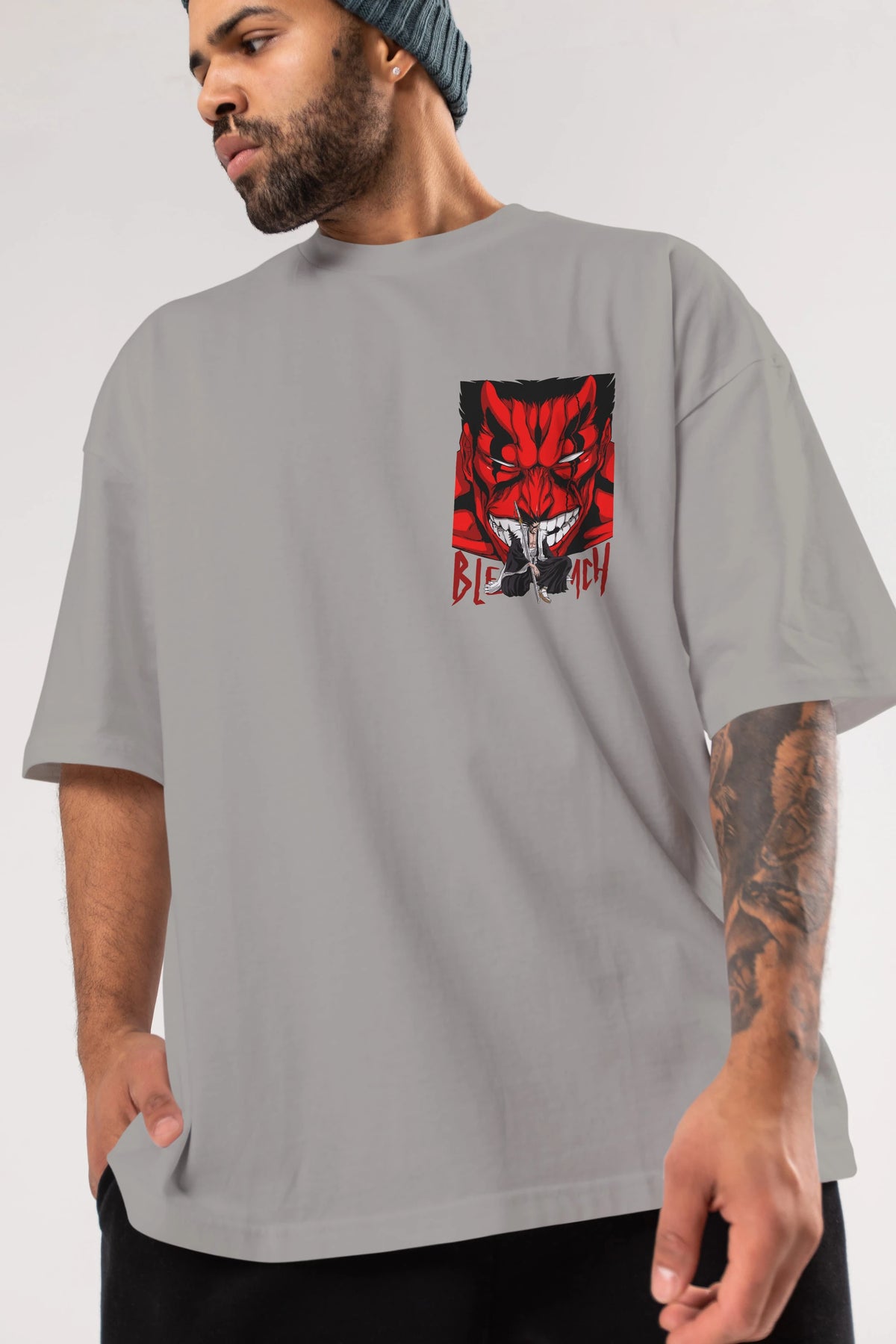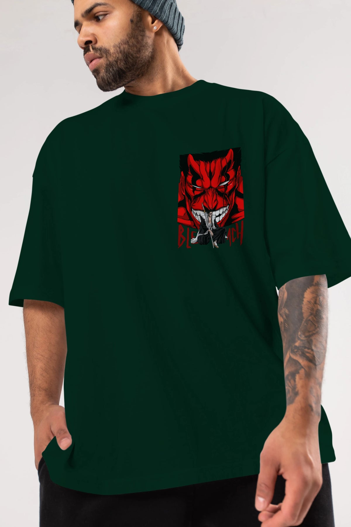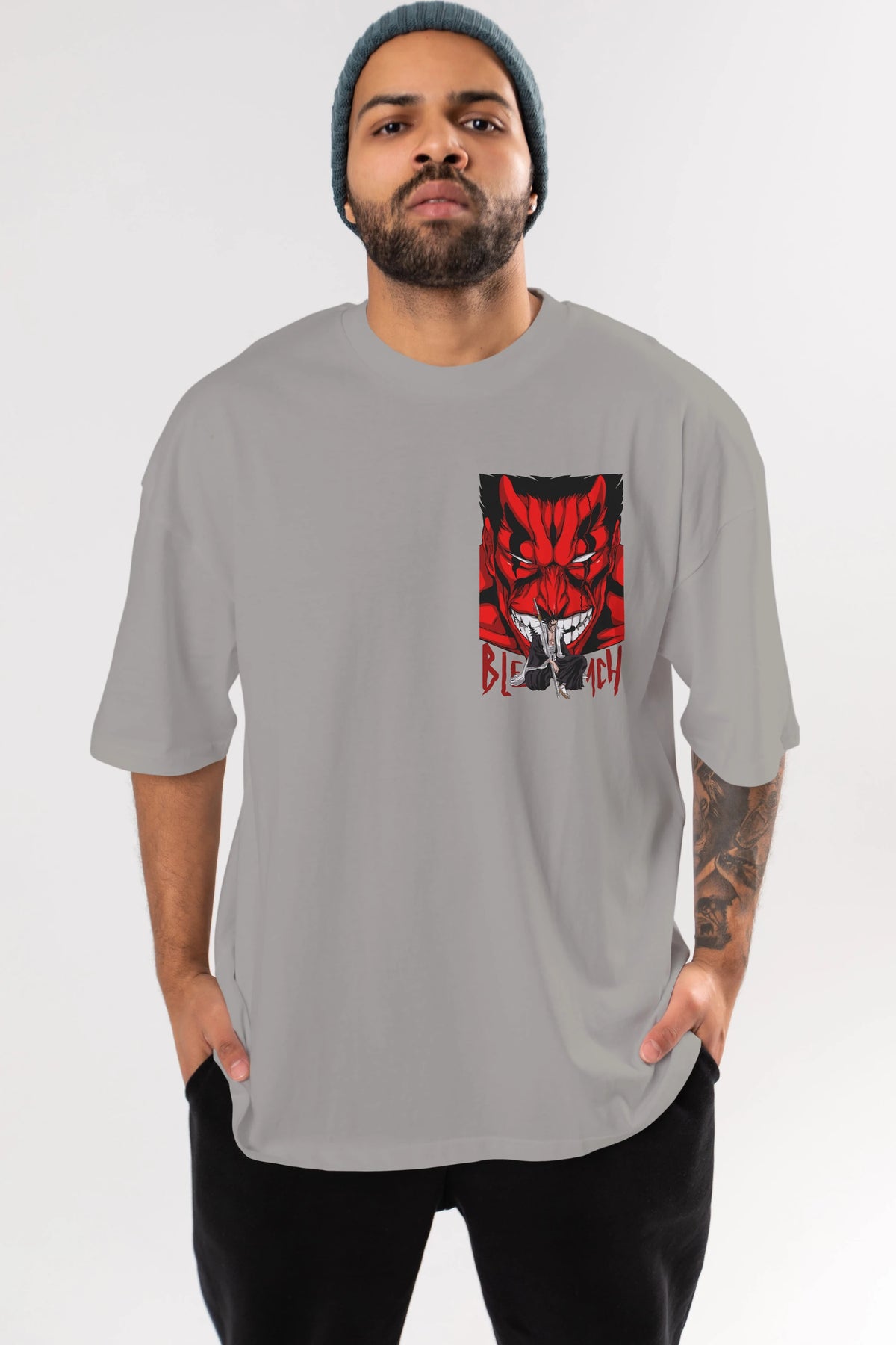 KENPACHI ZARAKI BLEACH Ön Sol Baskılı Oversize t-shirt Erkek Kadın Unisex %100 Pamuk Bisiklet Yaka tişort