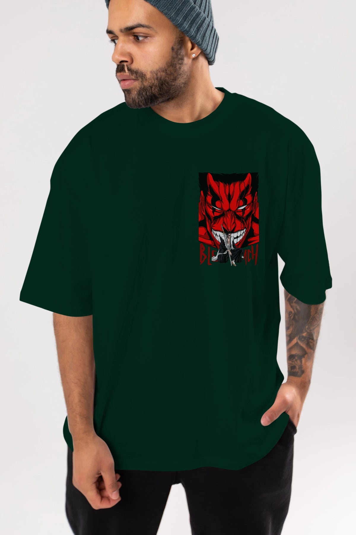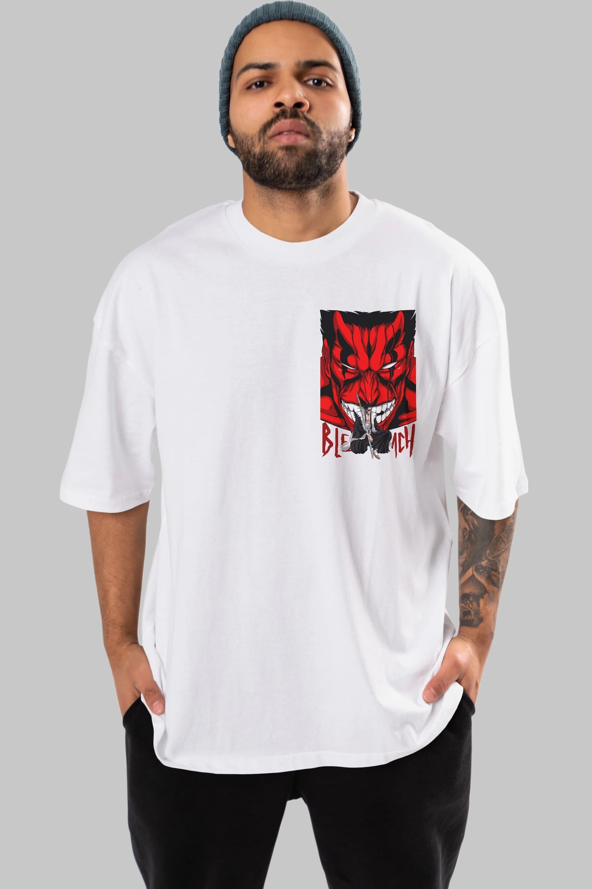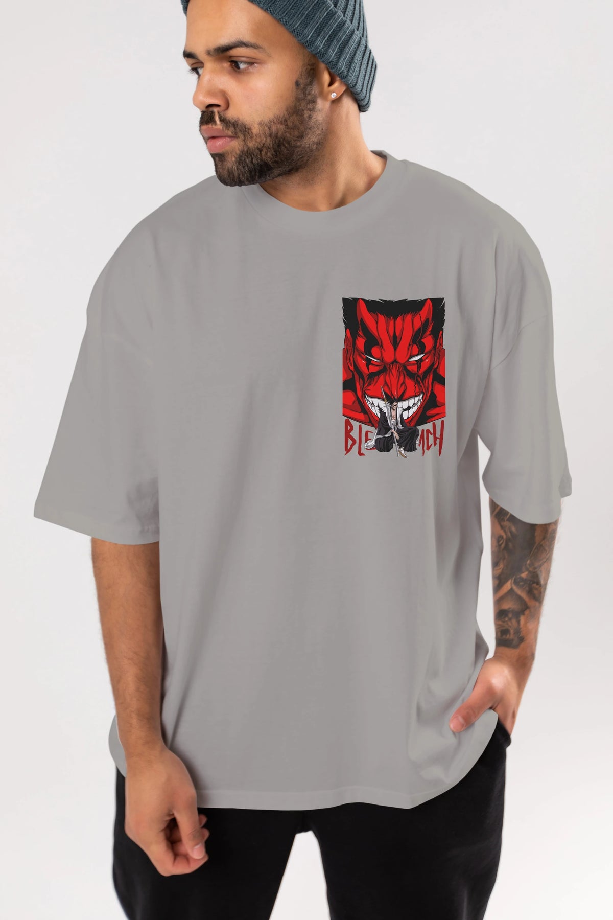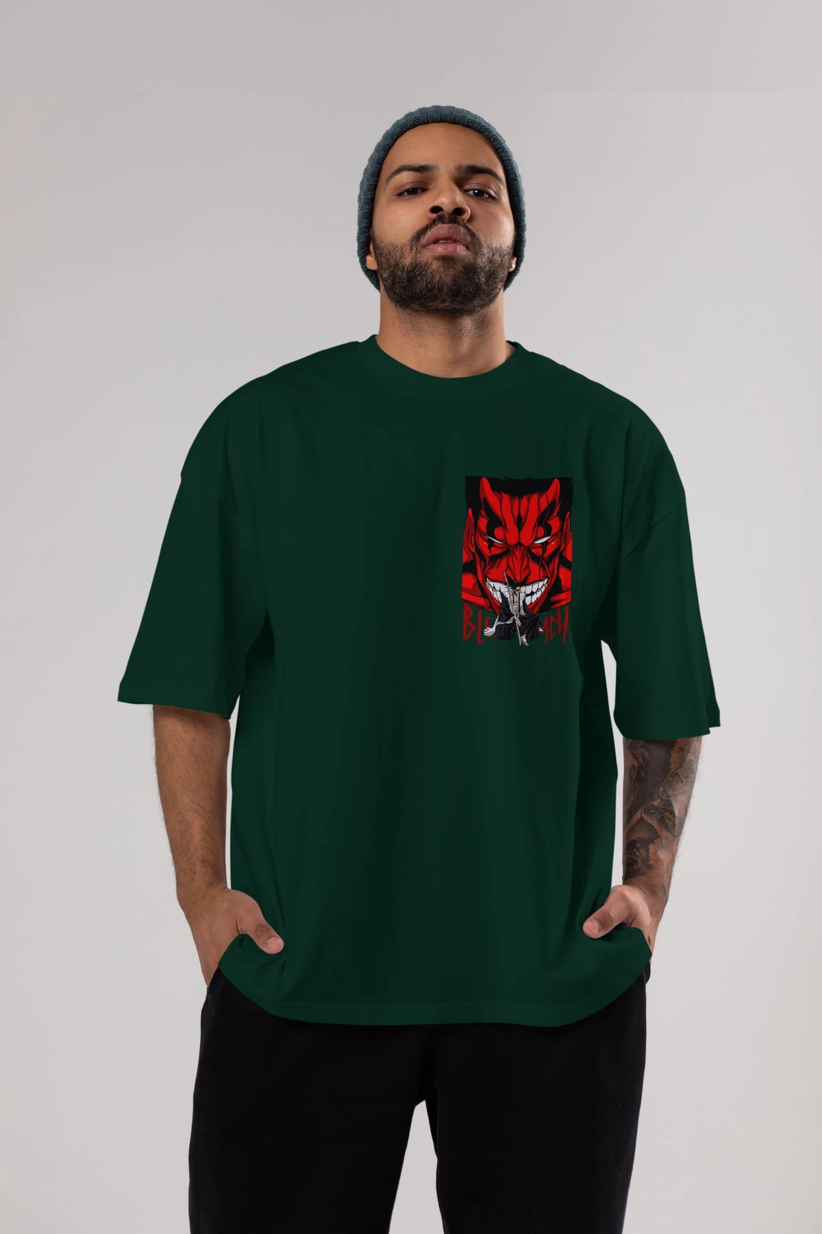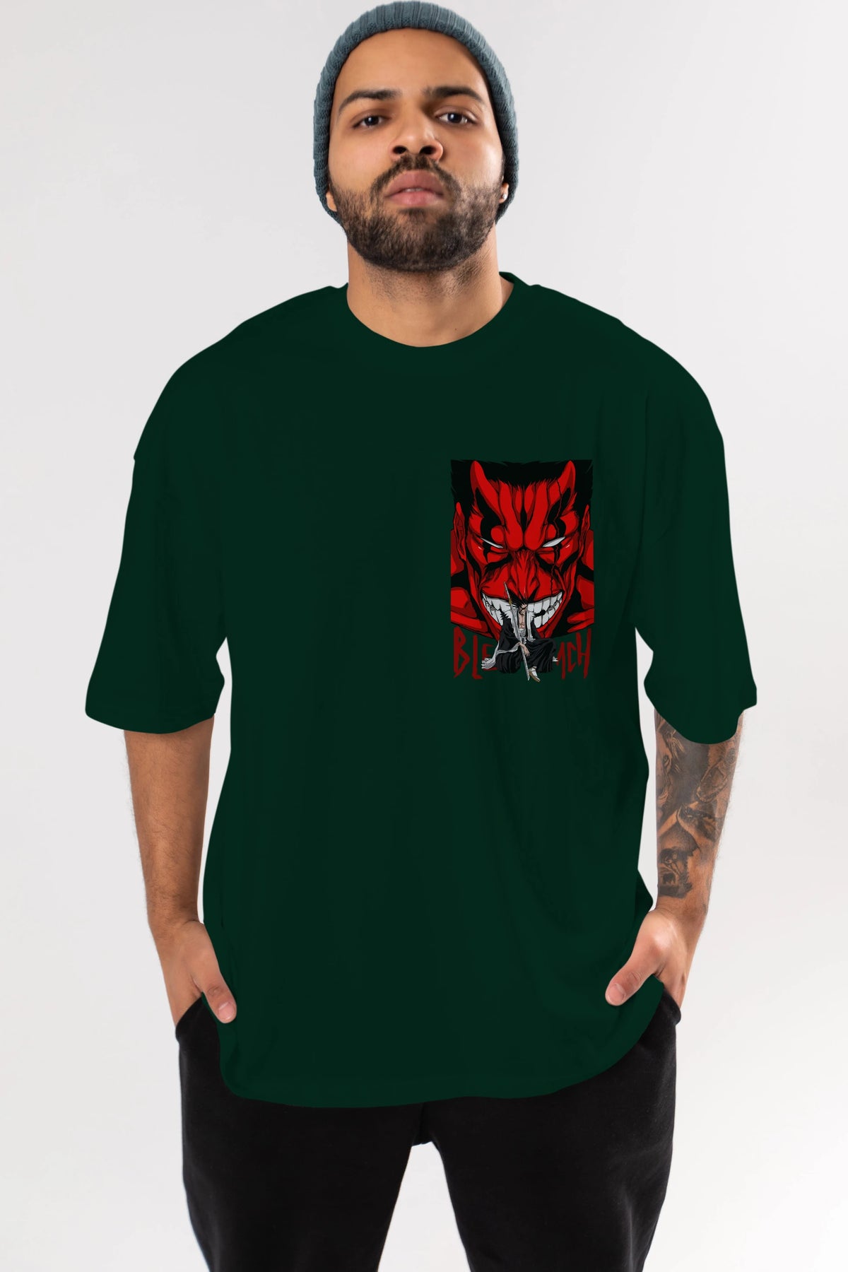 KENPACHI ZARAKI BLEACH Ön Sol Baskılı Oversize t-shirt Erkek Kadın Unisex %100 Pamuk Bisiklet Yaka tişort