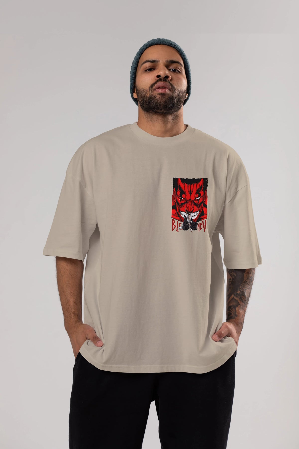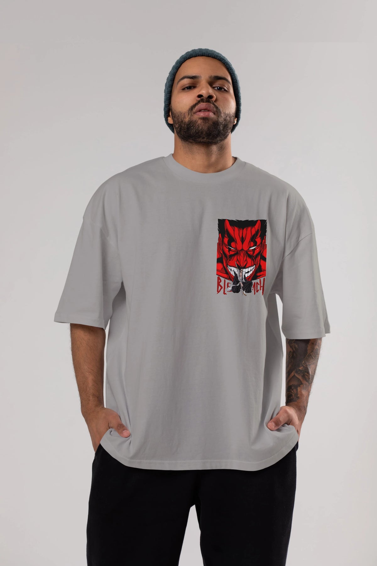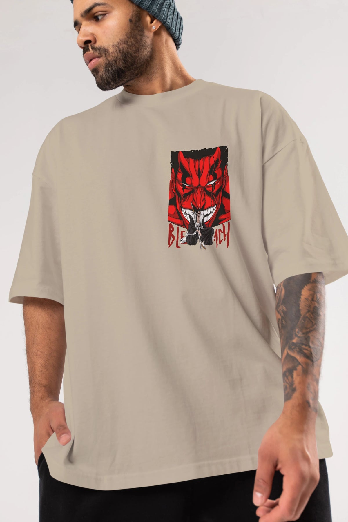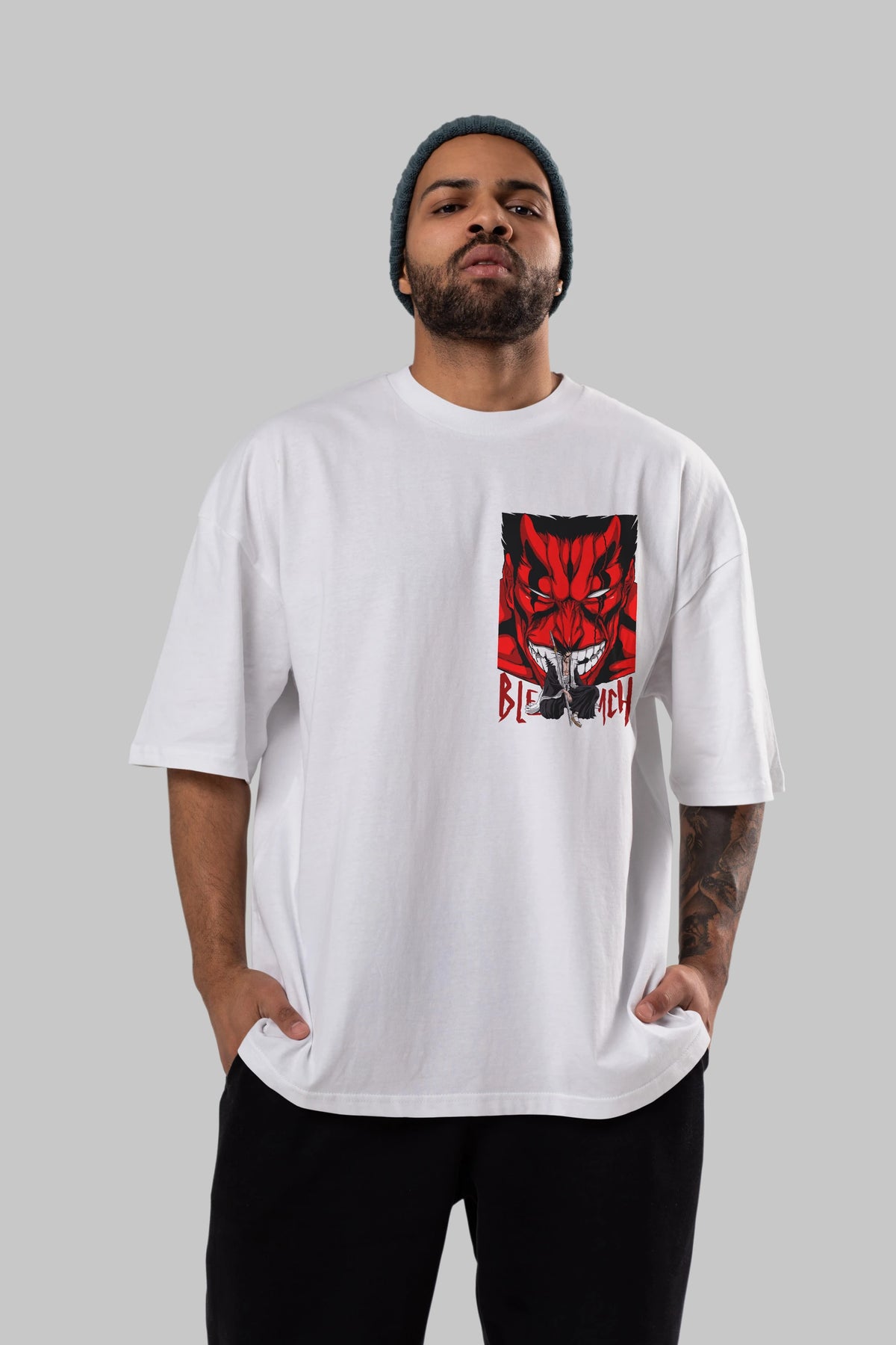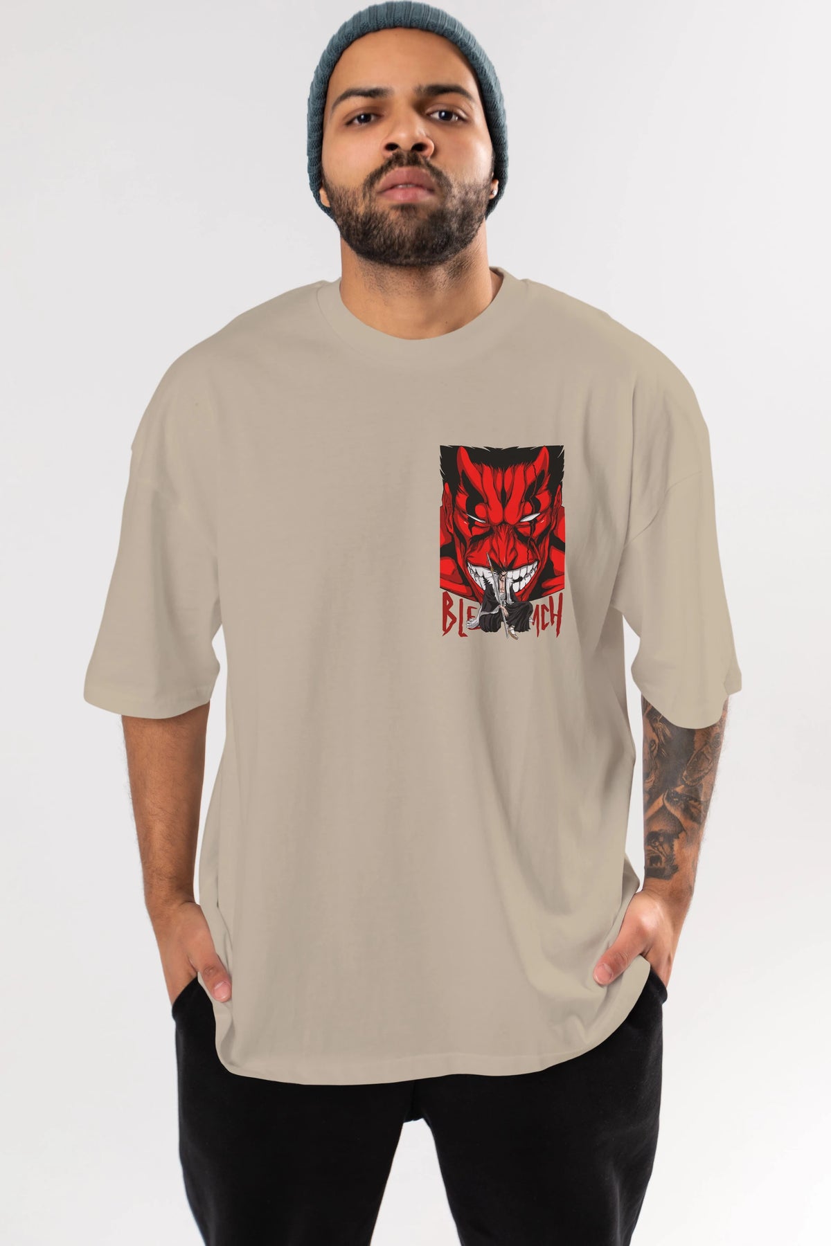 KENPACHI ZARAKI BLEACH Ön Sol Baskılı Oversize t-shirt Erkek Kadın Unisex %100 Pamuk Bisiklet Yaka tişort