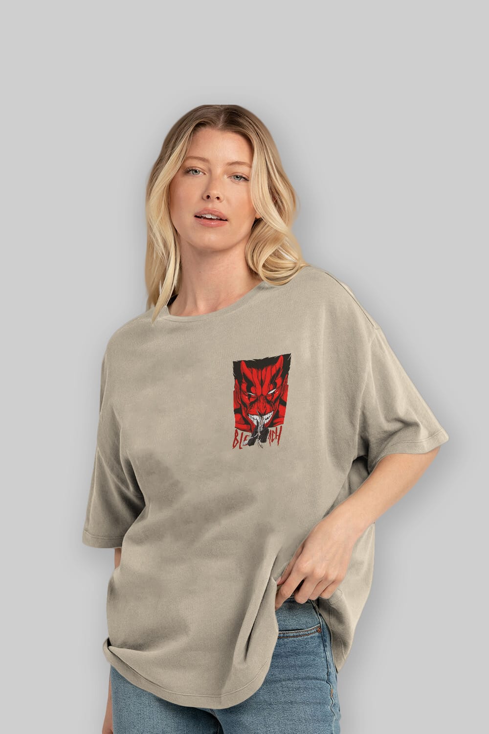 Hem erkekler hem de kadınlar için uygun, taze, modern bir baskıya sahip baskılı oversize t-shirt.