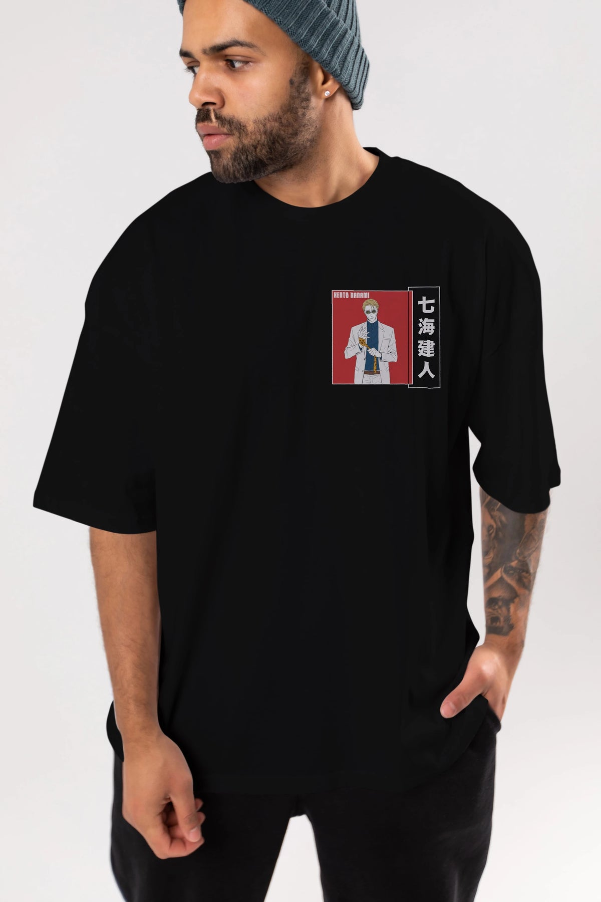 Kento Nanami 1 Ön Sol Baskılı Oversize t-shirt Erkek Kadın Unisex %100 Pamuk Bisiklet Yaka tişort