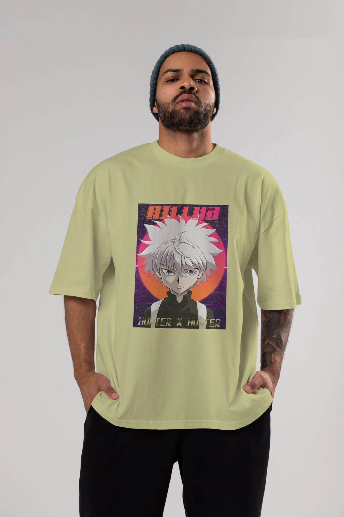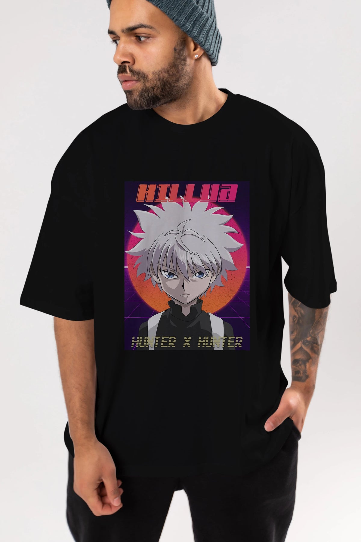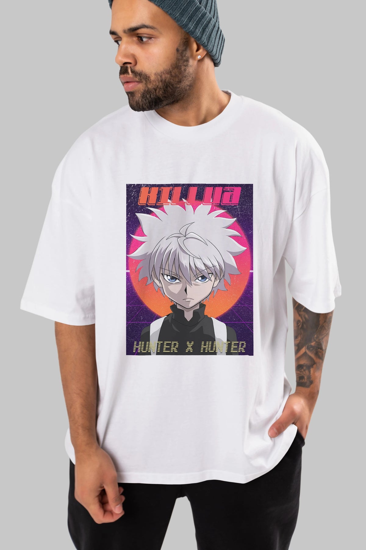 Killua Zoldyck 12 1 Anime Ön Baskılı Oversize t-shirt %100 pamuk Erkek Kadın Unisex