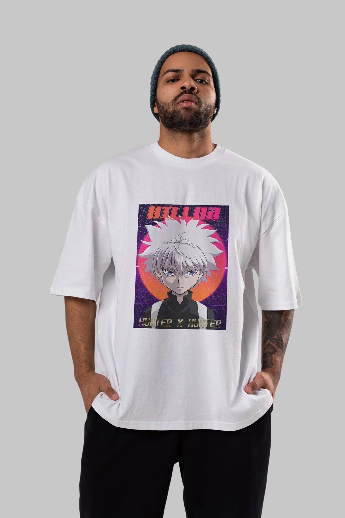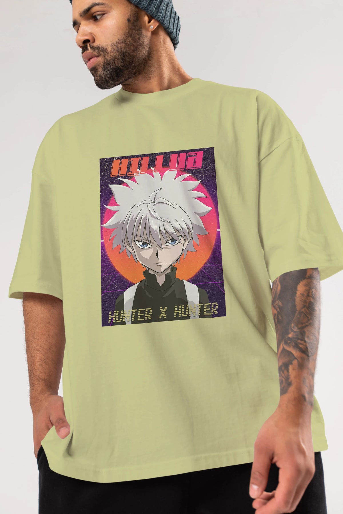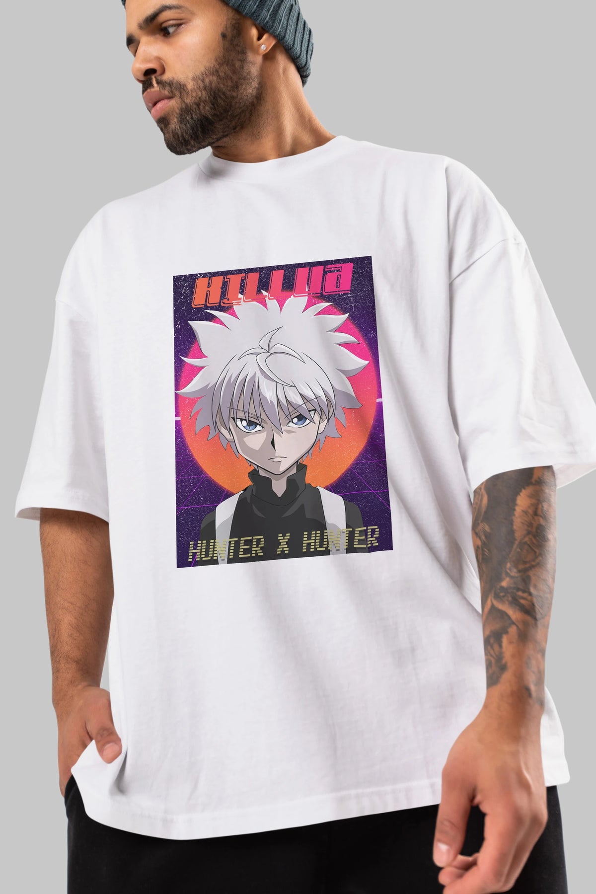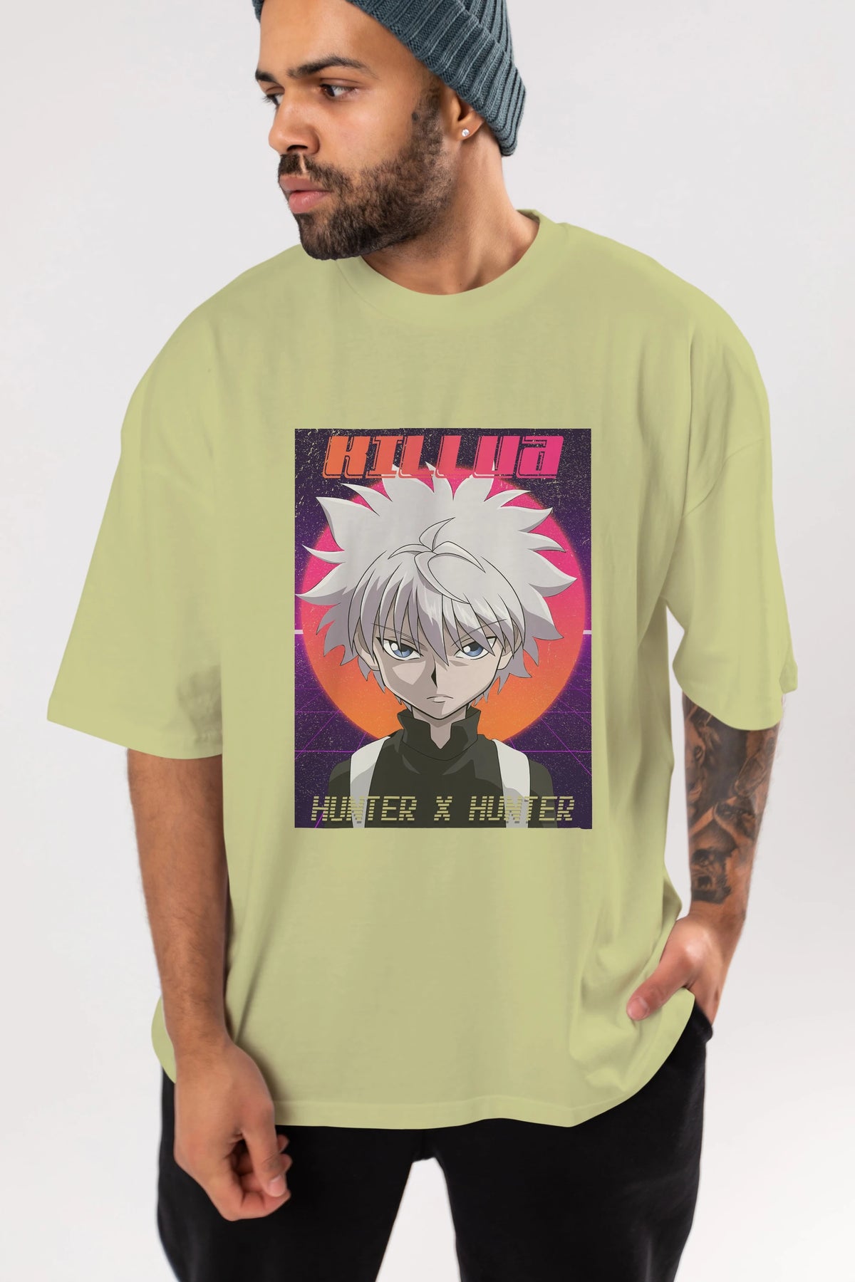 Killua Zoldyck 12 1 Anime Ön Baskılı Oversize t-shirt %100 pamuk Erkek Kadın Unisex