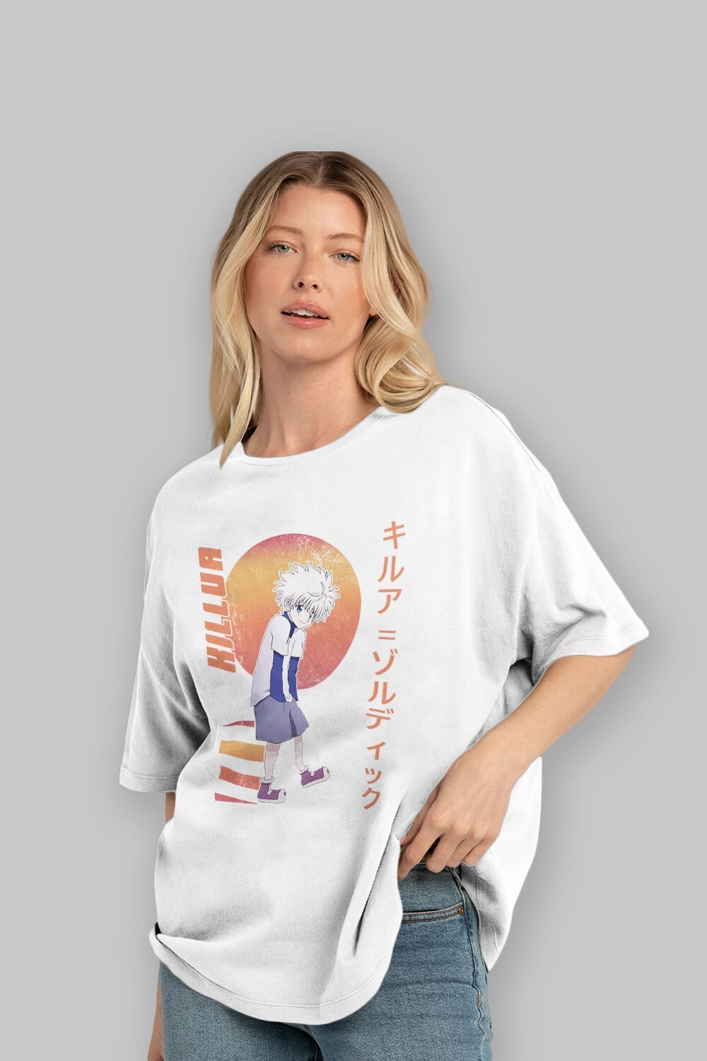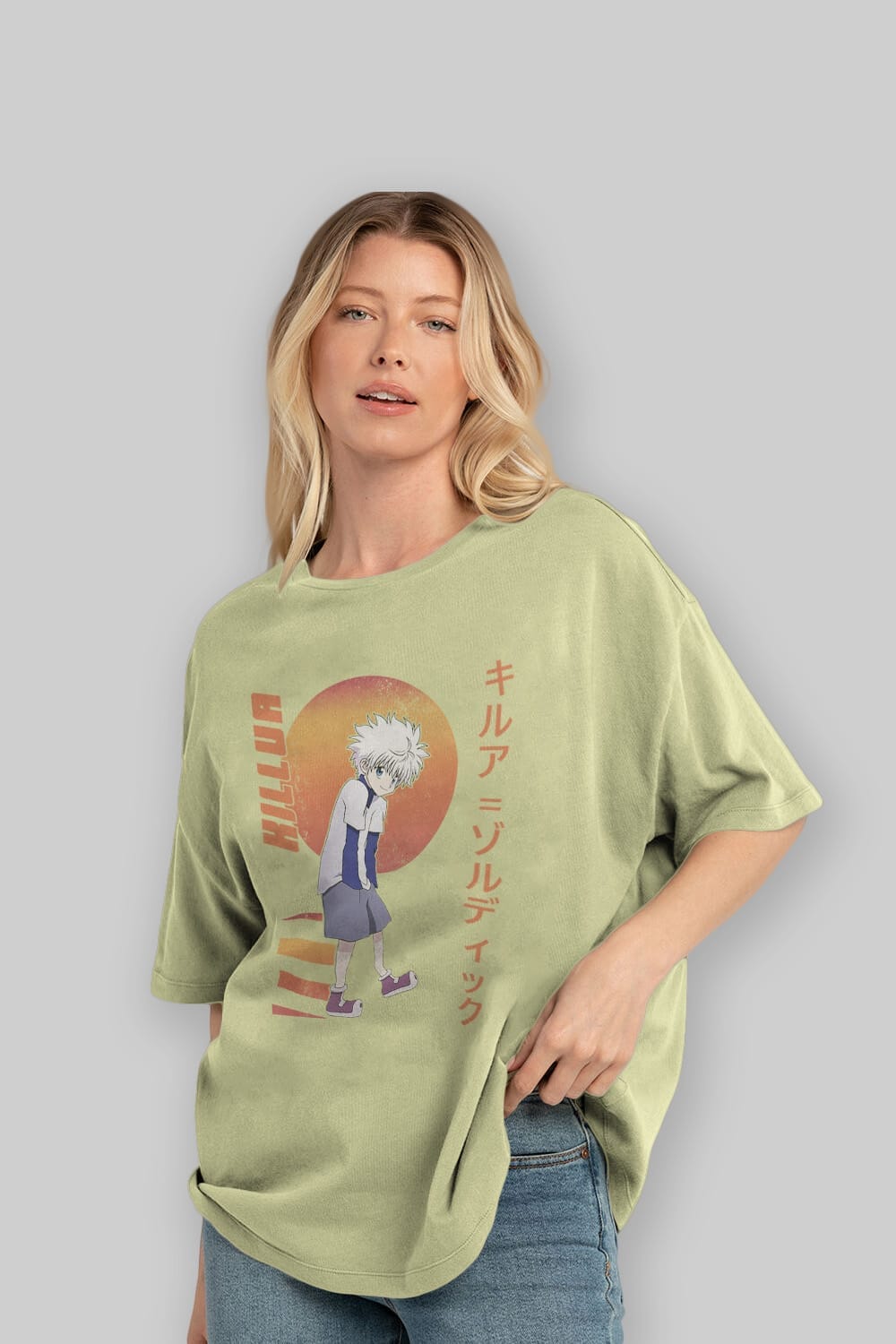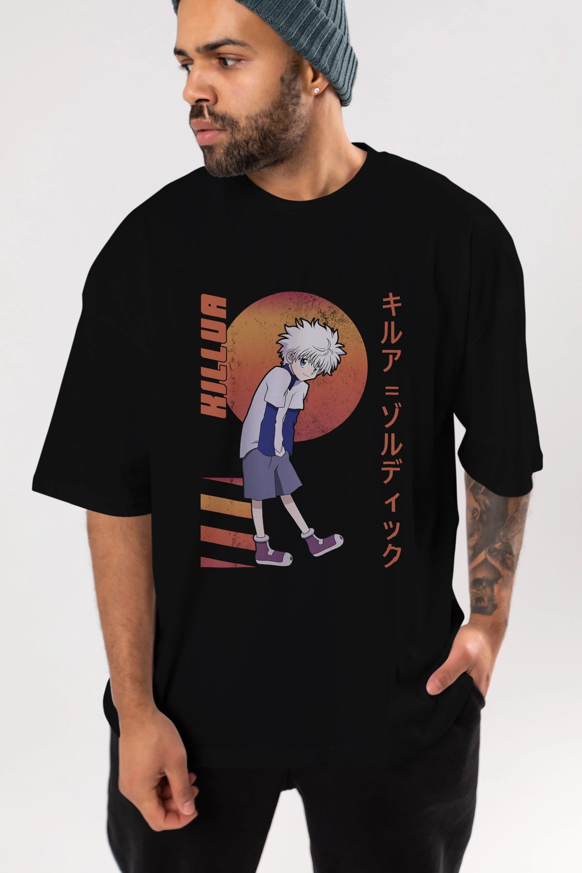 Killua Zoldyck 5 2 Anime Ön Baskılı Oversize t-shirt %100 pamuk Erkek Kadın Unisex