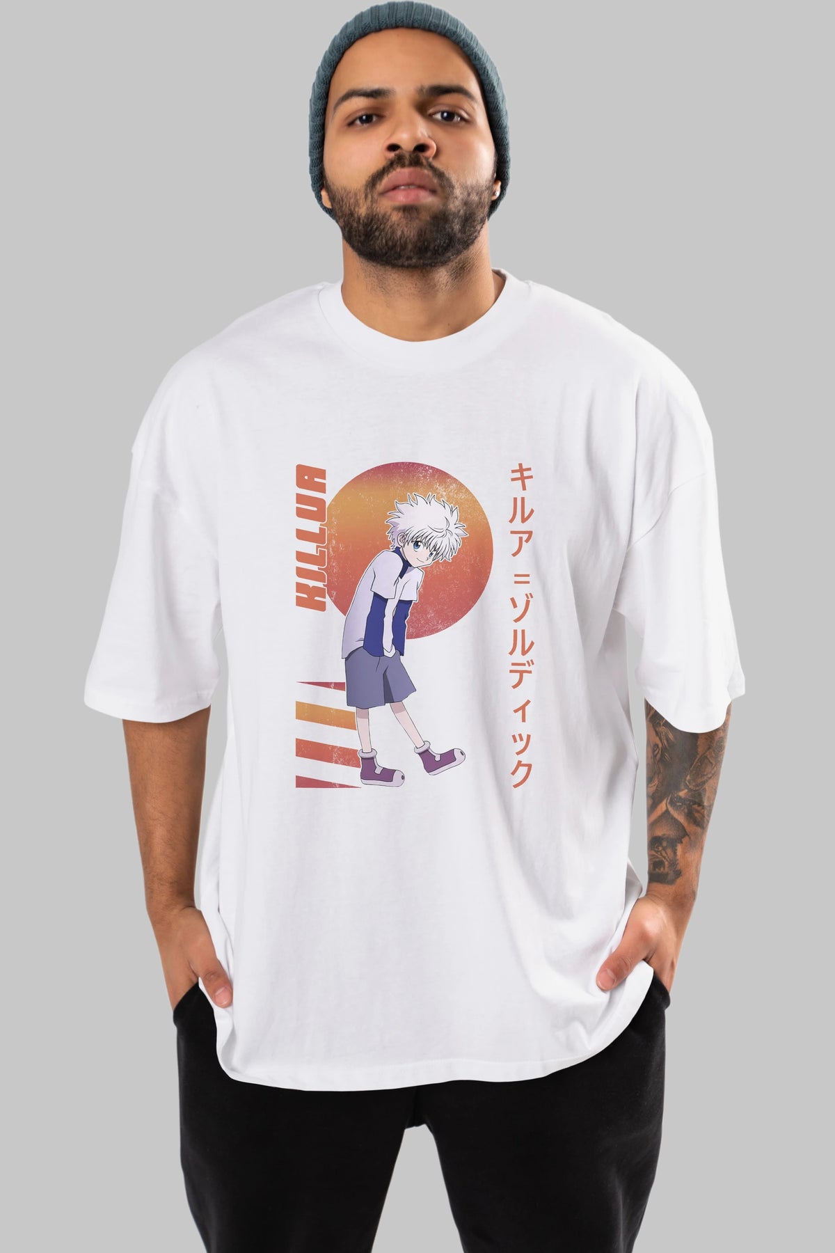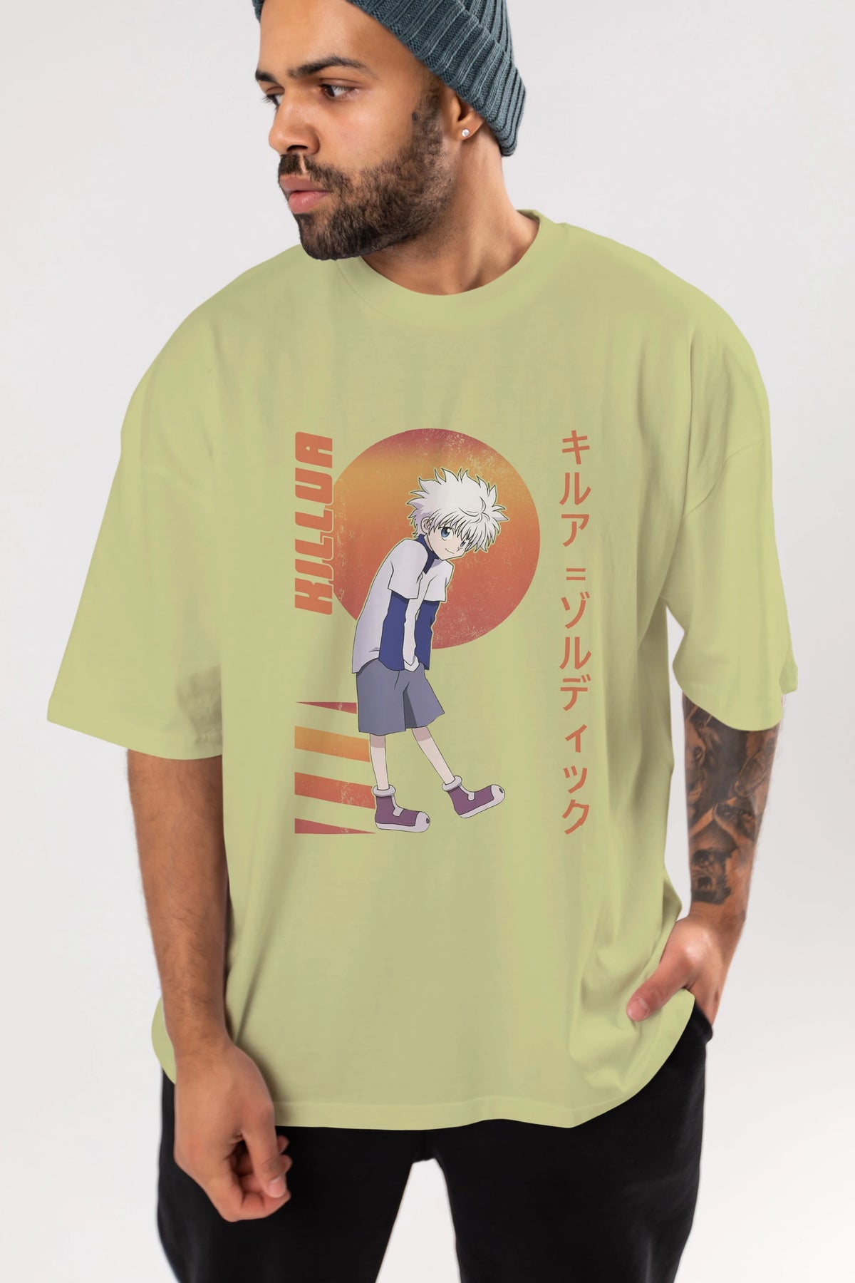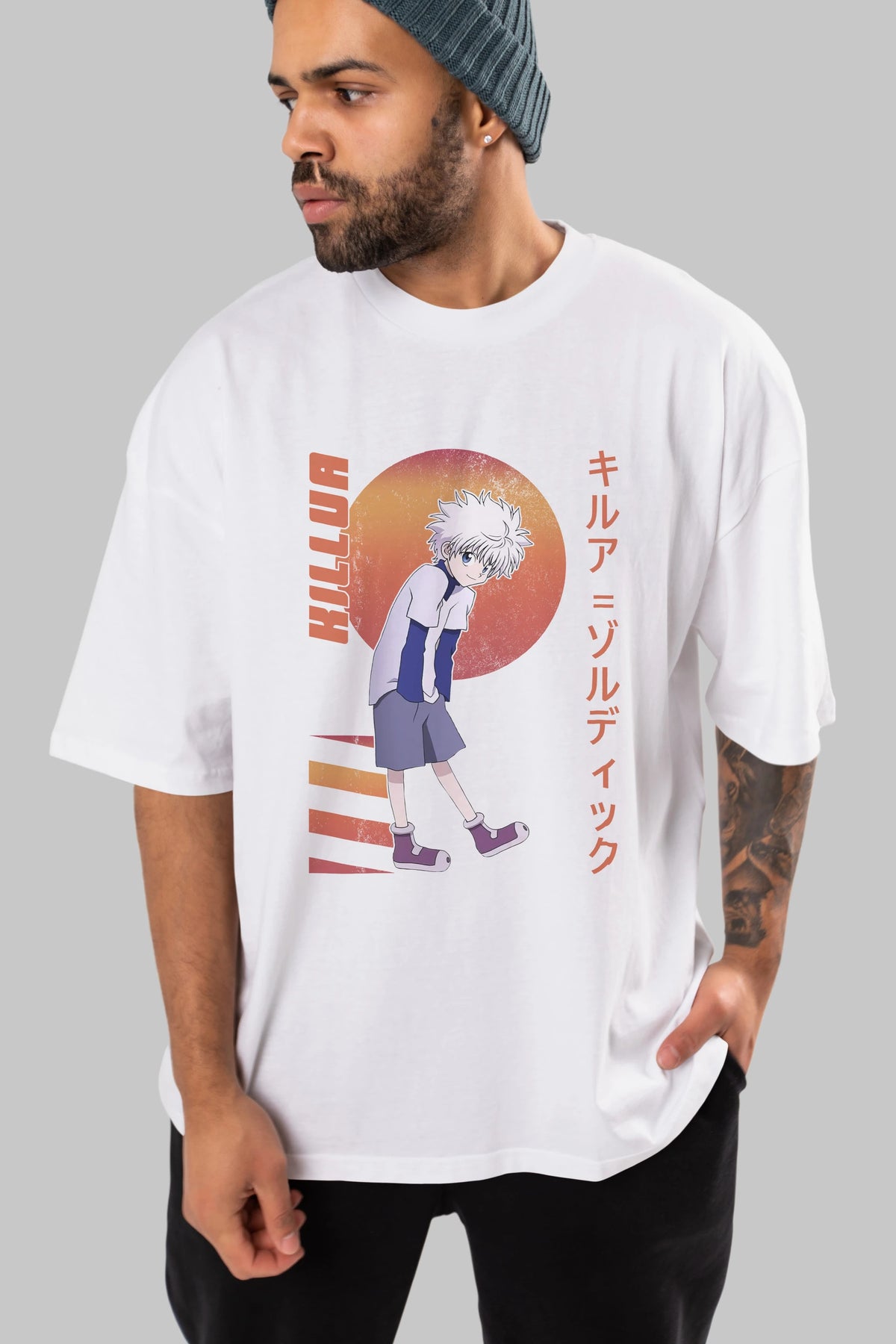 Killua Zoldyck 5 2 Anime Ön Baskılı Oversize t-shirt %100 pamuk Erkek Kadın Unisex