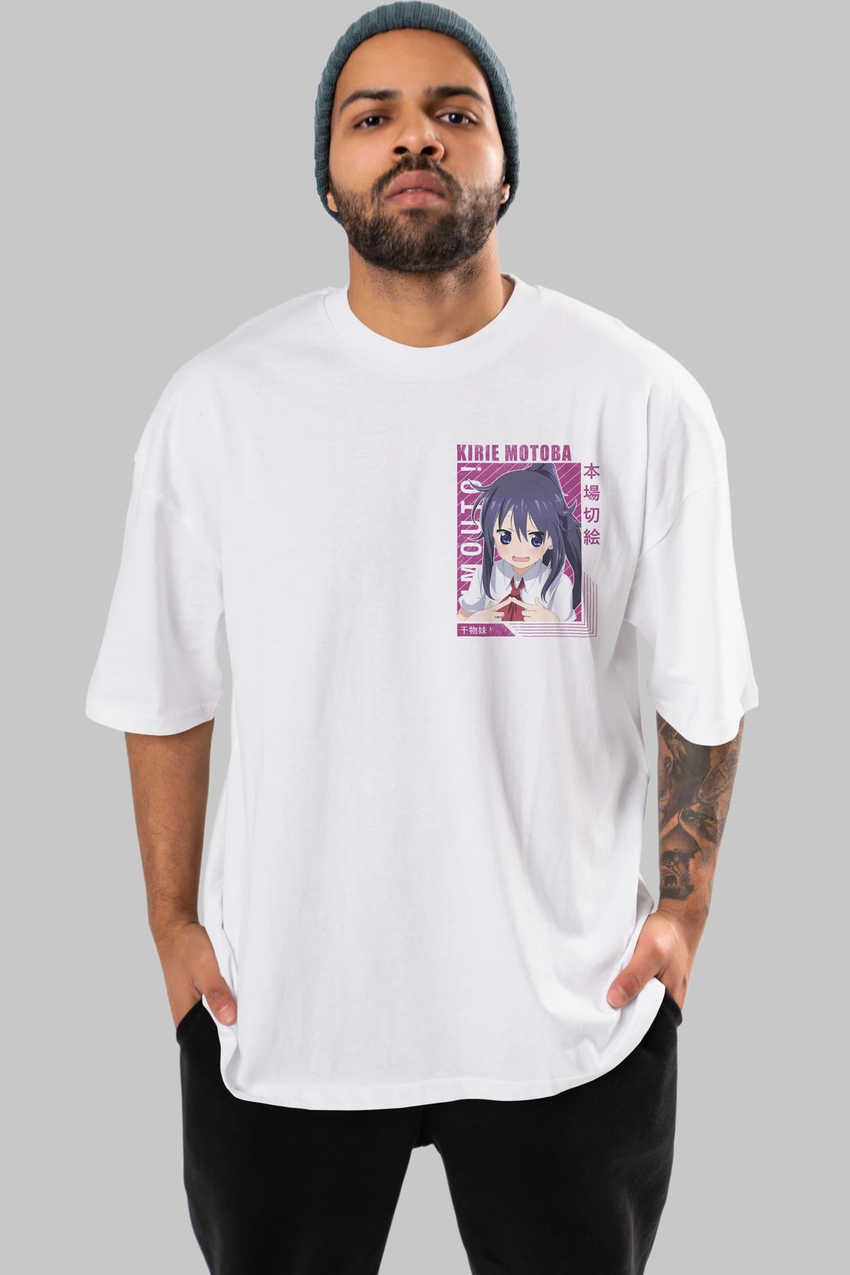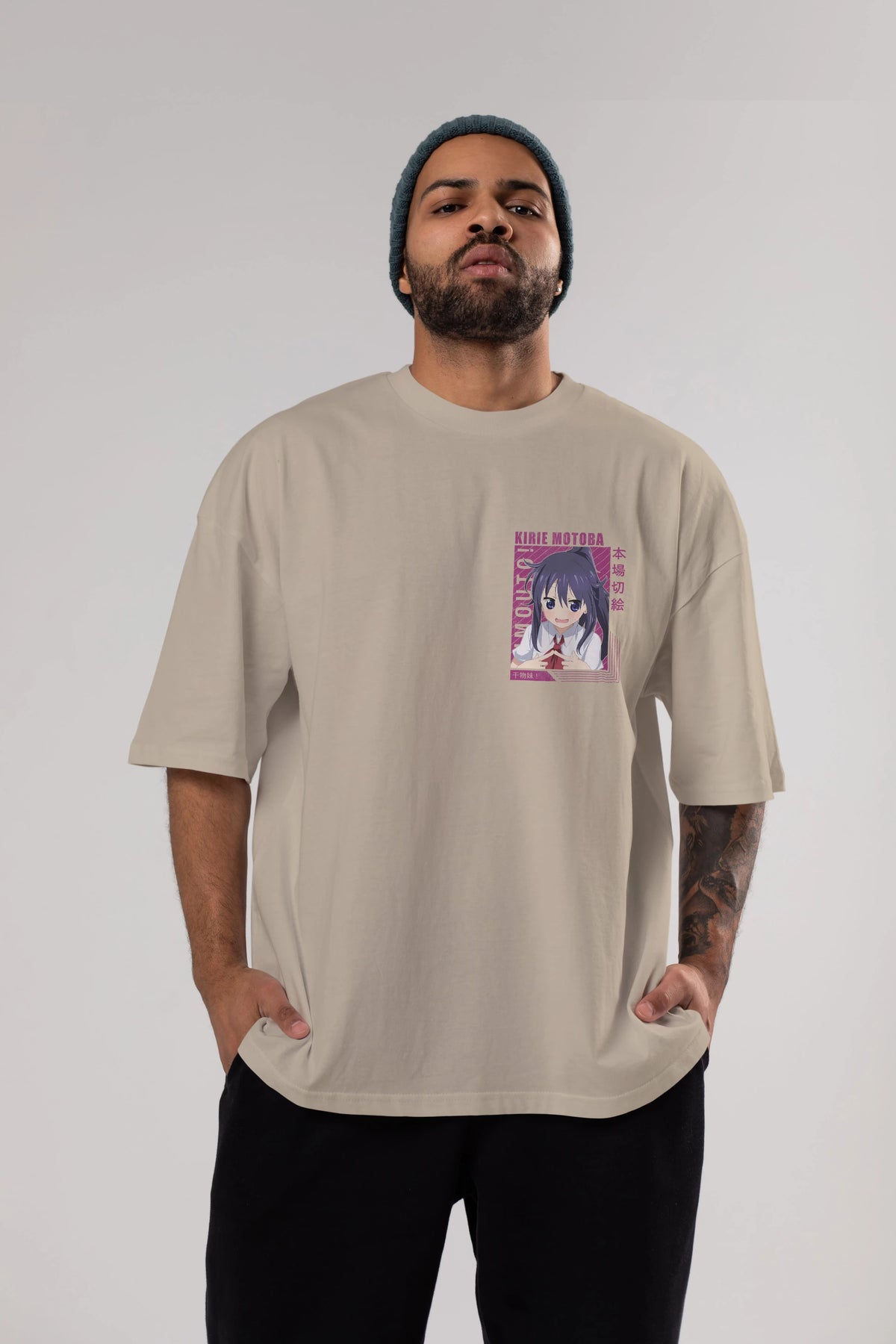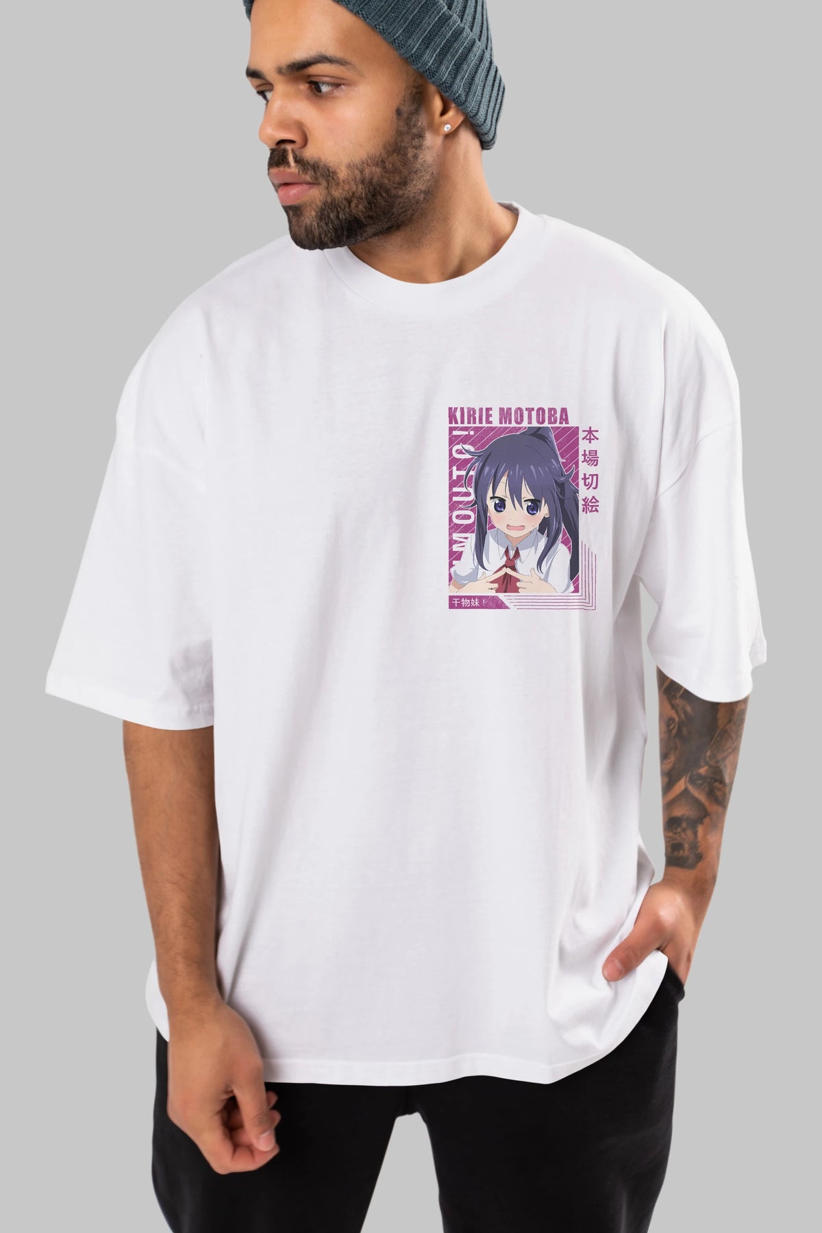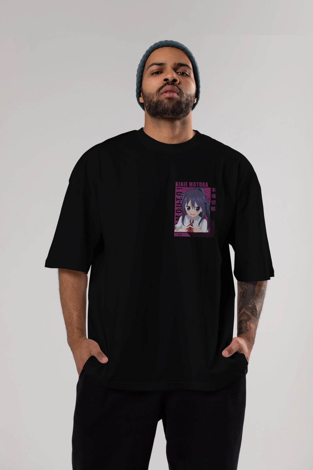 Kirie Motoba 4 Ön Sol Baskılı Oversize t-shirt Erkek Kadın Unisex %100 Pamuk Bisiklet Yaka tişort