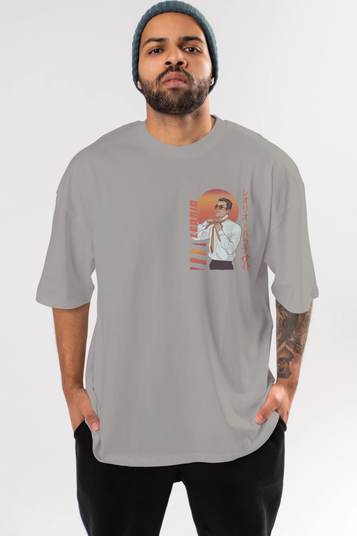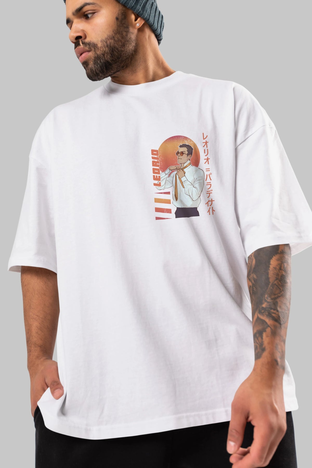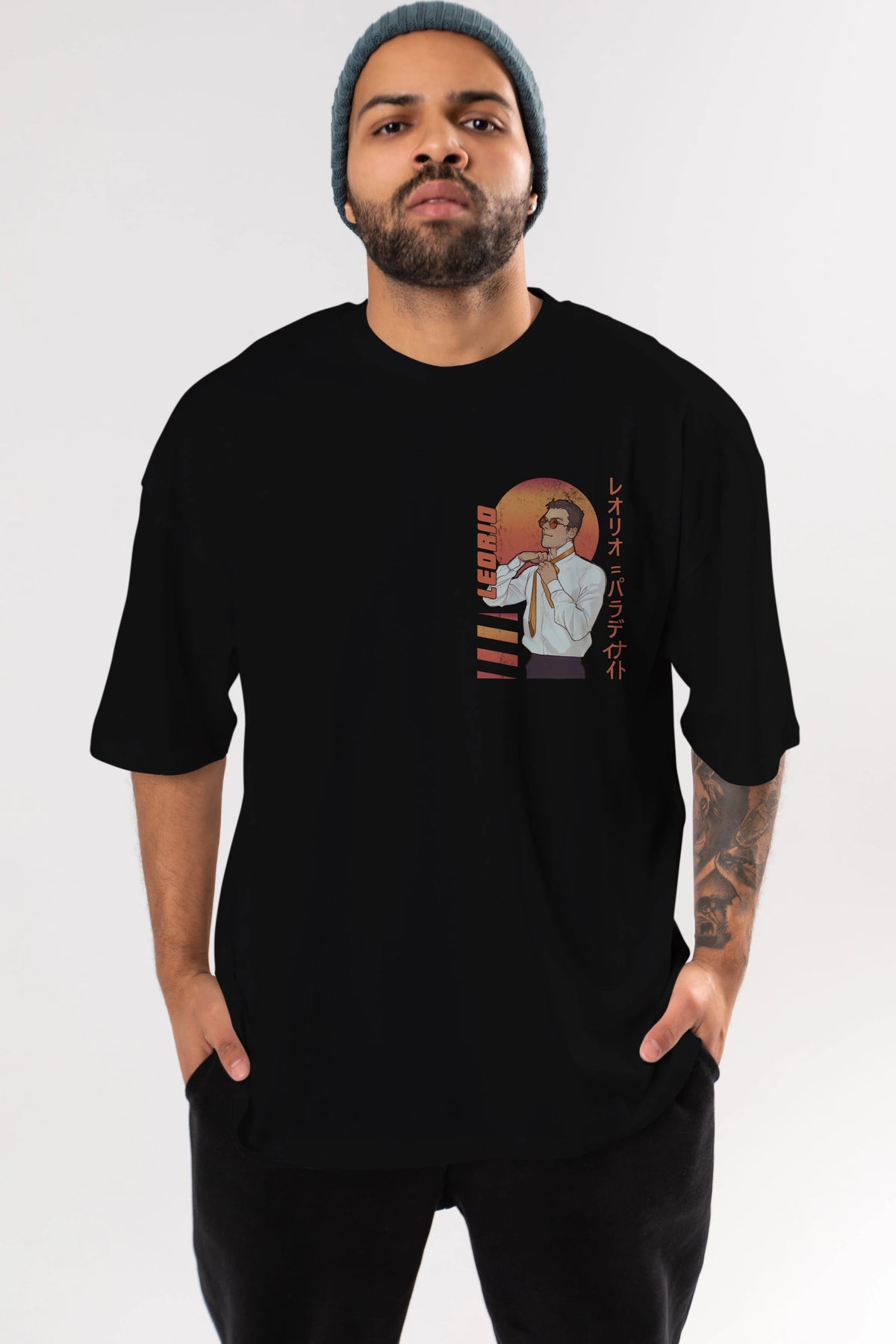 Leorio Paladiknight 5 (2) Ön Sol Baskılı Oversize t-shirt Erkek Kadın Unisex %100 Pamuk Bisiklet Yaka tişort