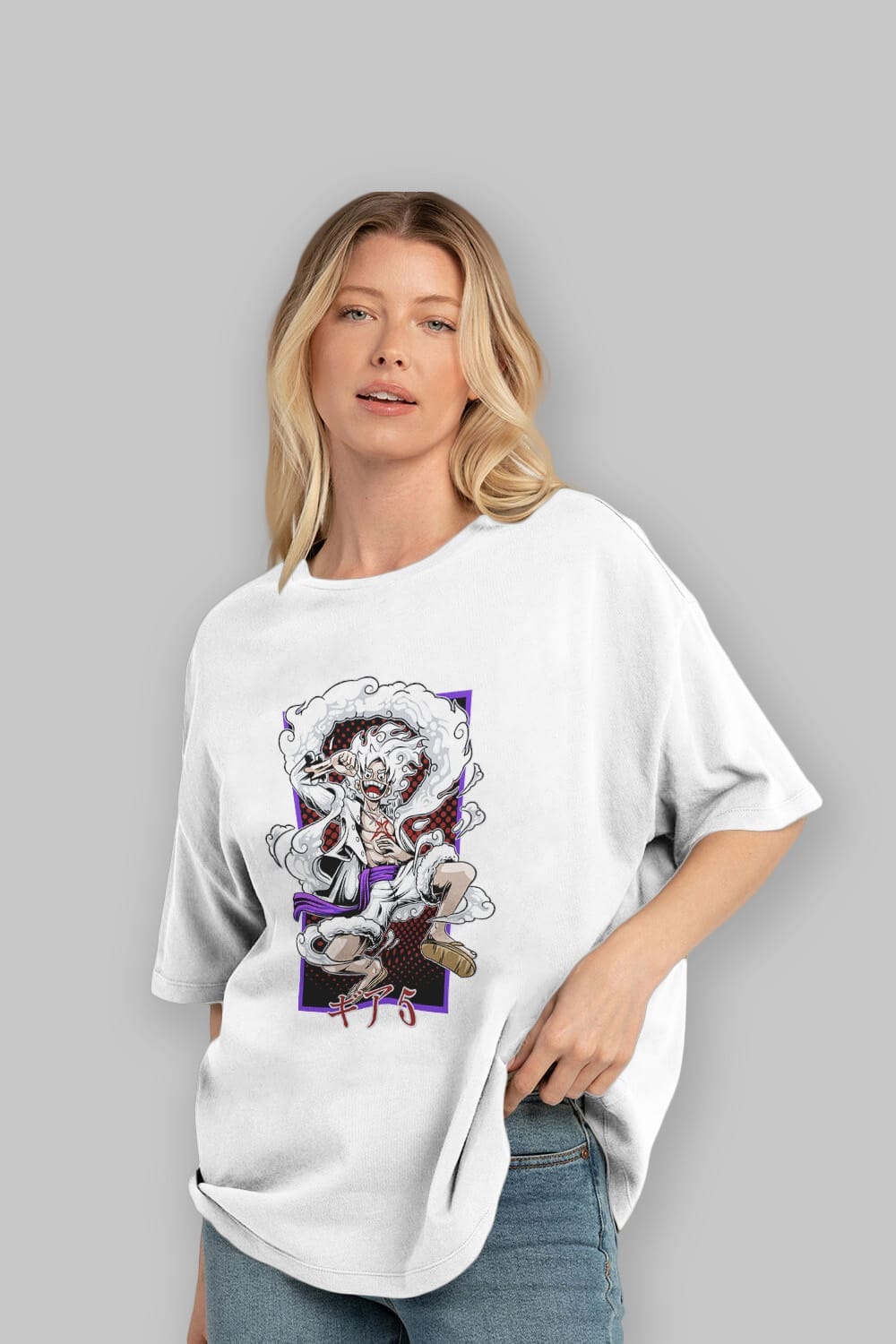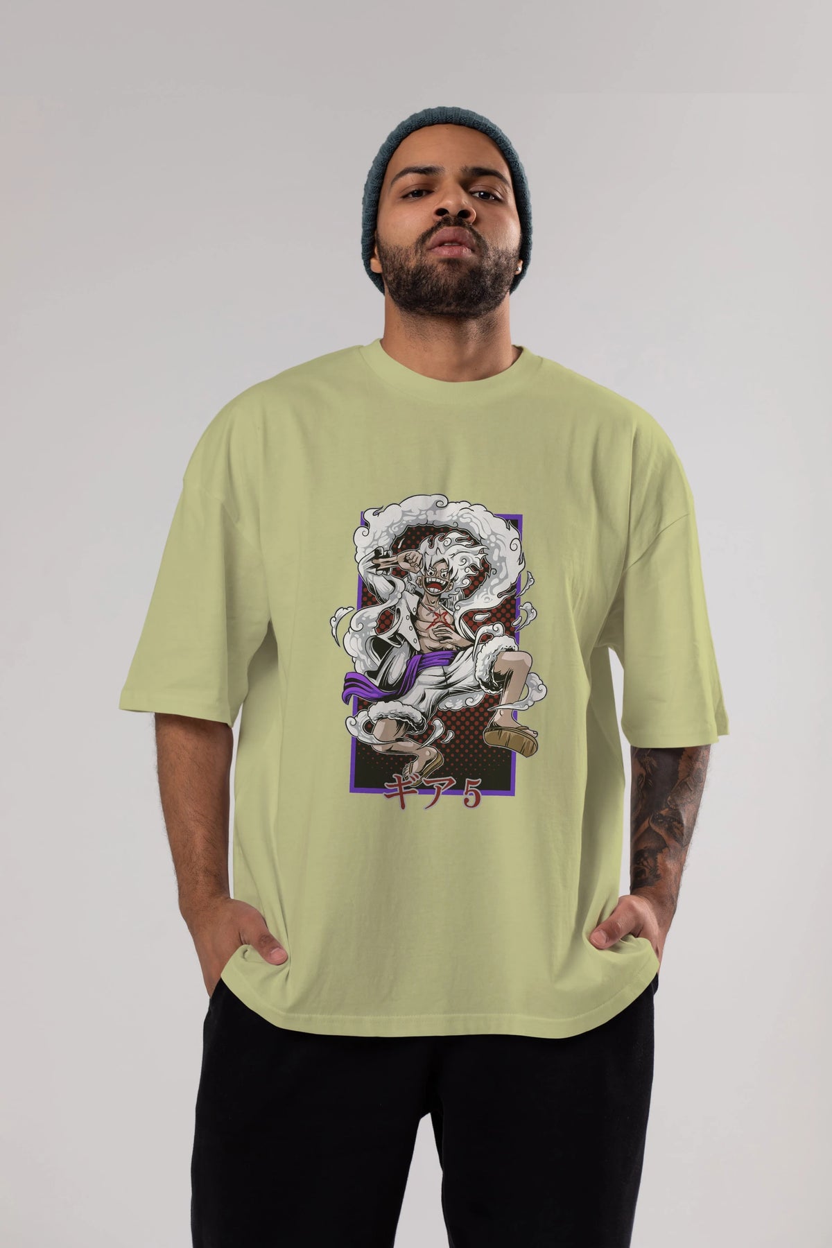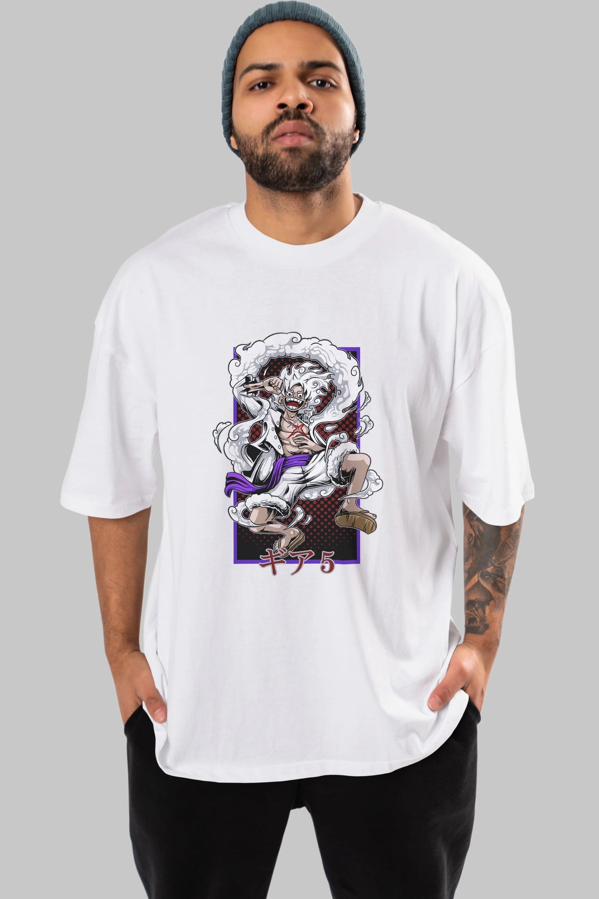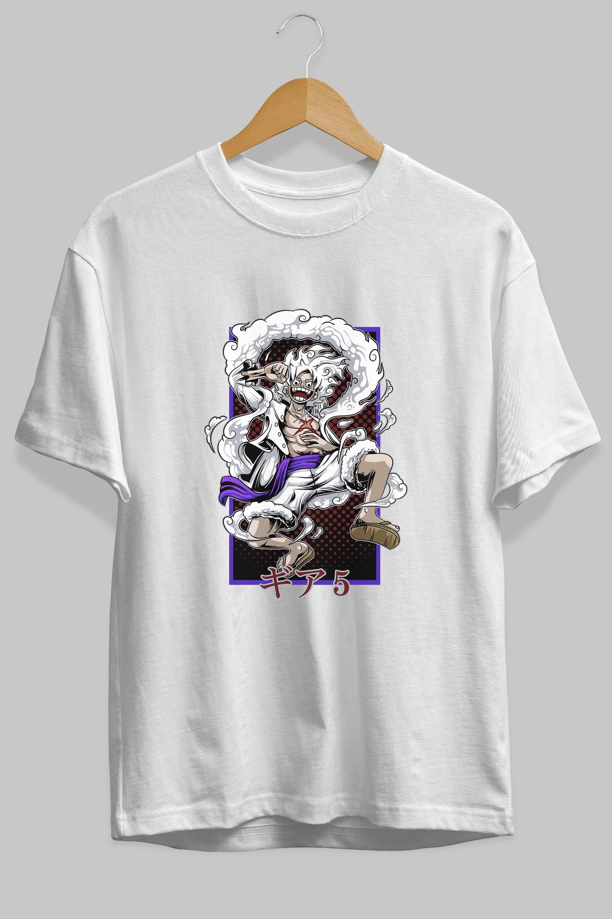 LUFFY GEAR 5 RECUADRO Anime Ön Baskılı Oversize t-shirt %100 pamuk Erkek Kadın Unisex