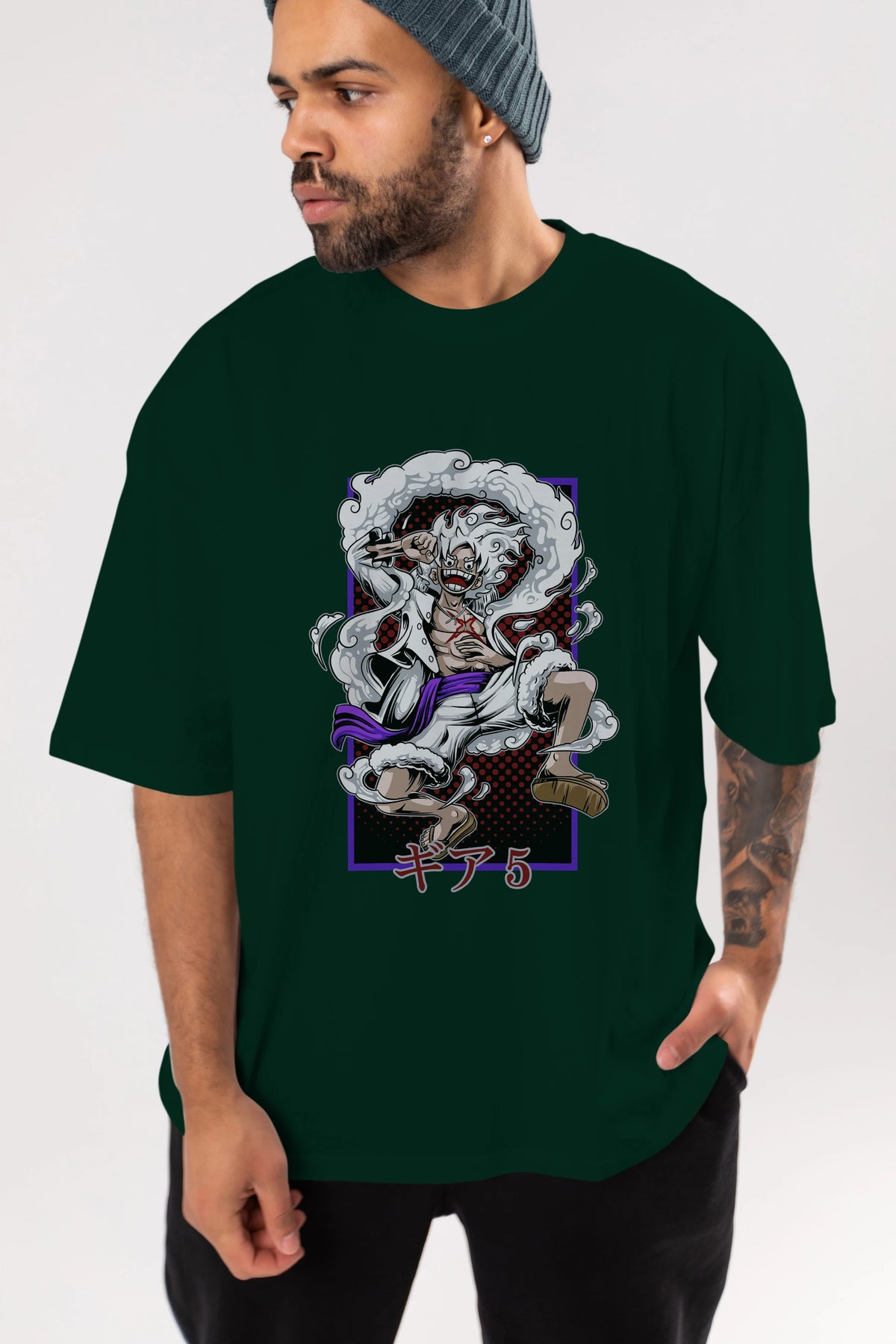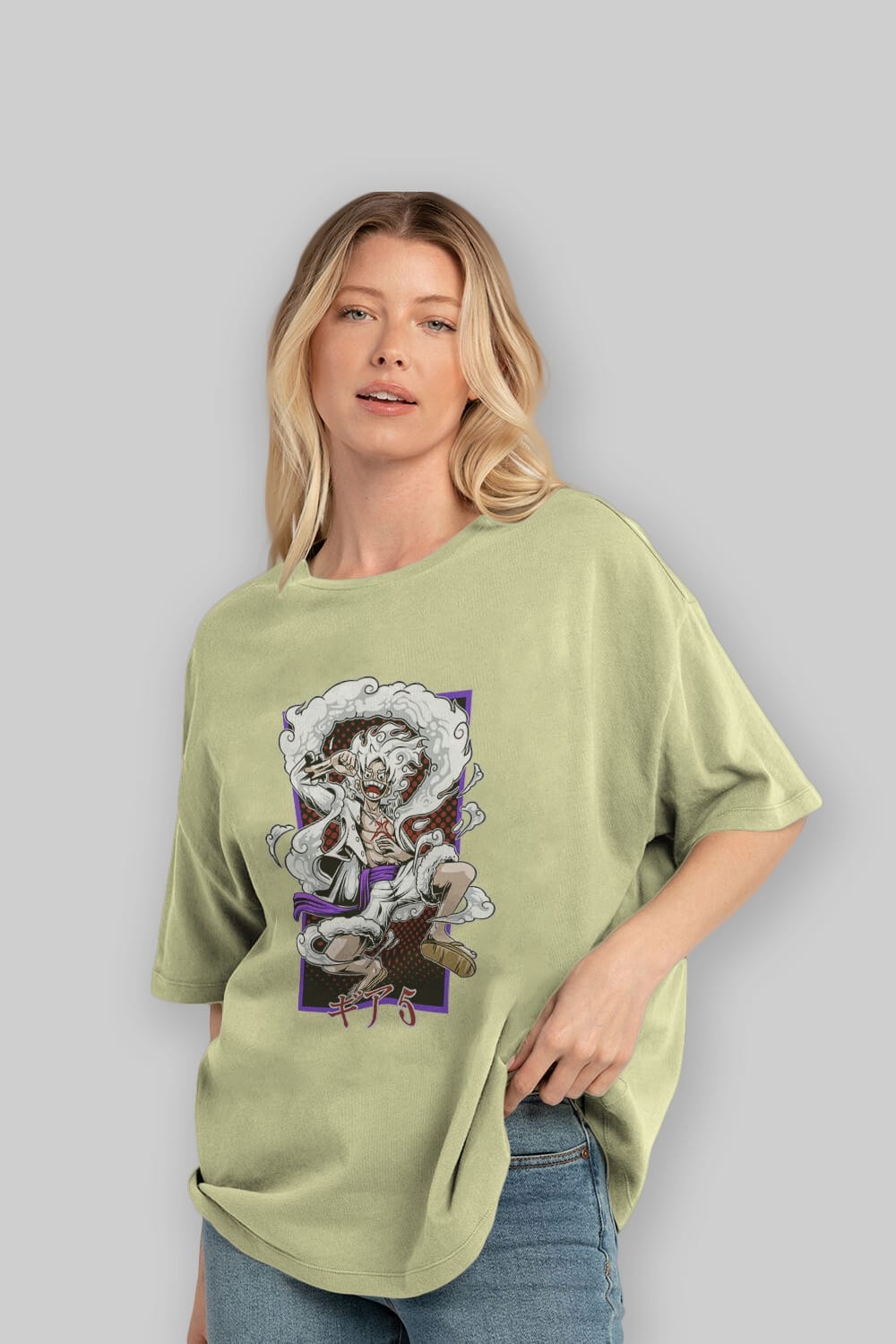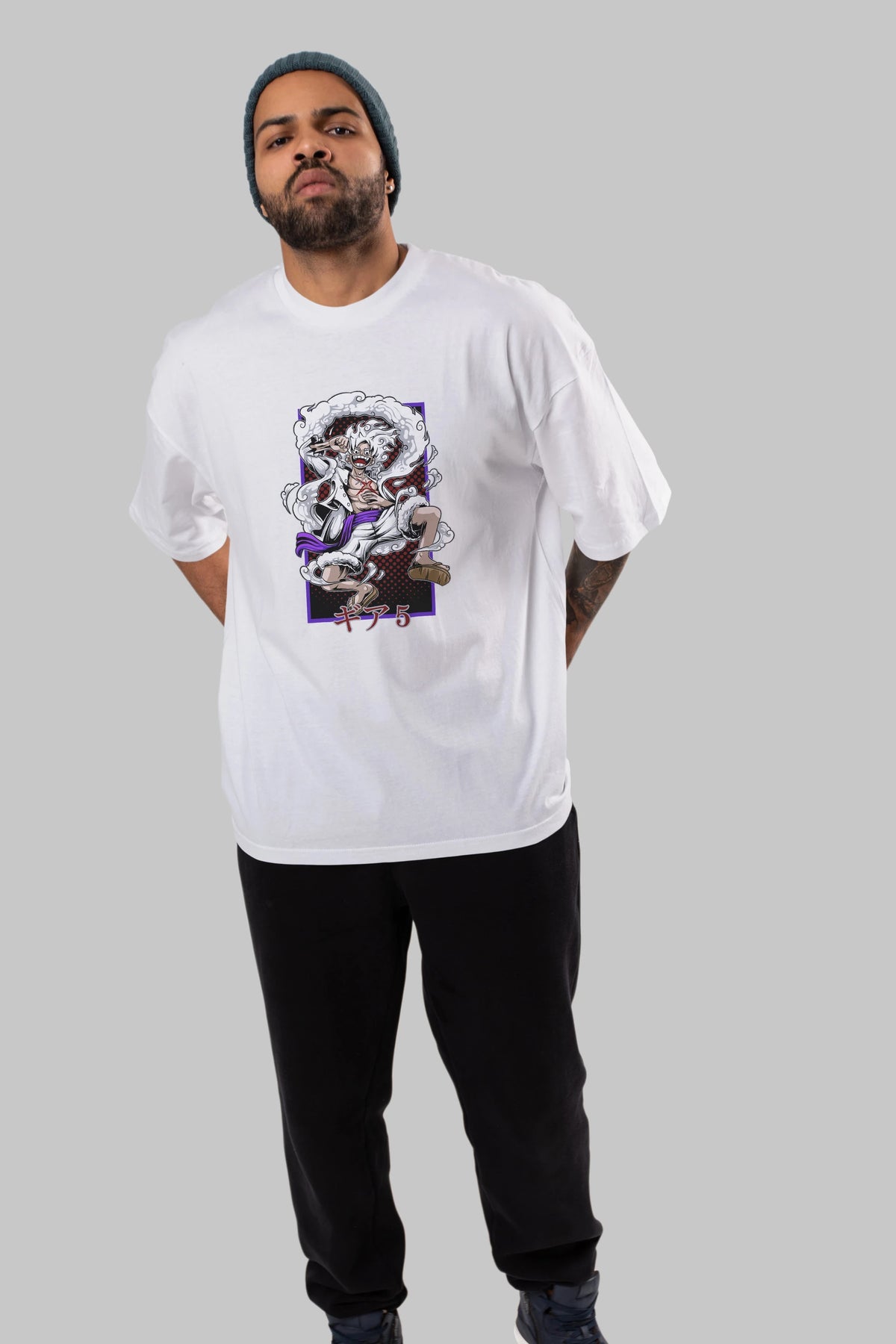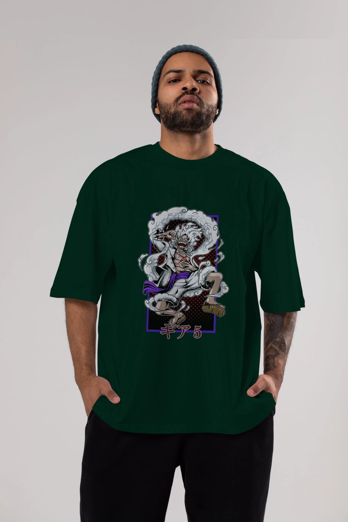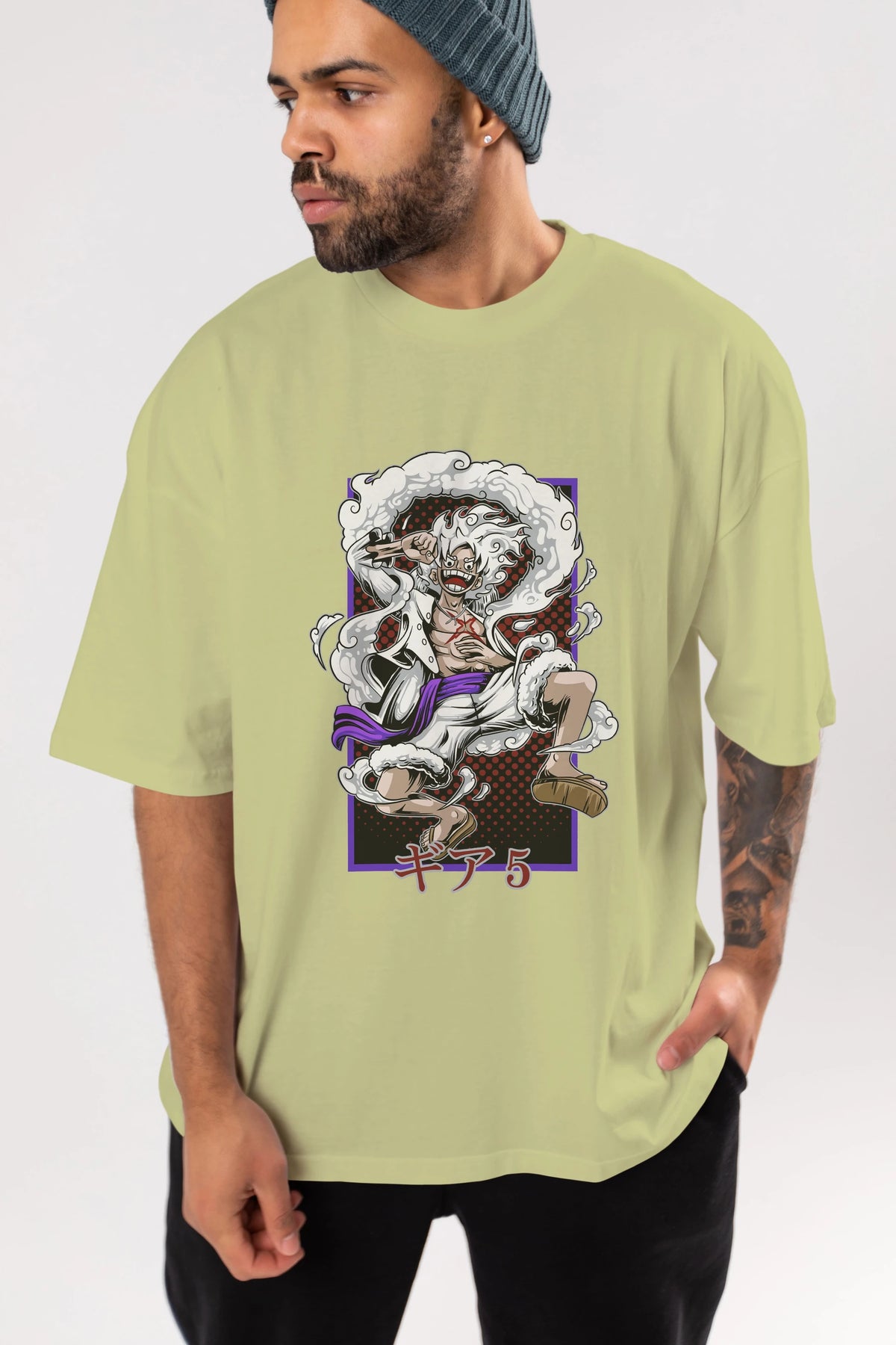 LUFFY GEAR 5 RECUADRO Anime Ön Baskılı Oversize t-shirt %100 pamuk Erkek Kadın Unisex