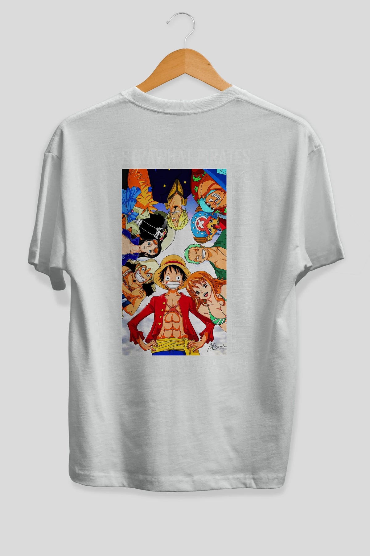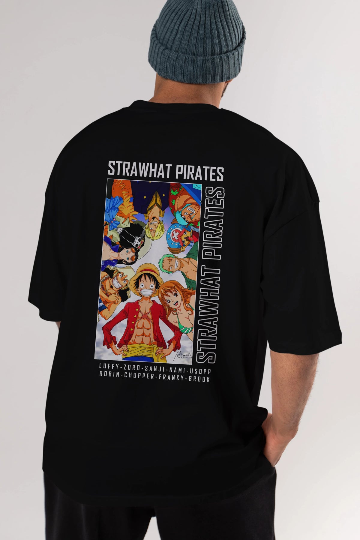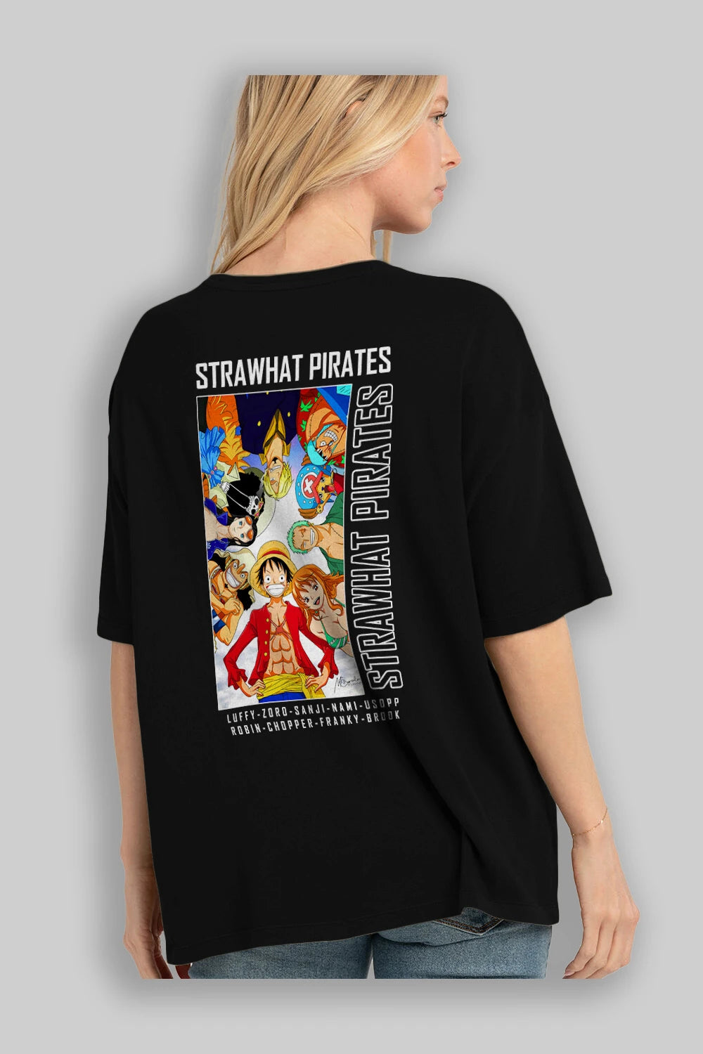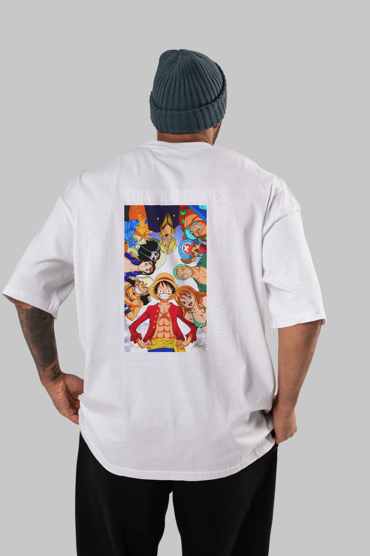 Luffy Strahwat Anime Arka Baskılı Oversize t-shirt Erkek Kadın Unisex %100 pamuk tişort