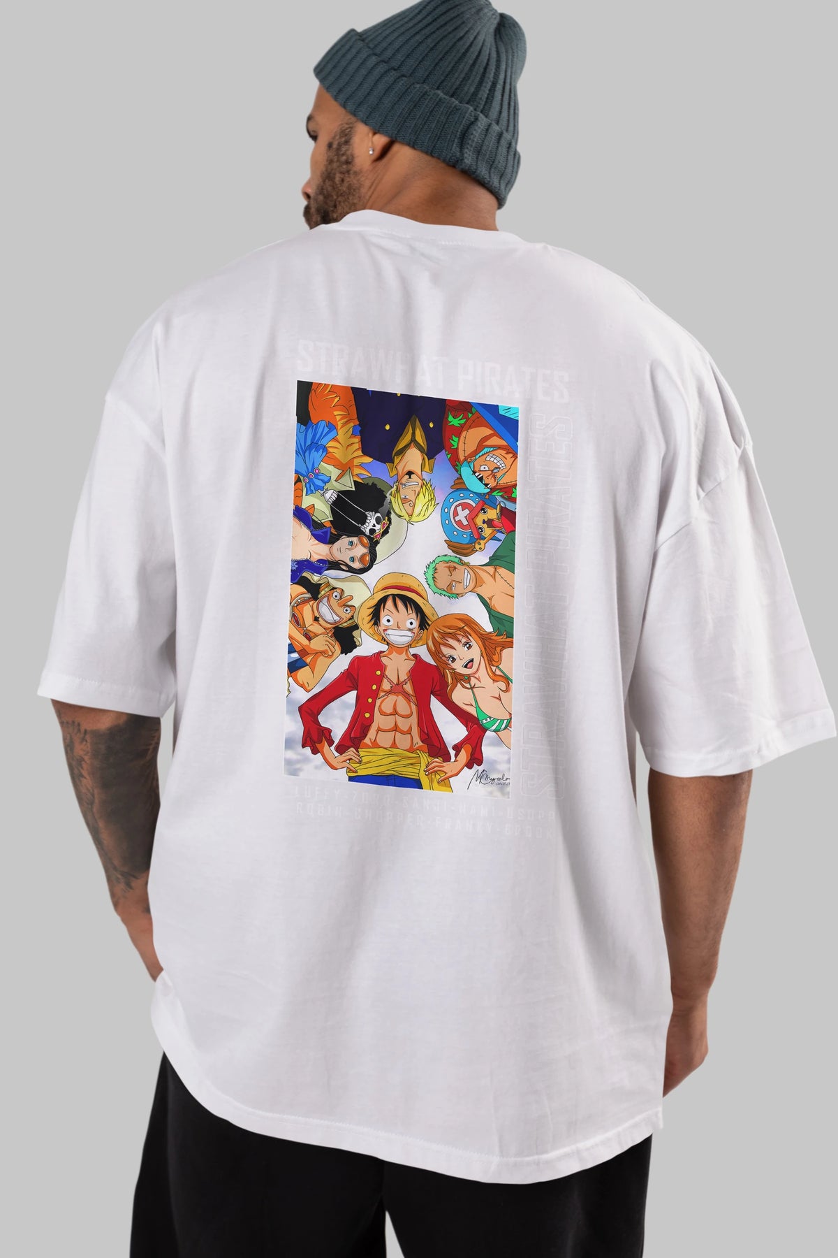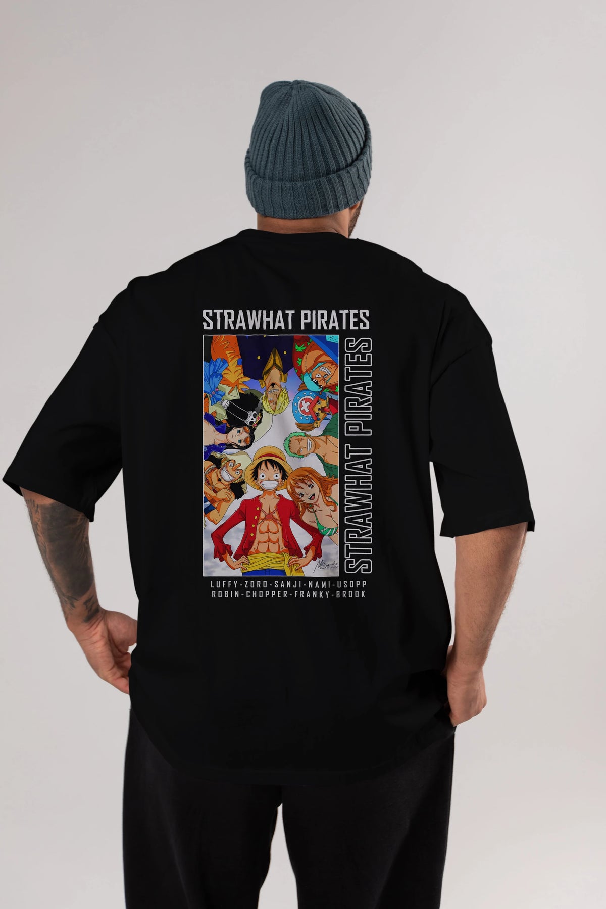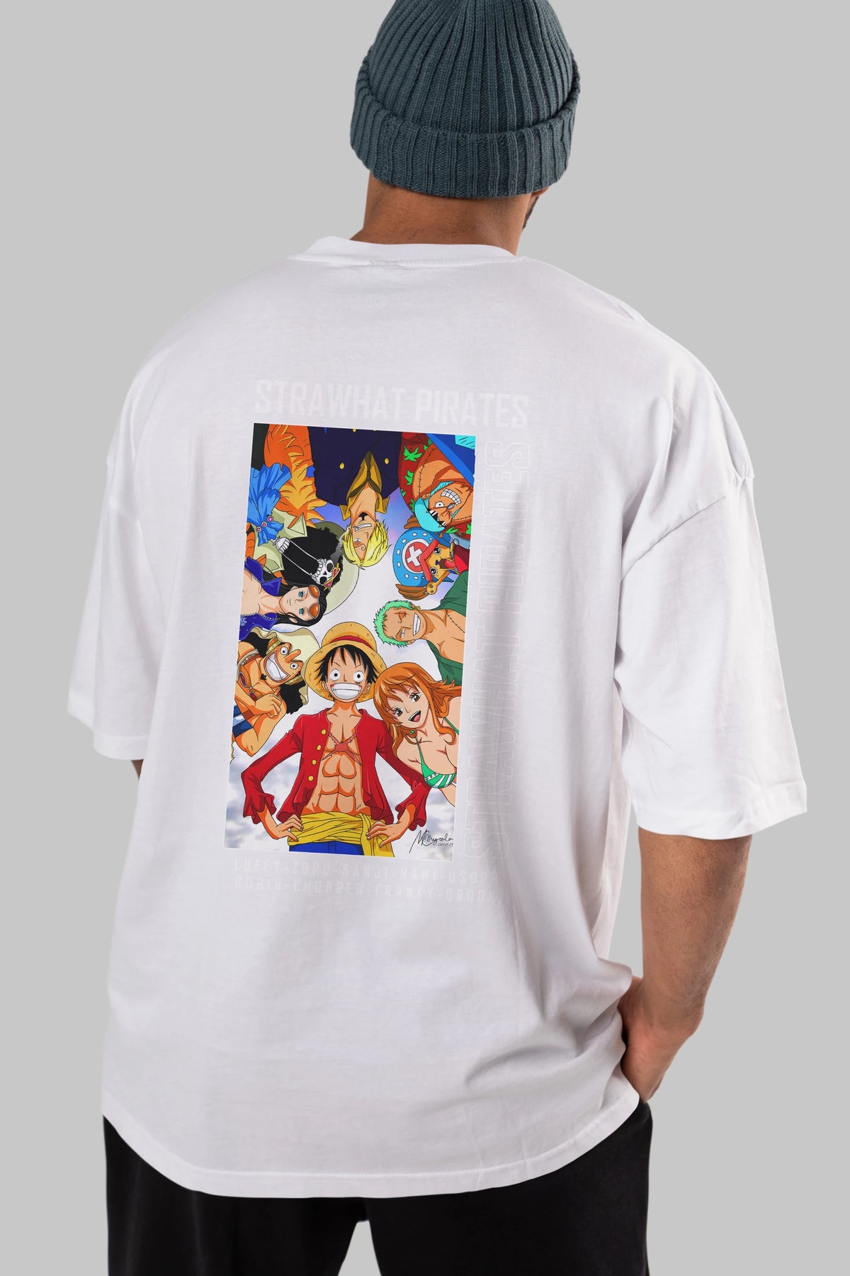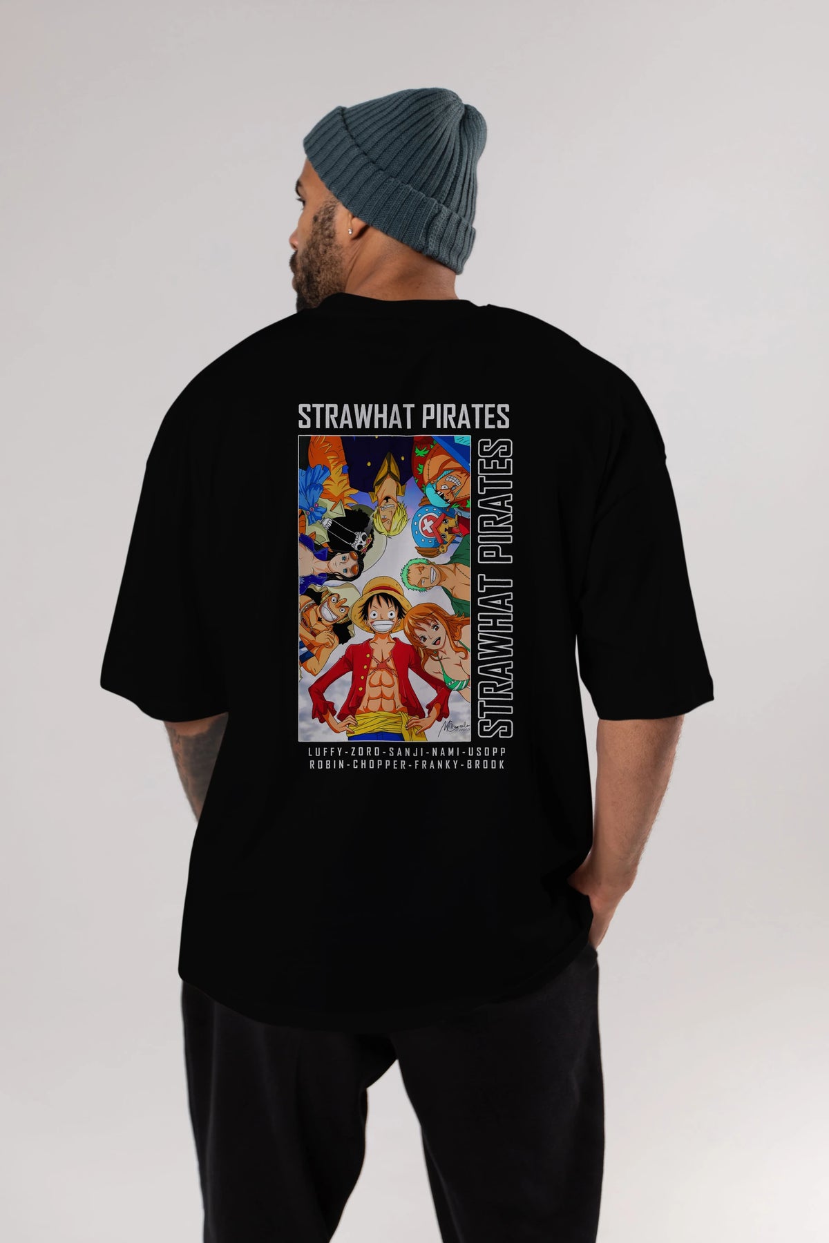 Luffy Strahwat Anime Arka Baskılı Oversize t-shirt Erkek Kadın Unisex %100 pamuk tişort