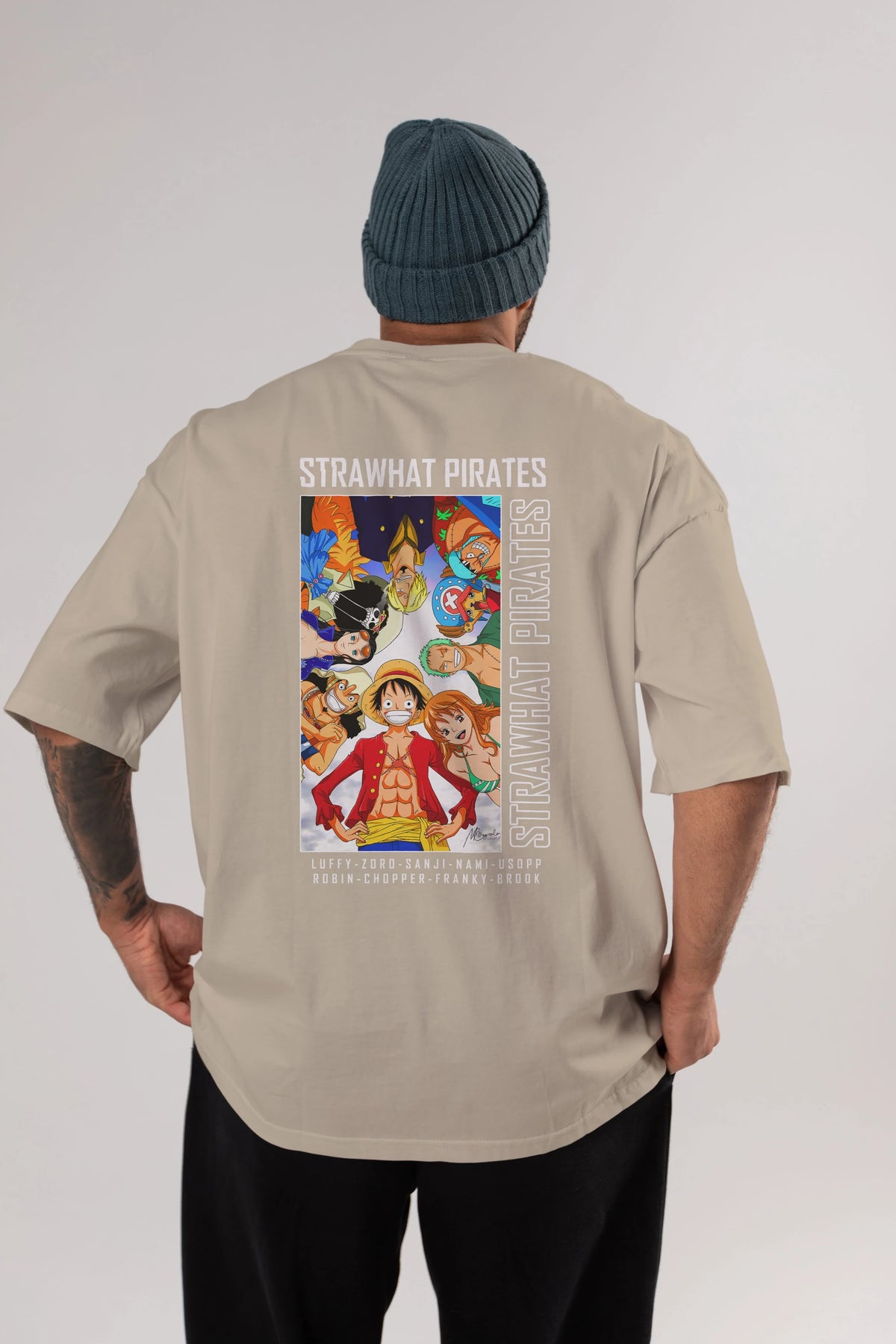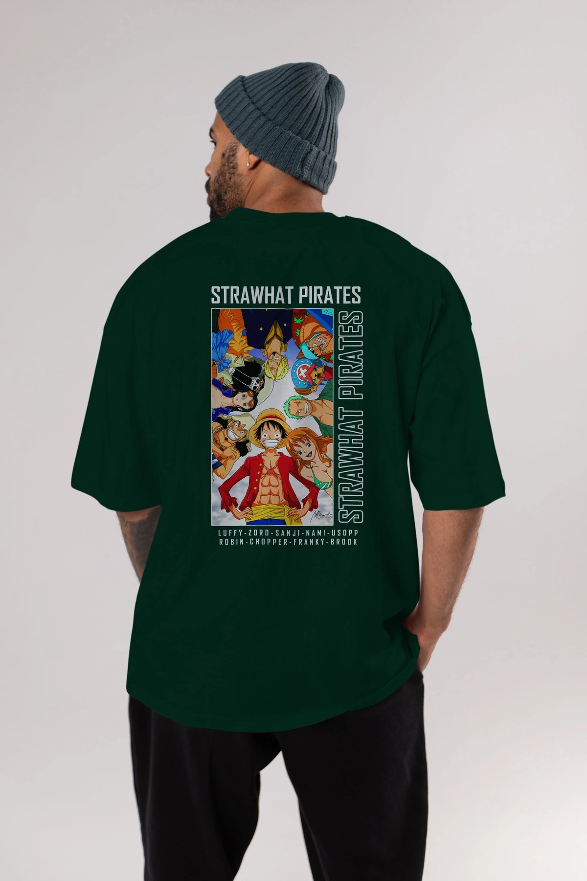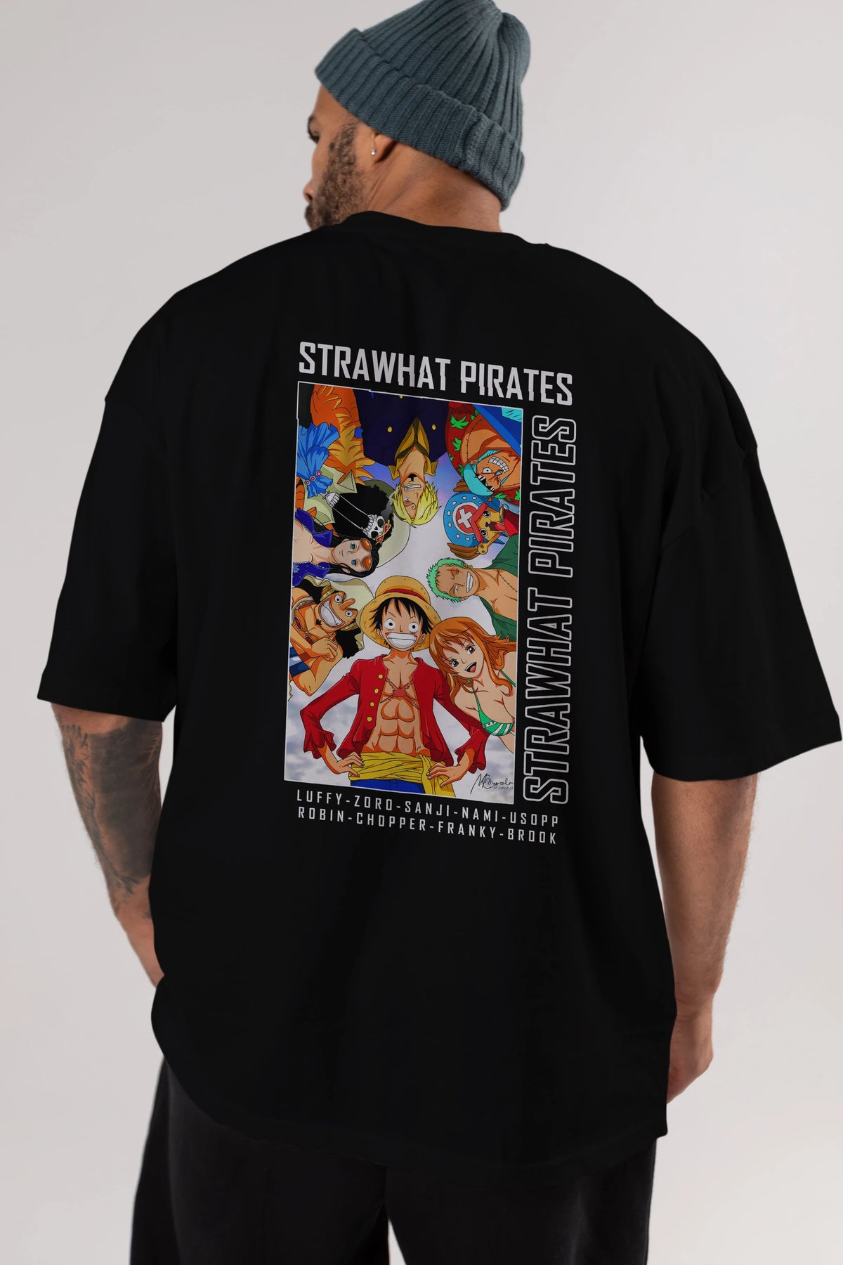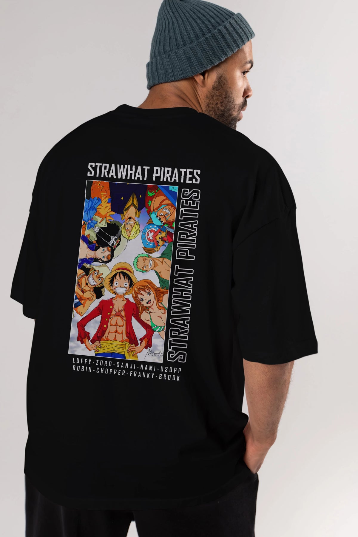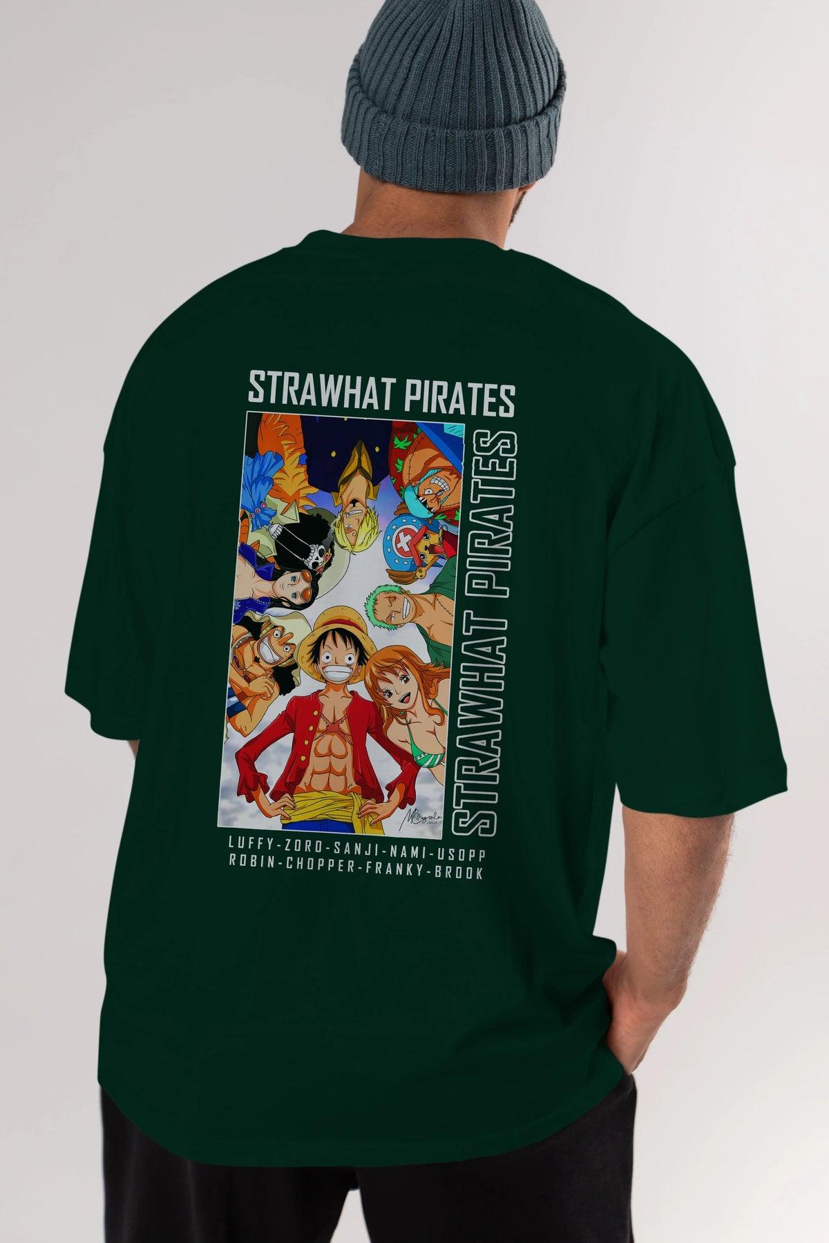 Luffy Strahwat Anime Arka Baskılı Oversize t-shirt Erkek Kadın Unisex %100 pamuk tişort