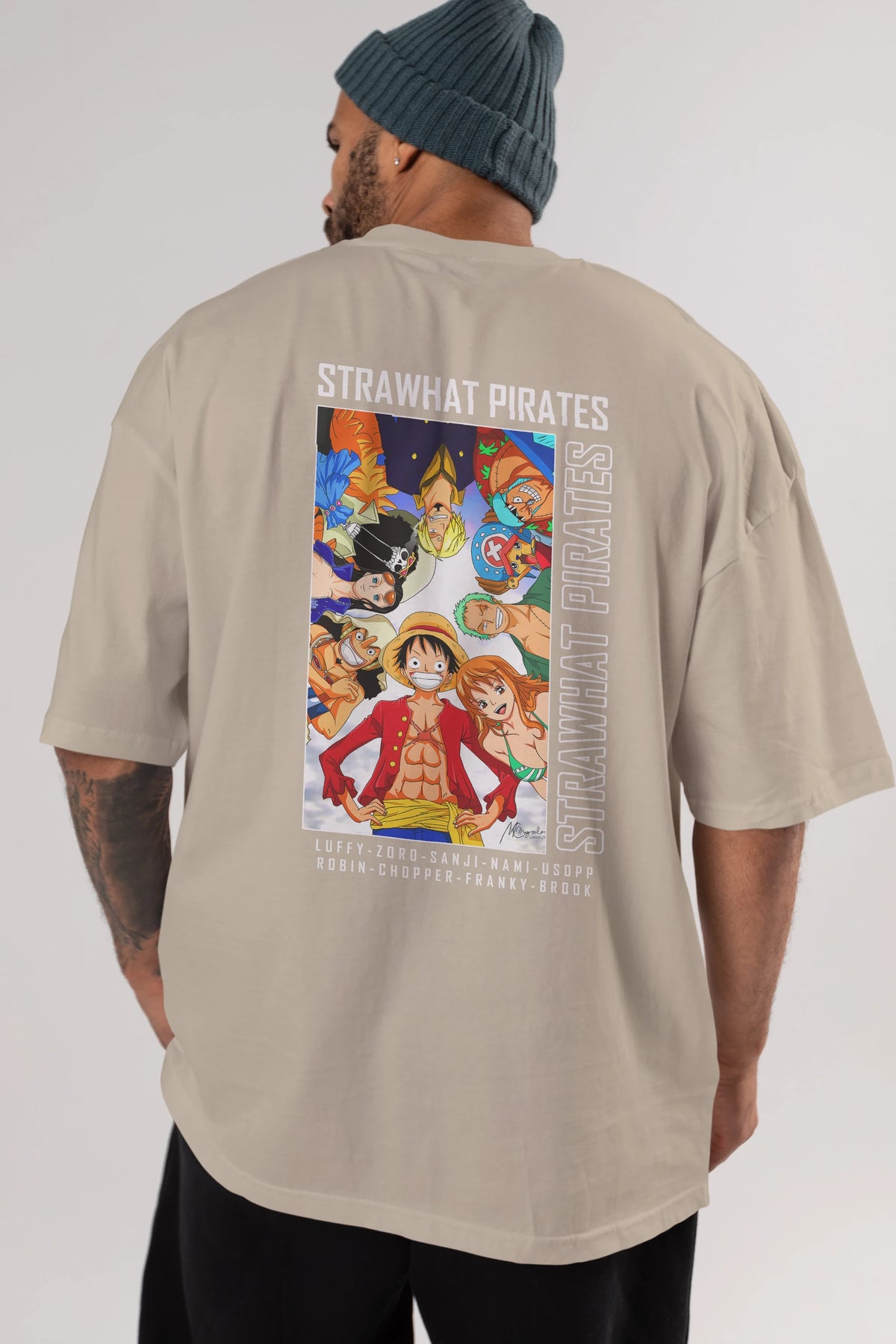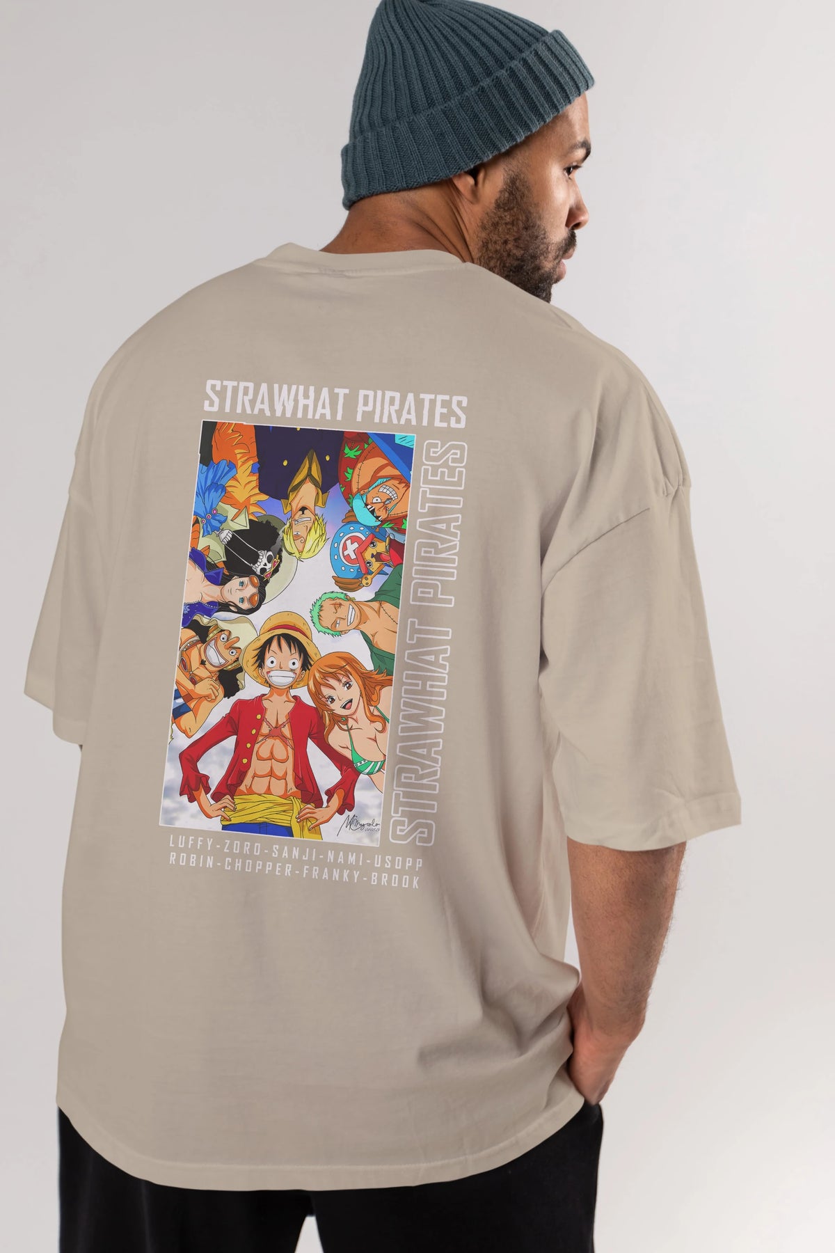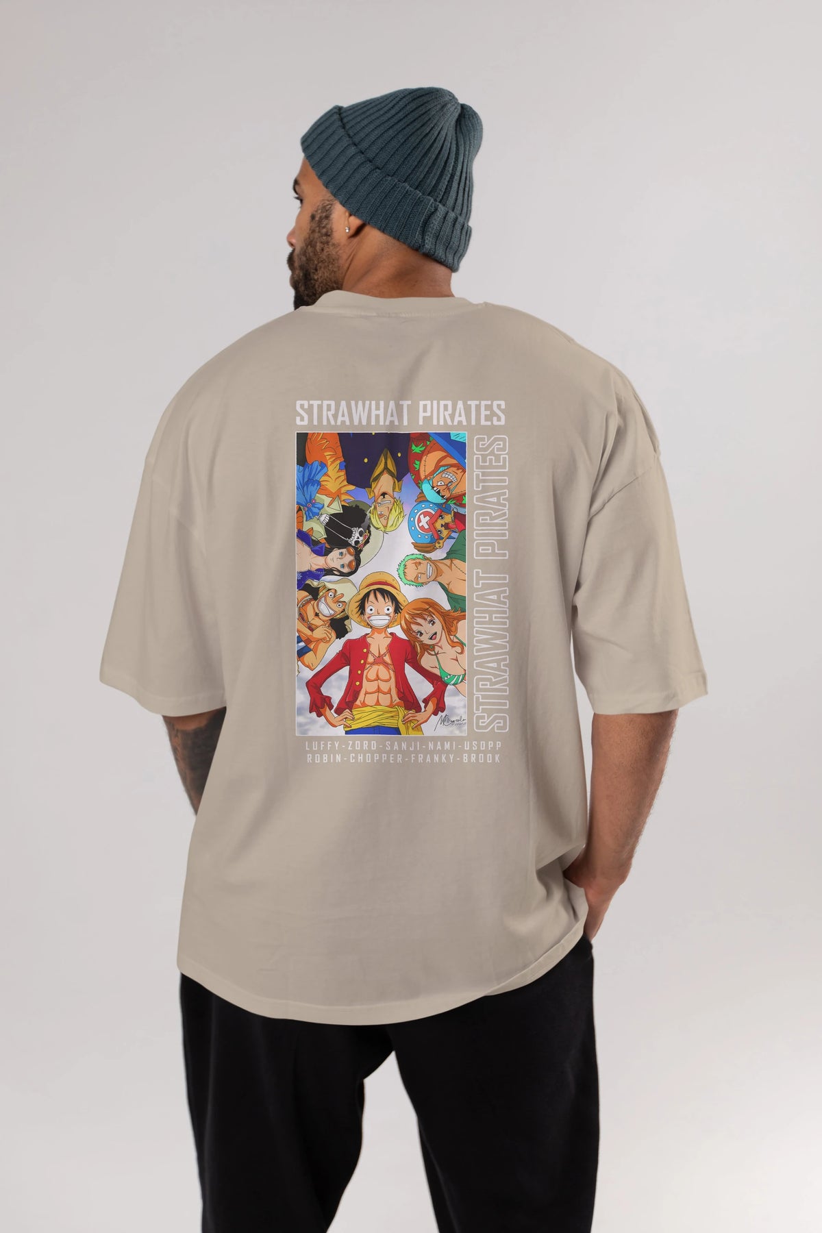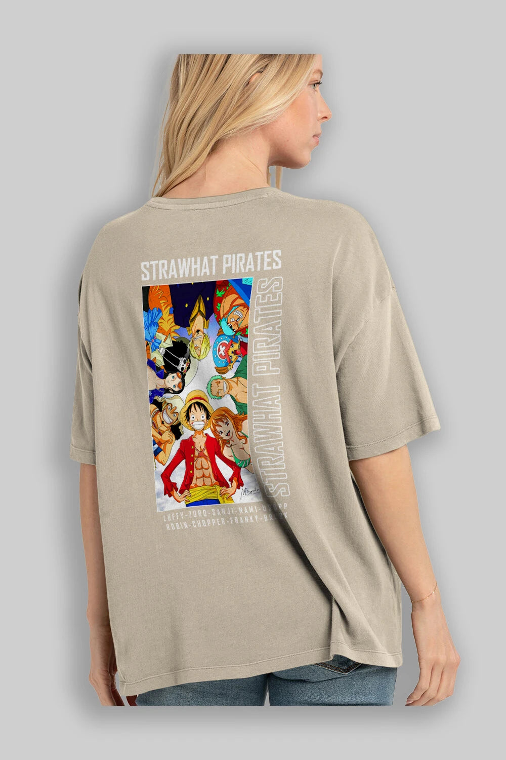 Luffy Strahwat Anime Arka Baskılı Oversize t-shirt Erkek Kadın Unisex %100 pamuk tişort
