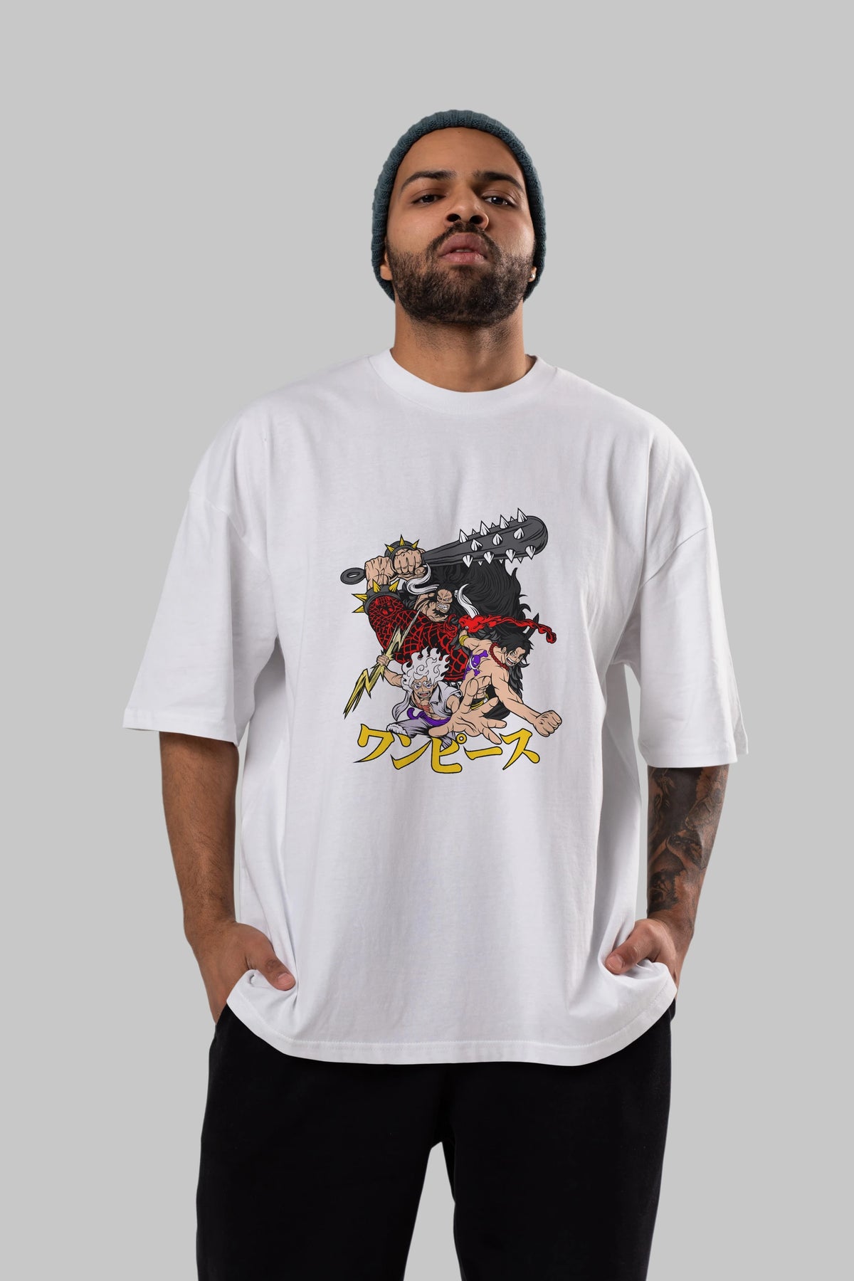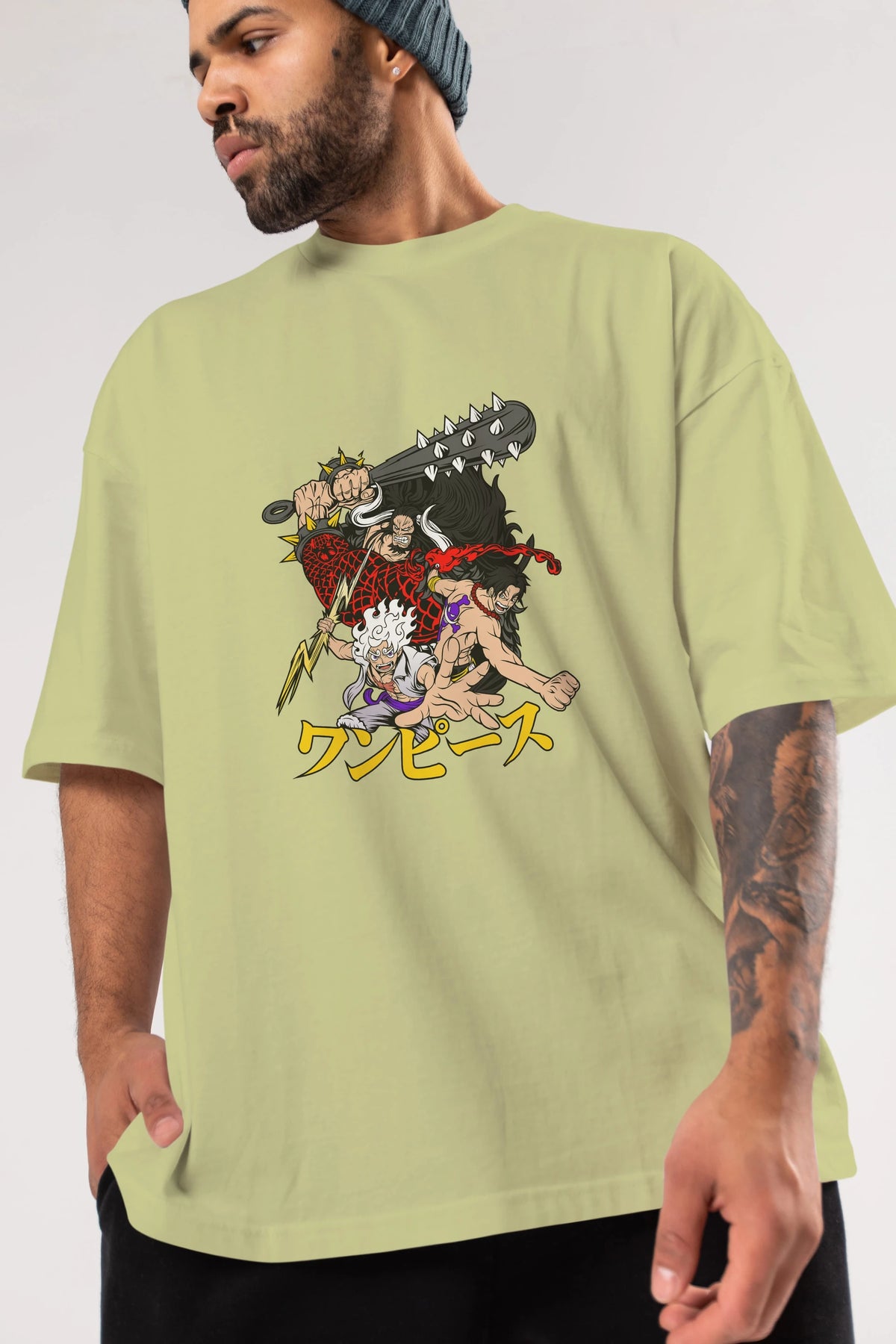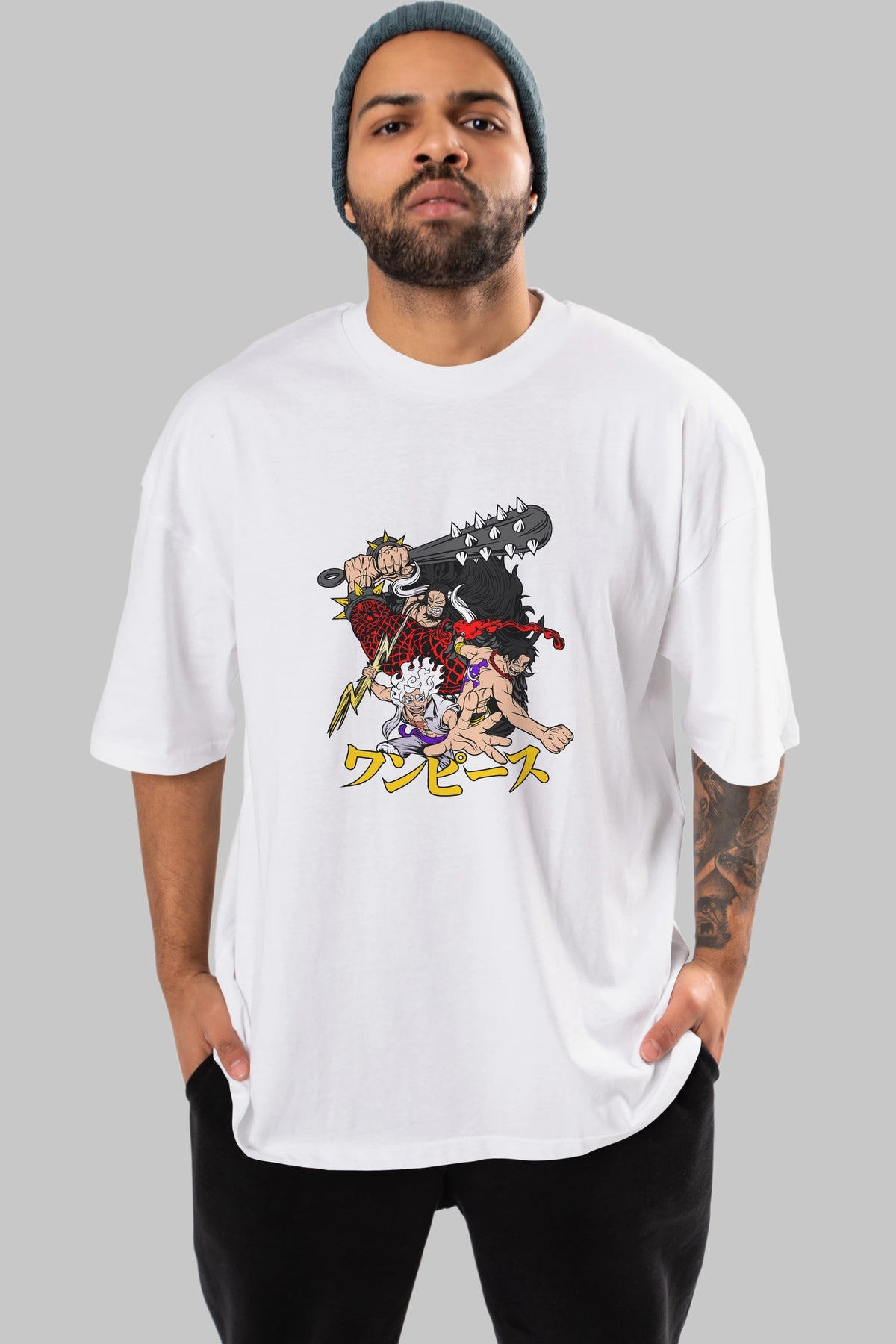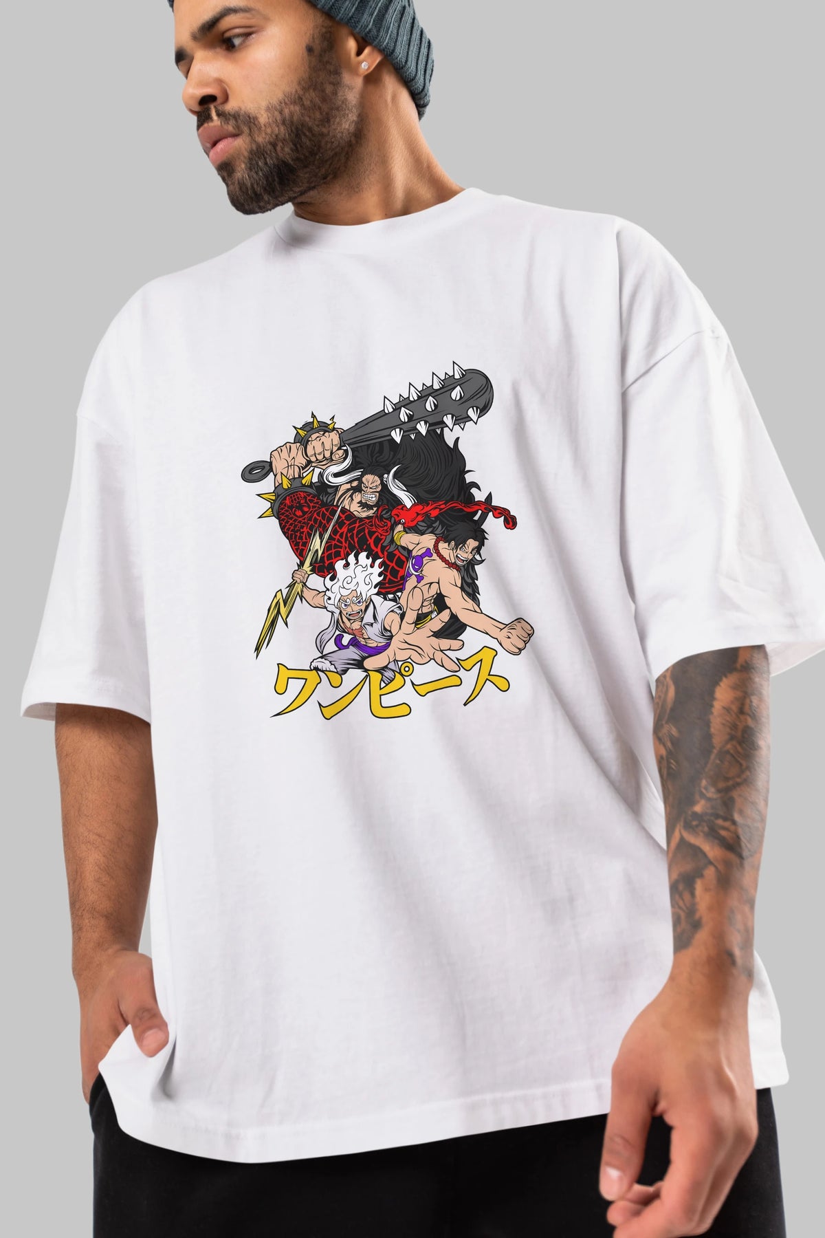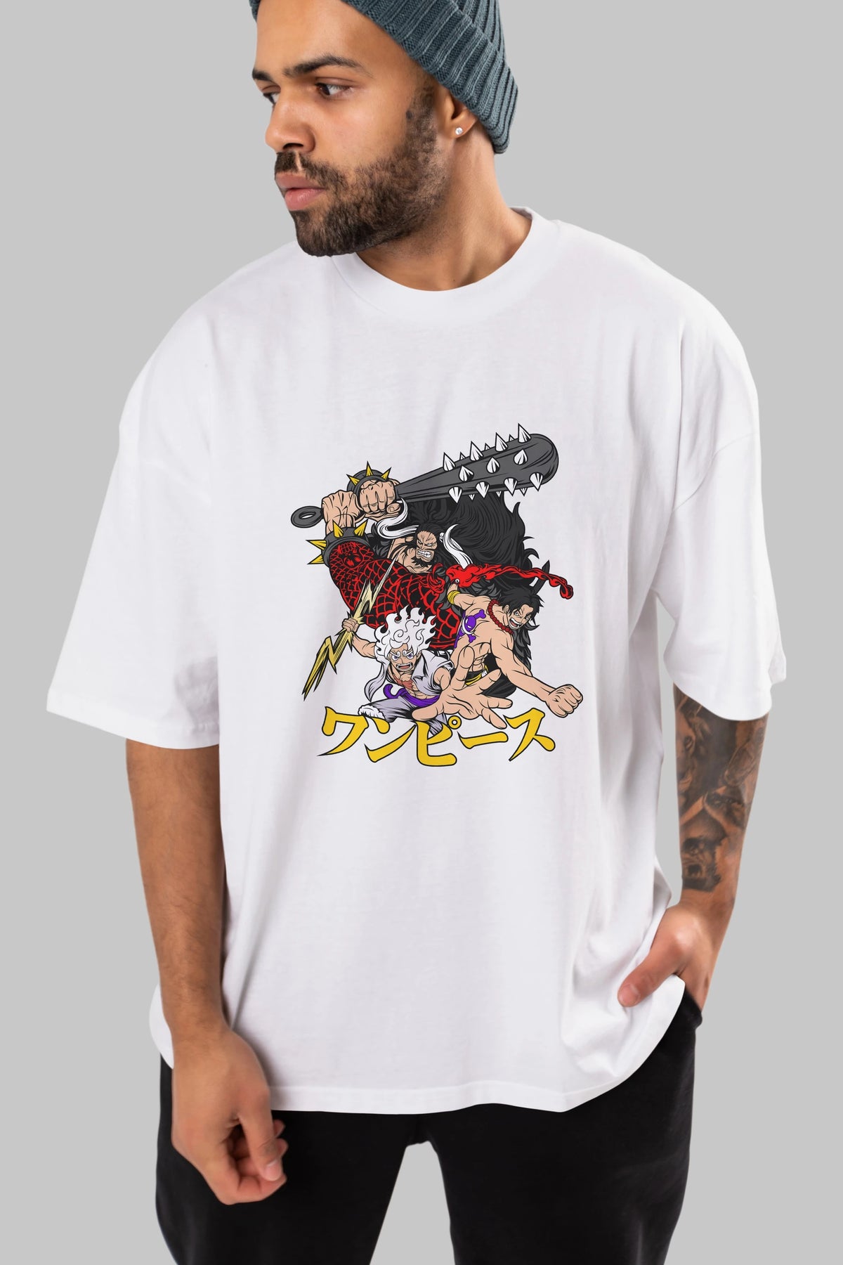 luffyacekaido Anime Ön Baskılı Oversize t-shirt %100 pamuk Erkek Kadın Unisex