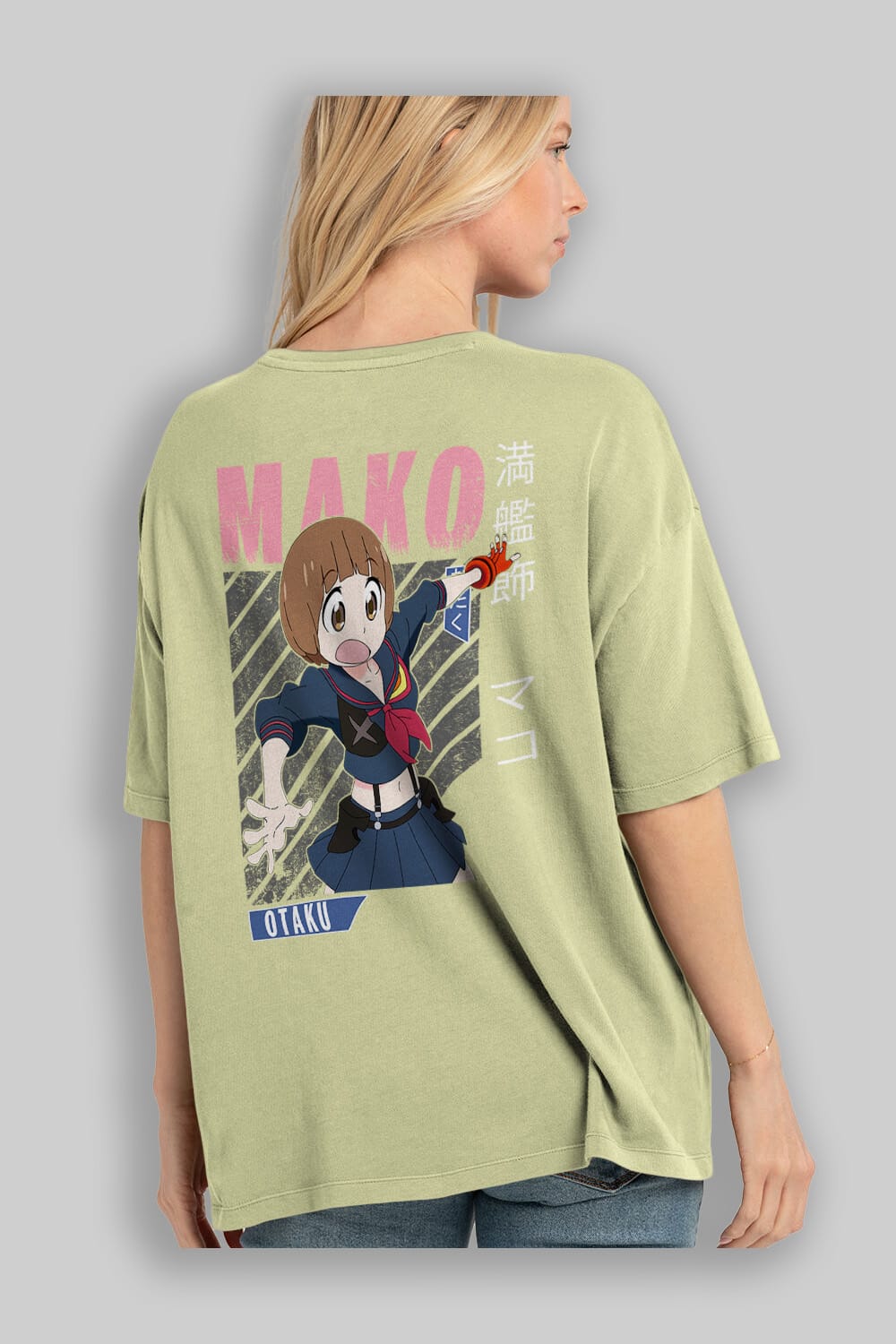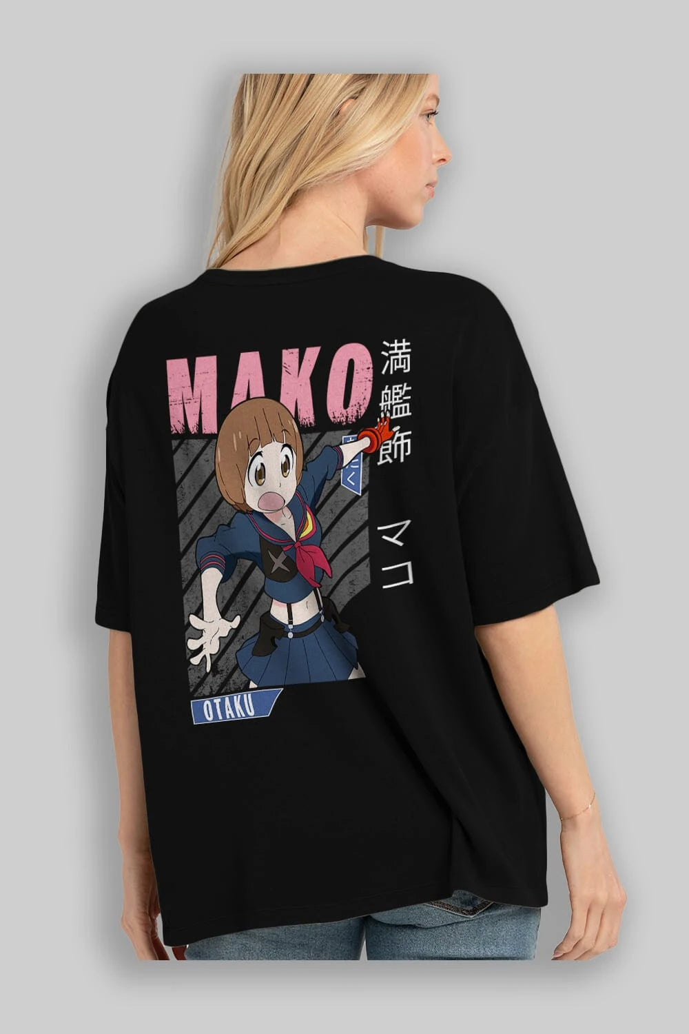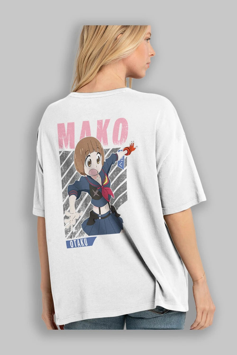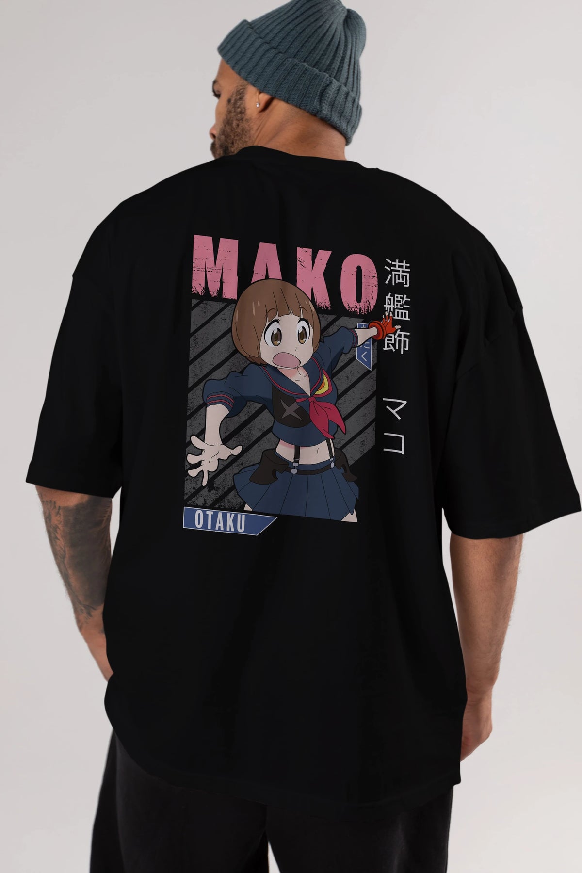 Mako Mankanshoku 2 Anime Arka Baskılı Oversize t-shirt Erkek Kadın Unisex