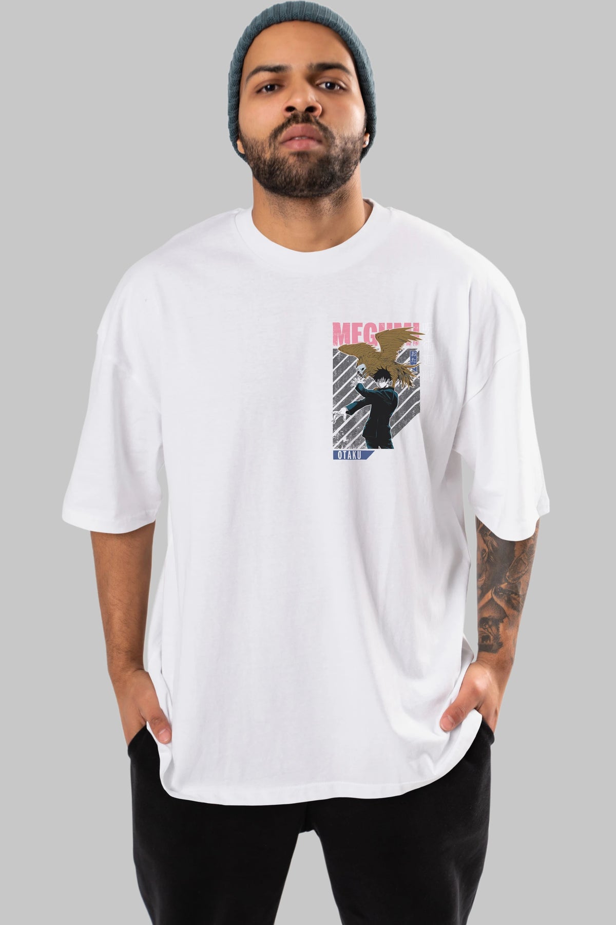 Megumi Fushiguro 2 Ön Sol Baskılı Oversize t-shirt Erkek Kadın Unisex %100 Pamuk Bisiklet Yaka tişort