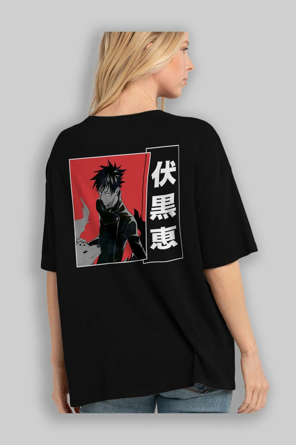 Megumi Fushiguro Anime Arka Baskılı Oversize t-shirt Erkek Kadın Unisex